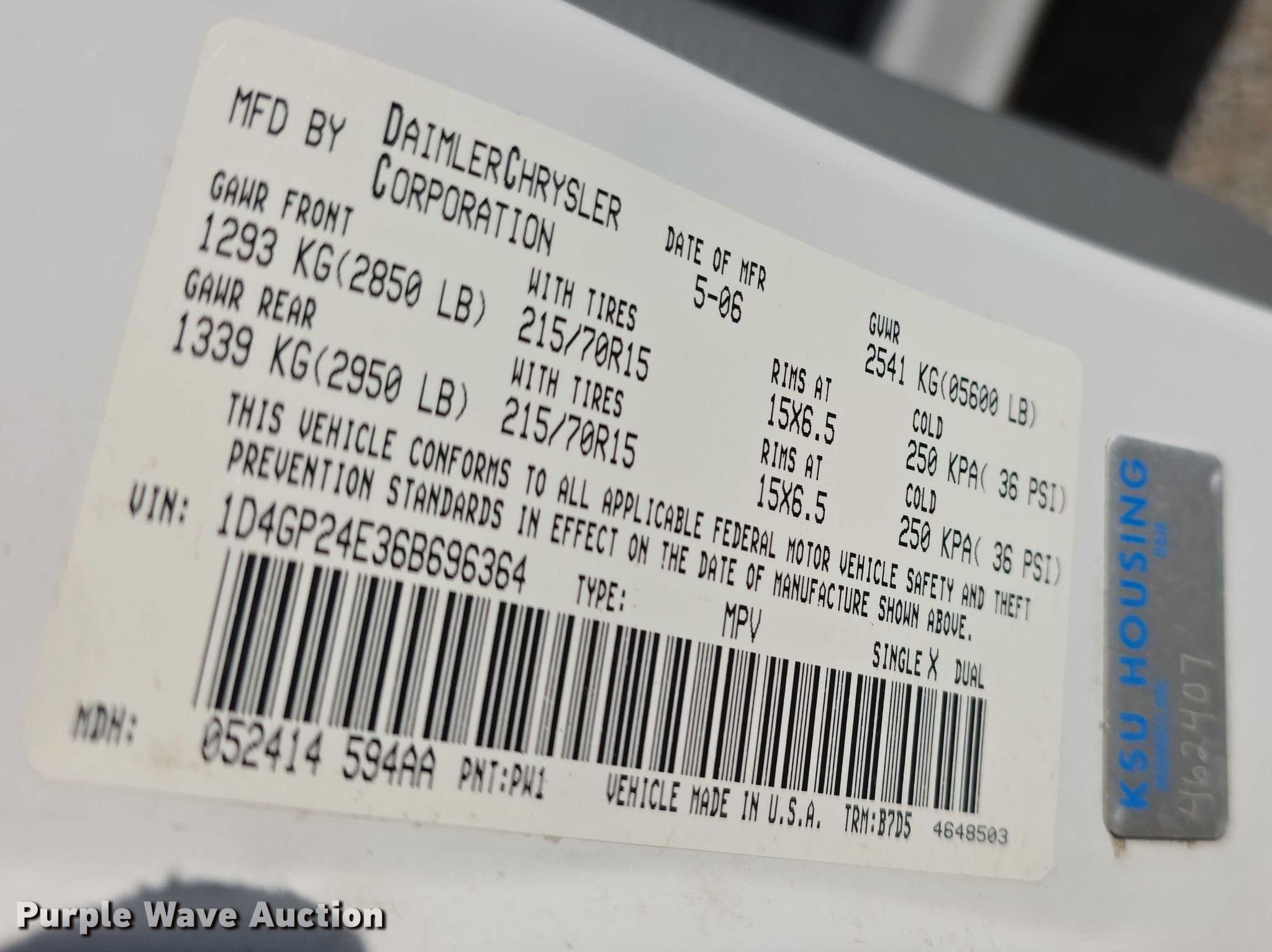 Purple Wave is selling a used Passenger Vehicle in Kansas. This item is a 2006 Dodge Grand Caravan van with the following: Miles: 137,590 on odometer, VIN: 1D4GP24E36B696364