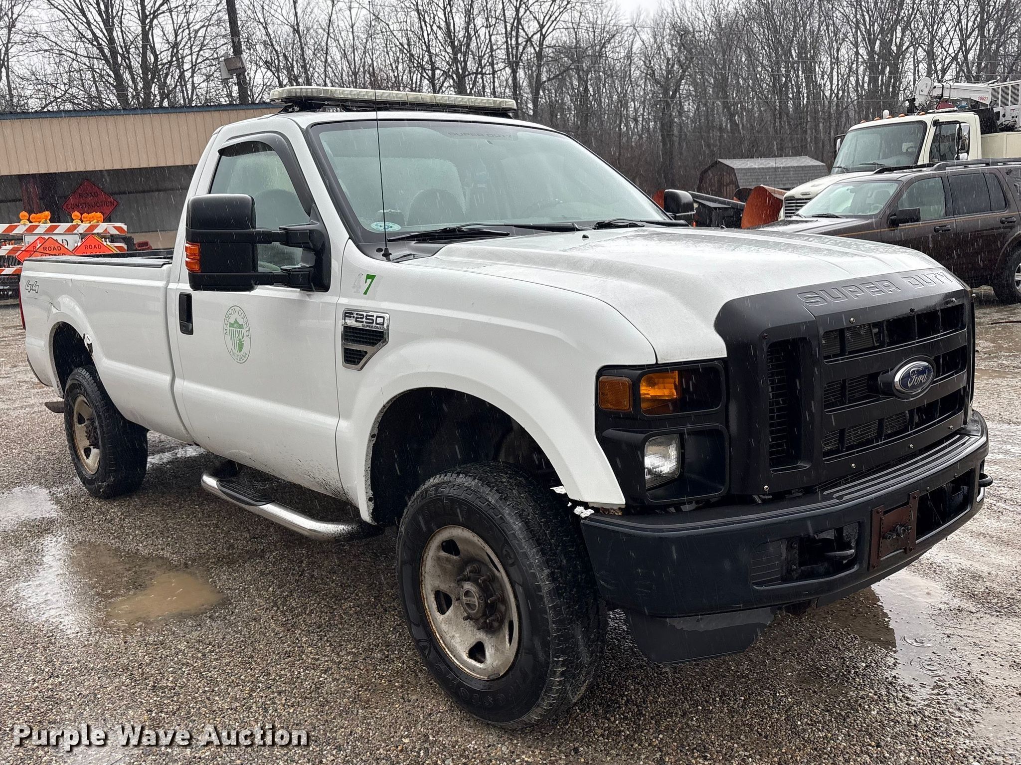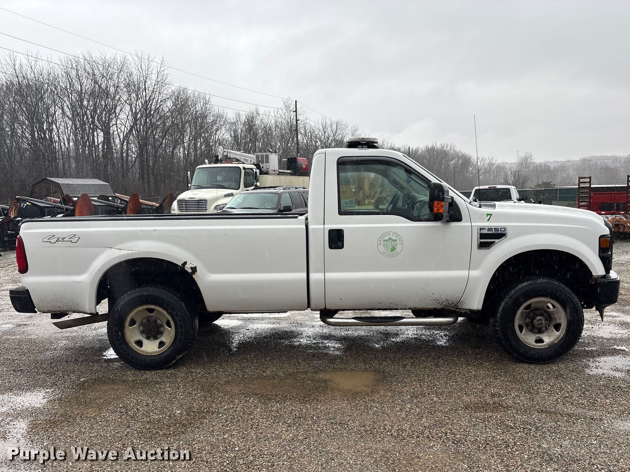 2008 Ford F250 Super Duty pickup truck. Miles: 143,657 on odometer, VIN: 1FTNF21508ED23361. Engine Displacement: 5.4L, Cylinders: 8, Fuel type: Gas. Transmission Automatic, Four wheel drive. Interior AC, Heat, Heated mirrors, Power windows, Power locks, Auxiliary controls, Brake controller. Tires Size: 245/75R17. Notes Dash warning indicator: TPMS, Jump start required during on-site data collection. Indiana title. Seller is a government entity who will be assigning and distributing the title. Please contact the seller for distribution questions. Title distribution may be delayed up to 30 days from verification of funds. Madison County Hwy Dept. Anderson, IN 46011