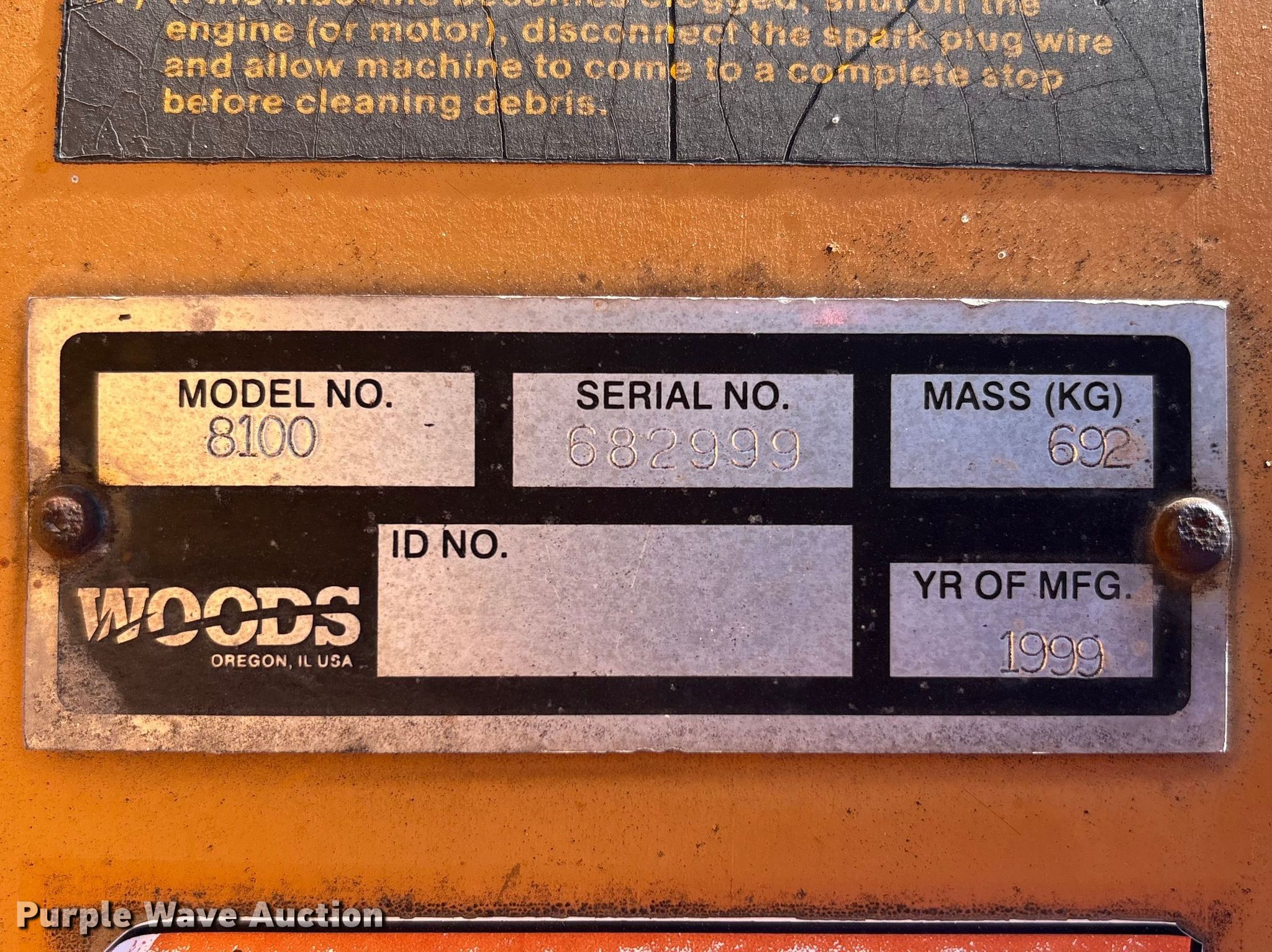 Purple Wave is selling a used Wood Chipper or Stump Grinder in Indiana. This item is a 1999 Woods 8100 wood chipper with the following: Serial: 682999