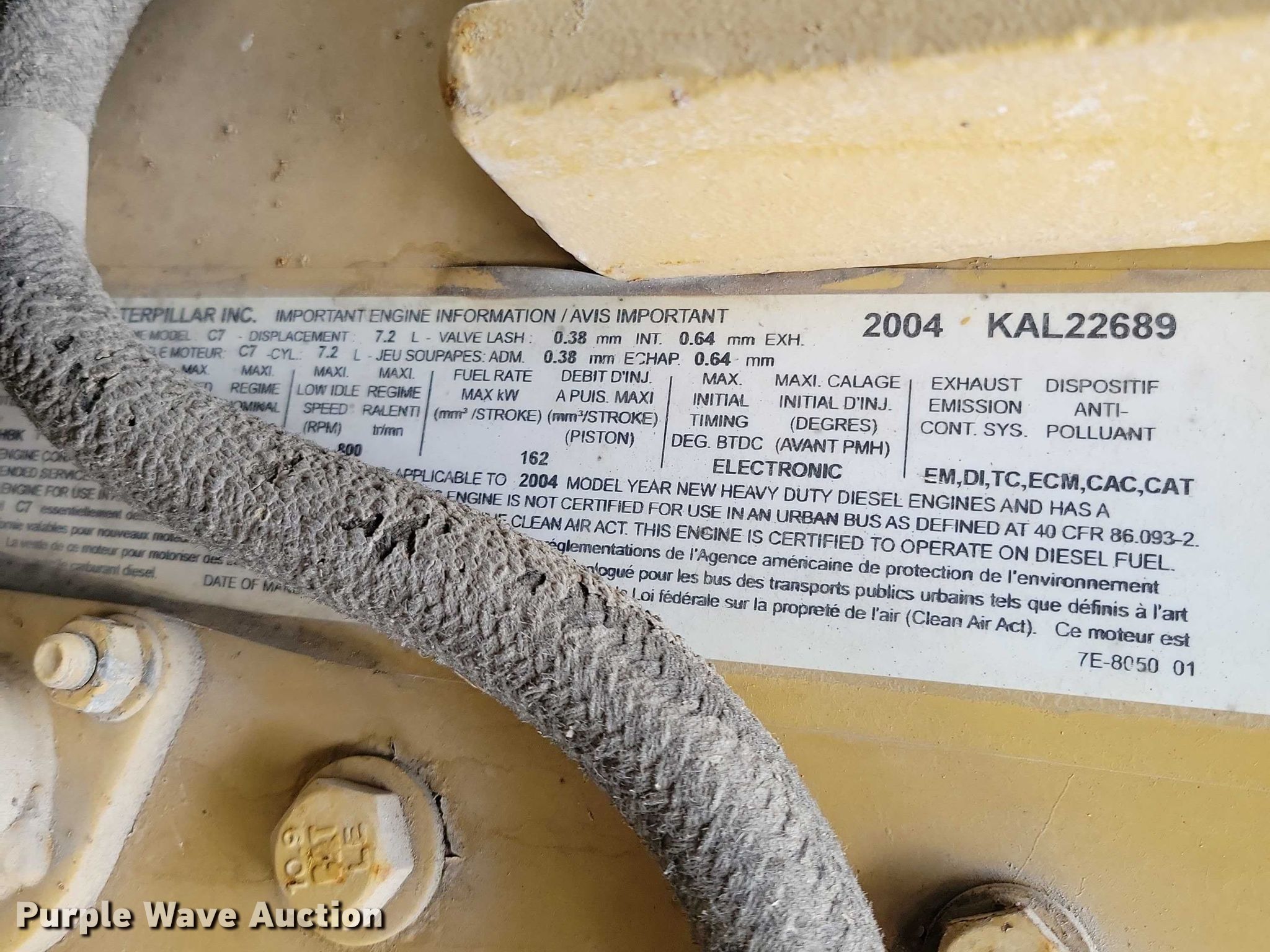 2004 GMC C8500 dump truck. Miles: 52,748 on odometer, VIN: 1GDM8C1C94F513394. Engine Caterpillar C7 Acert, Serial: KAL22689, Displacement: 7.2L, Cylinders: 6, Fuel type: Diesel, HP: 350, kW: 261. Transmission Spicer, Manual, Speed: 7. Chassis Axles: Single, Suspension: Spring, Brakes: Air, PTO, GVWR: 33,000 lbs FAWR: 12,000 lbs, RAWR: 21,000 lbs. Interior AC, Heat, Heated mirrors, Cruise control, Brake controller. Features Bed Dump bed, Phase II SD1242611BA, Serial: 09S147505D, Length: 12', Width: 96", Side height: 42", Bed type: Steel, Ram: Single, End gate: Air operated. Tires Size: 11R22.5. Notes Transmission issues , Engine issues , Unit must be towed or hauled , Non-operational unit. Iowa title. Seller is a government entity who will be assigning and distributing the title. Please contact the seller for distribution questions. Title distribution may be delayed up to 14 days from verification of funds. City of Webster City Iowa. Webster City, IA 50595
