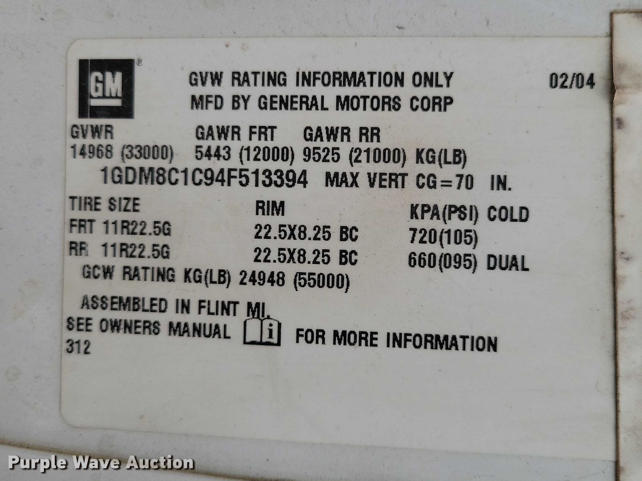 Take a look at this used 2004 GMC C8500 dump truck being sold on April 14th, 2026 in the Tuesday April 14 Government Auction made by GMC. Take a look at all of the item information below or take a look at similar auctions for Construction Trucks.