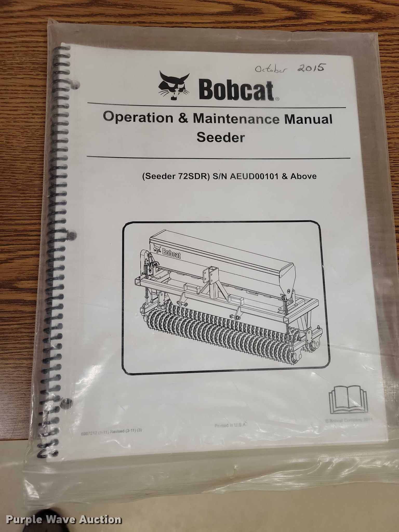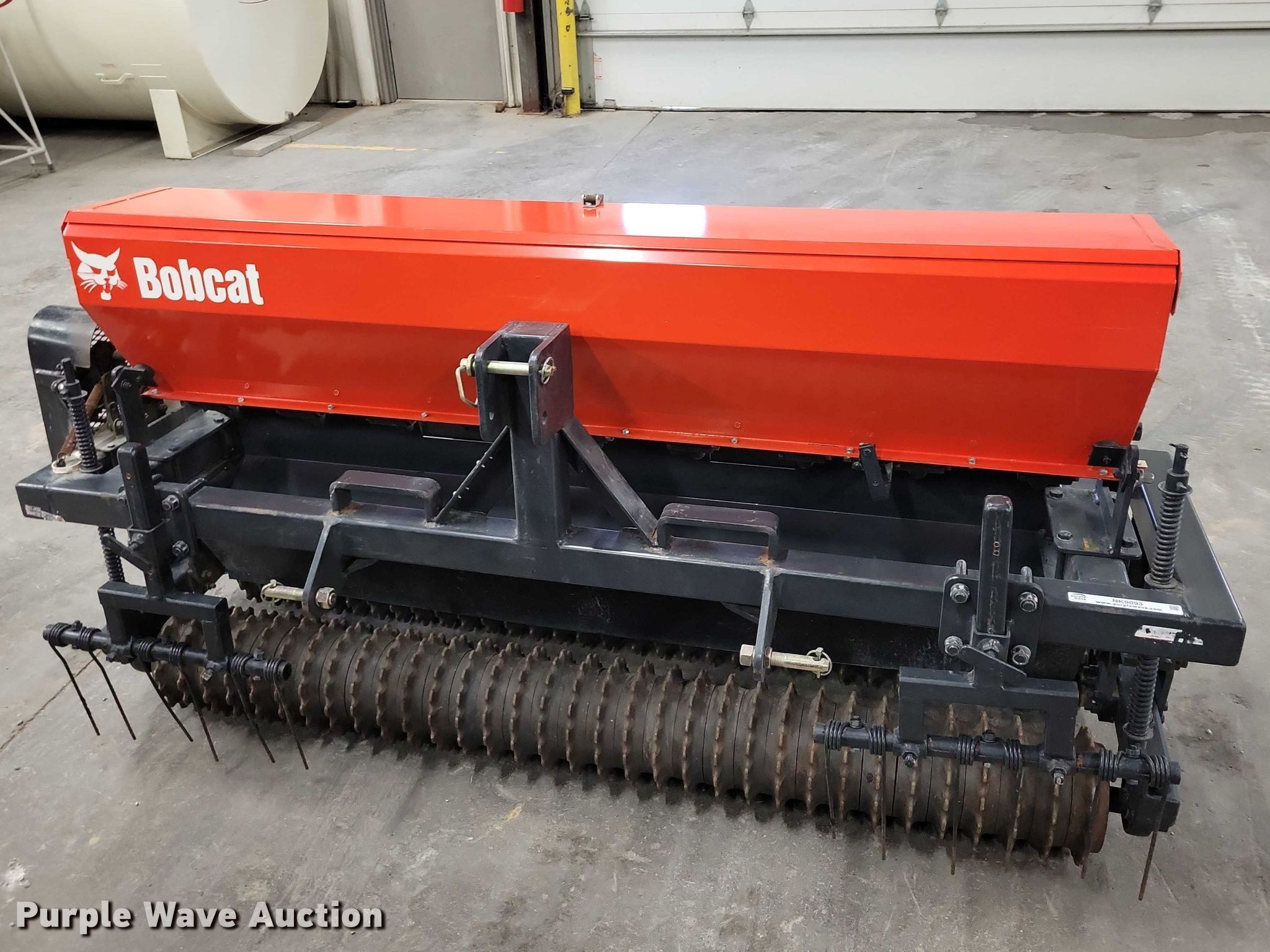 Purple Wave is selling a used Skid Steer Attach. in Iowa. This item is a Bobcat Seeder 72SDR skid steer seeder with the following: Serial: AEUD00378, Width: 72", Seed delivery: Bulk fill, Meter drive: Ground, Hitch: Three point