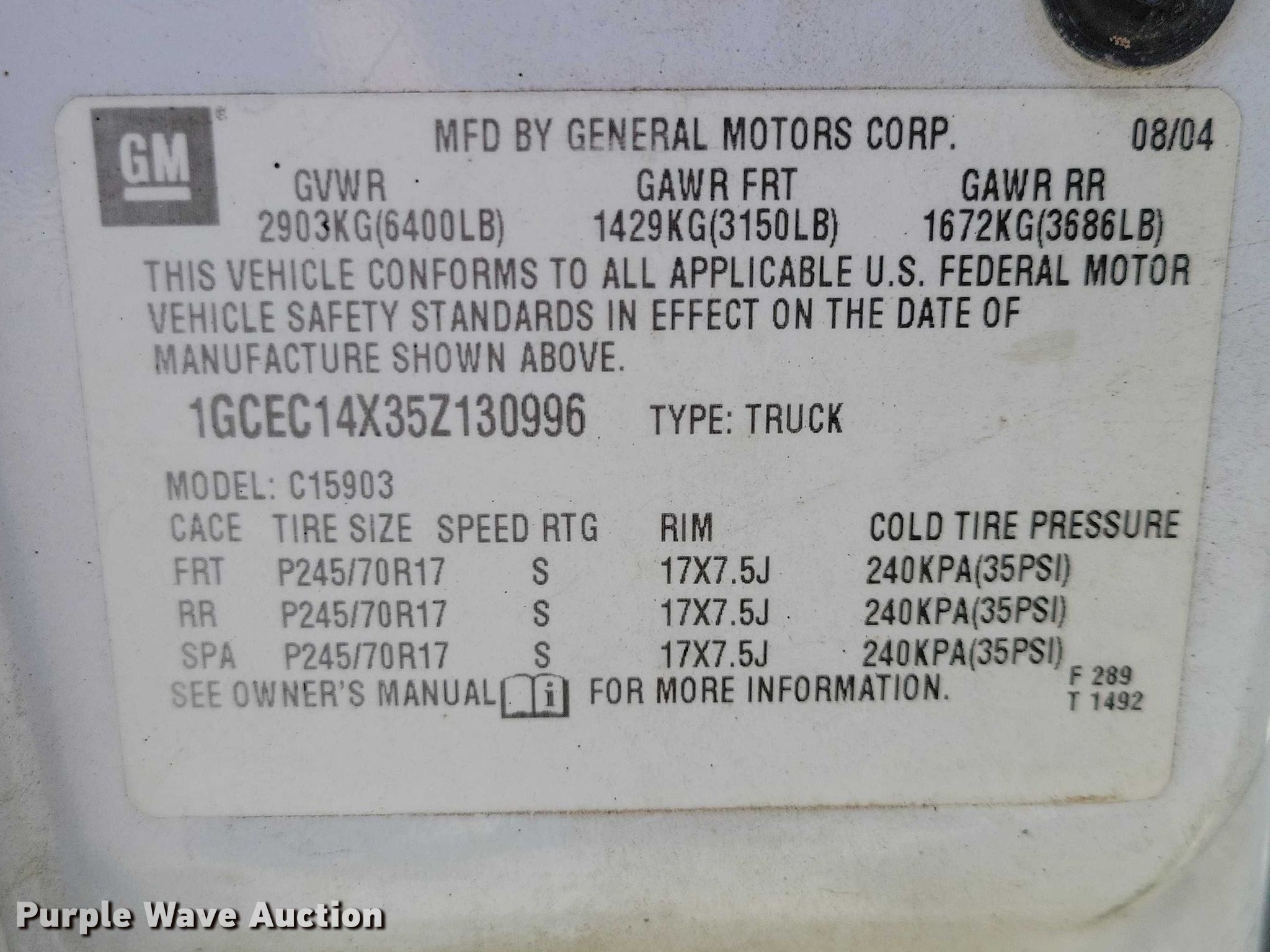 Purple Wave is selling a used 1/2 Ton Pickup or Van in Illinois. This item is a 2005 Chevrolet 1500 pickup truck with the following: Miles: 199,406 on odometer, VIN: 1GCEC14X35Z130996