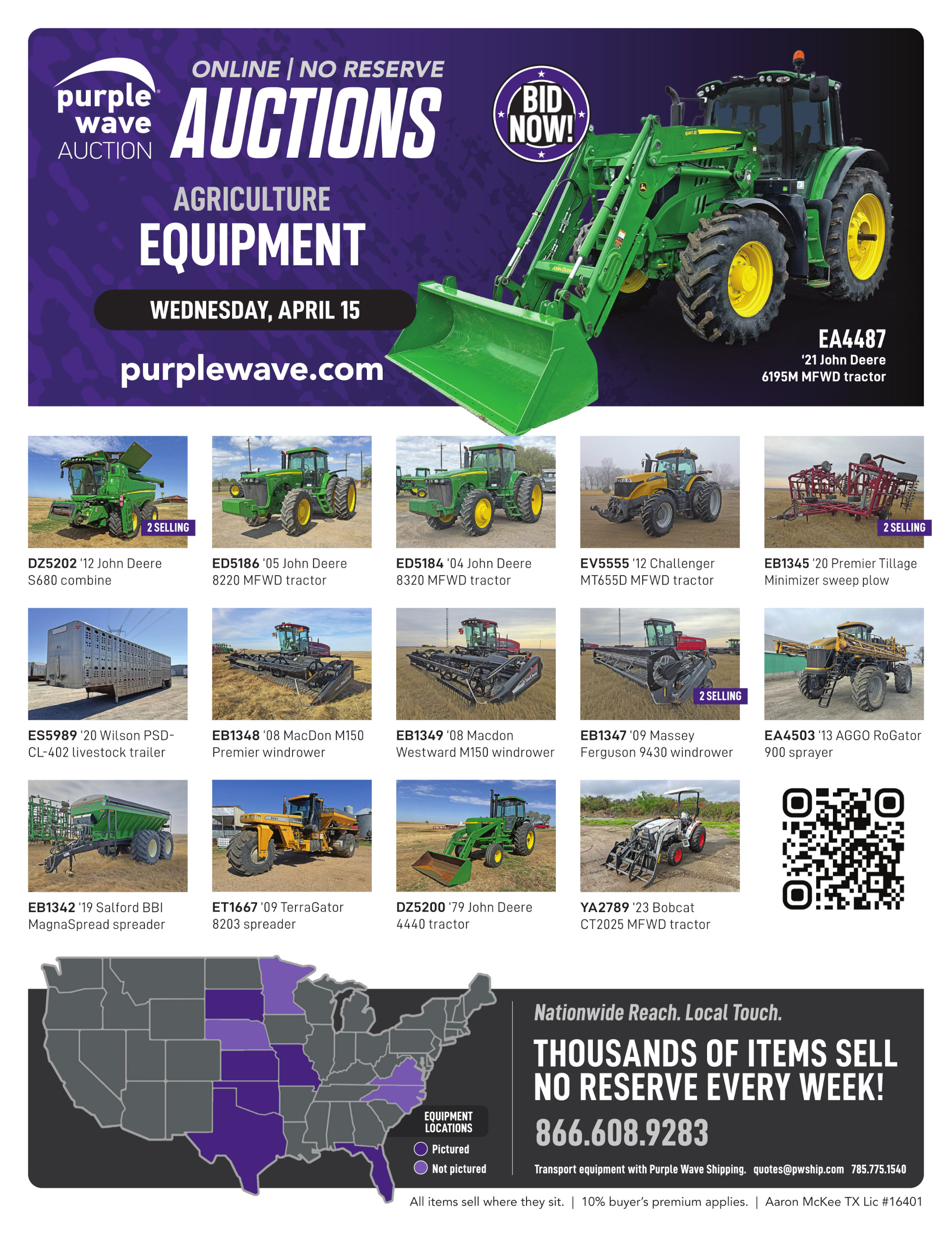 Purple Wave Shipping, LLC provides shipping and transportation services to winning bidders on ag, construction and fleet type assets. Purple Wave Shipping, LLC does not provide shipping on items weighing less than 1,000 pounds.