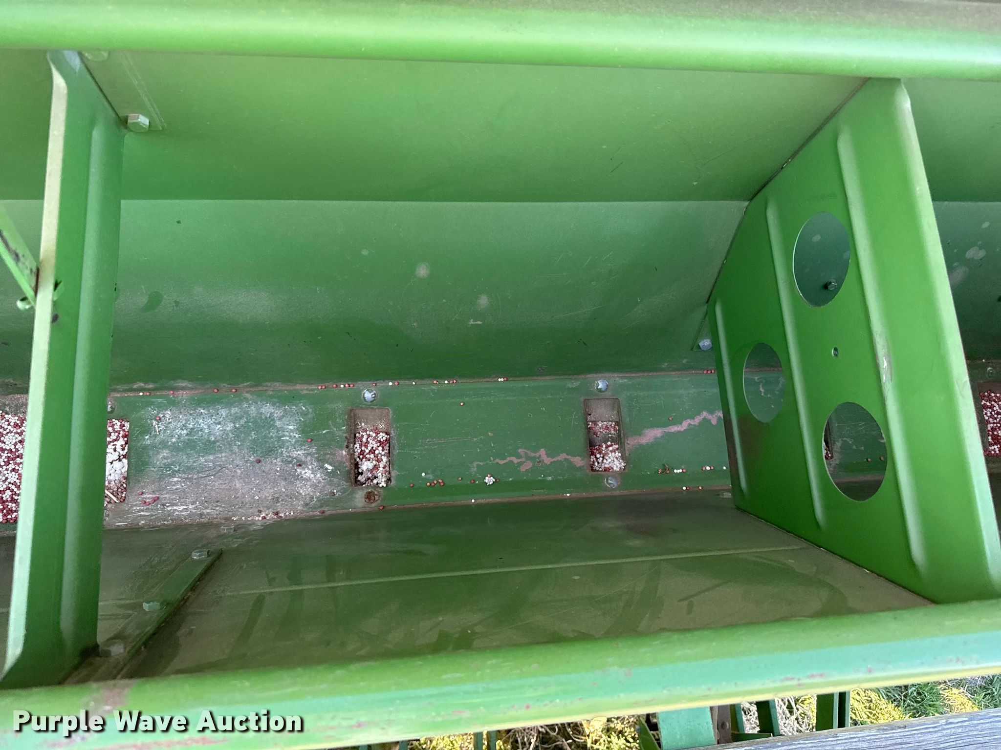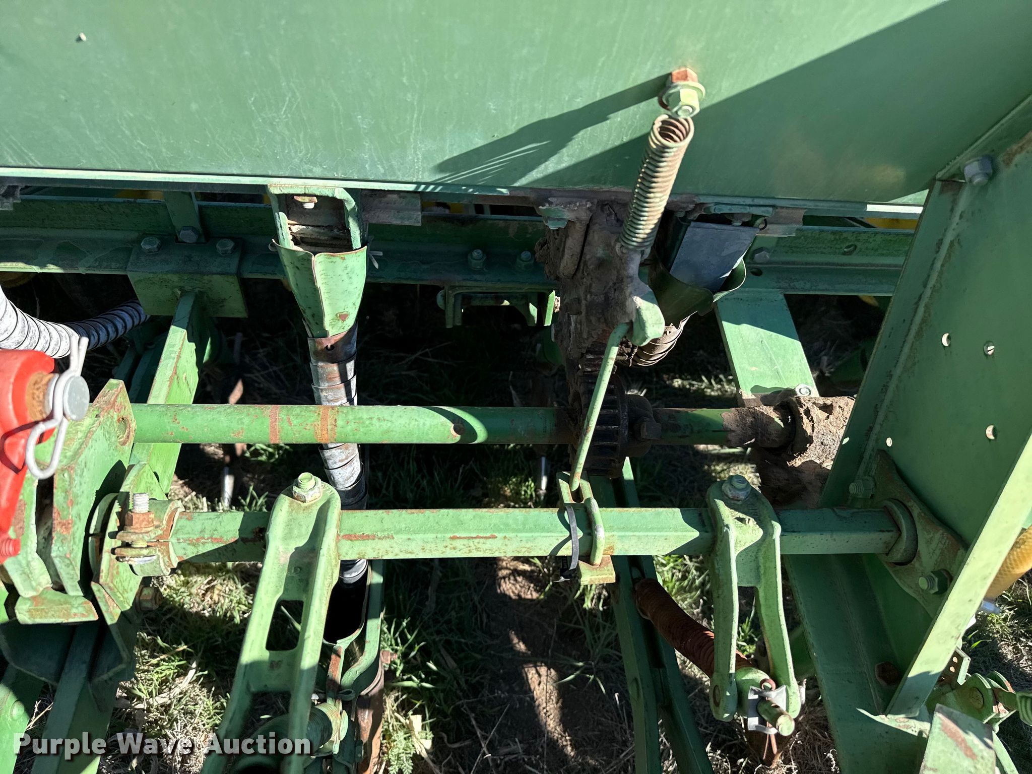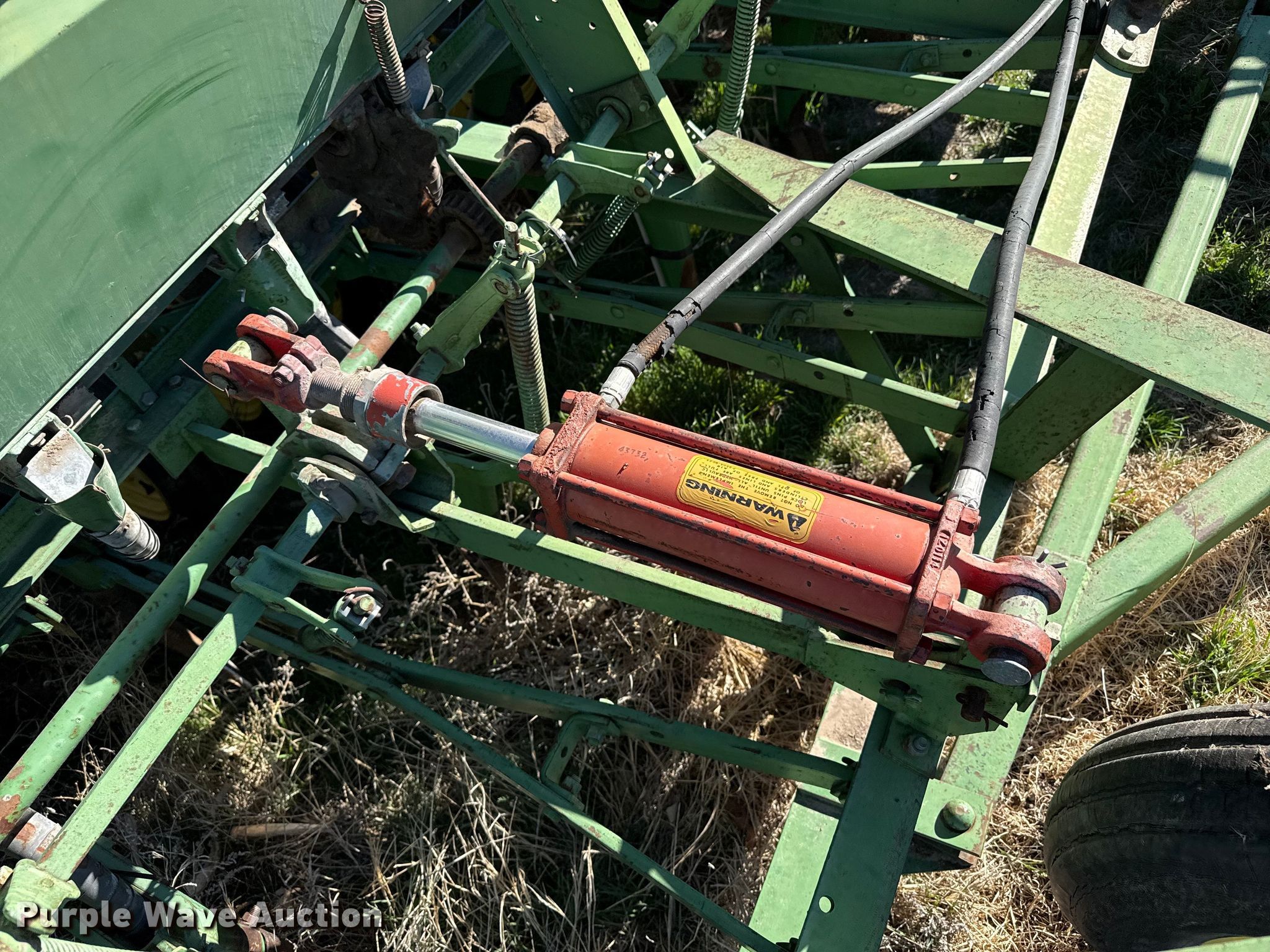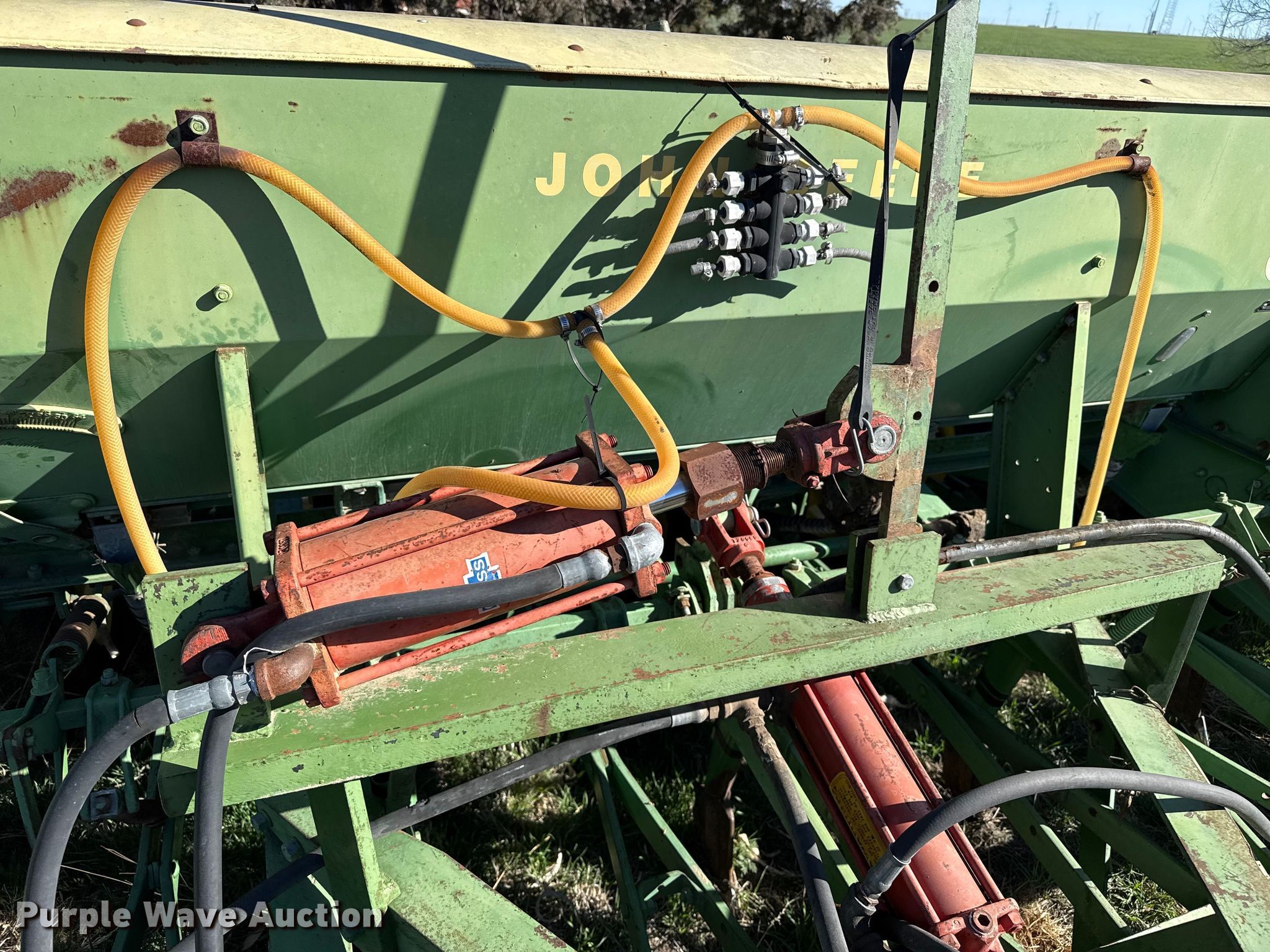 John Deere grain drill. Width: 24', Row units: 24, Row spacing: 12", Serial: 04241N, 04242N, 04243N. Features Seed delivery Bulk fill system, Row units Meter drive: Ground, Down pressure: Spring, Closing system: Single Type: Rubber.. Tires Transport tire size: 6.70-15 Quantity: 3. Spearville, KS 67876