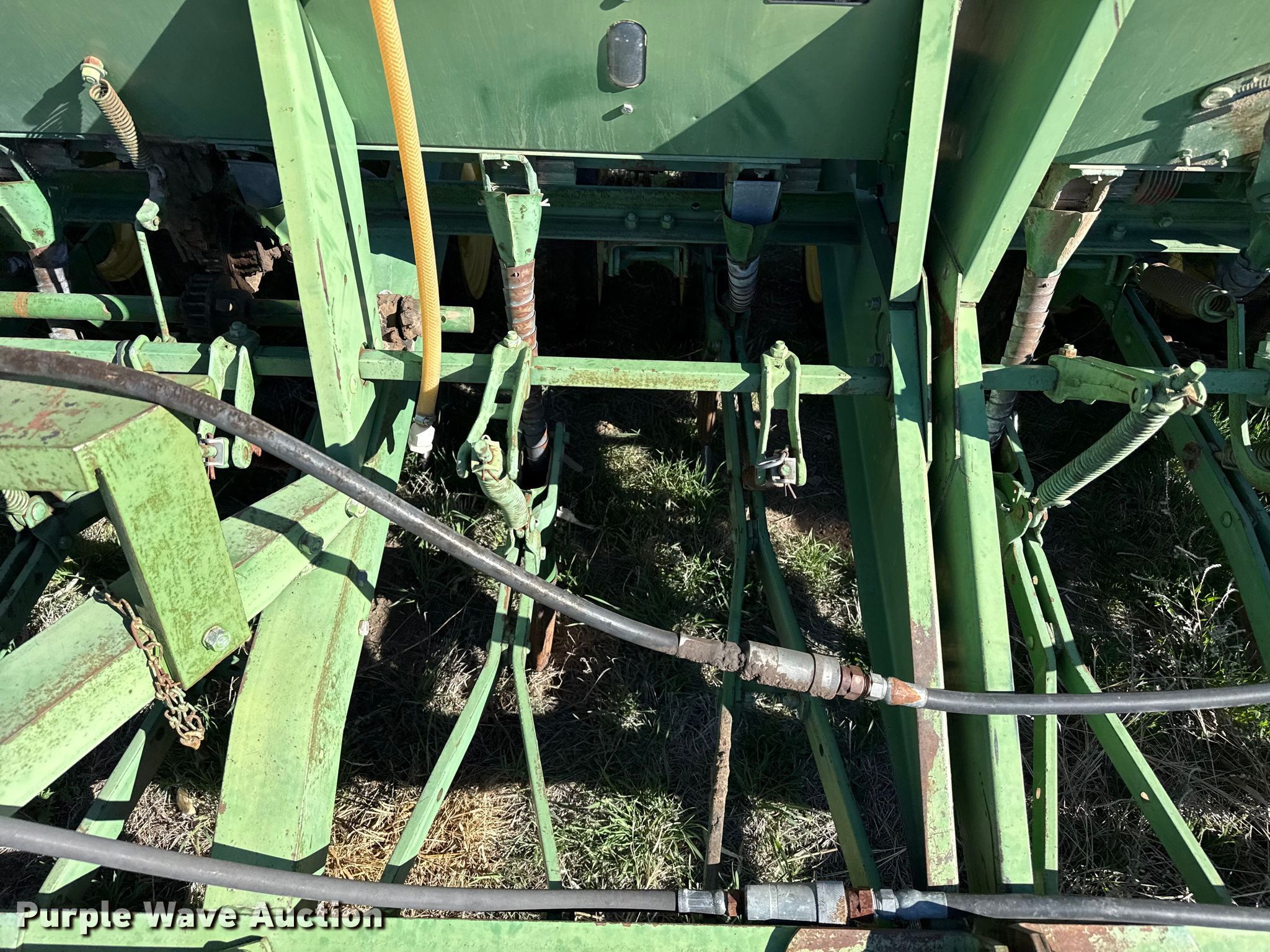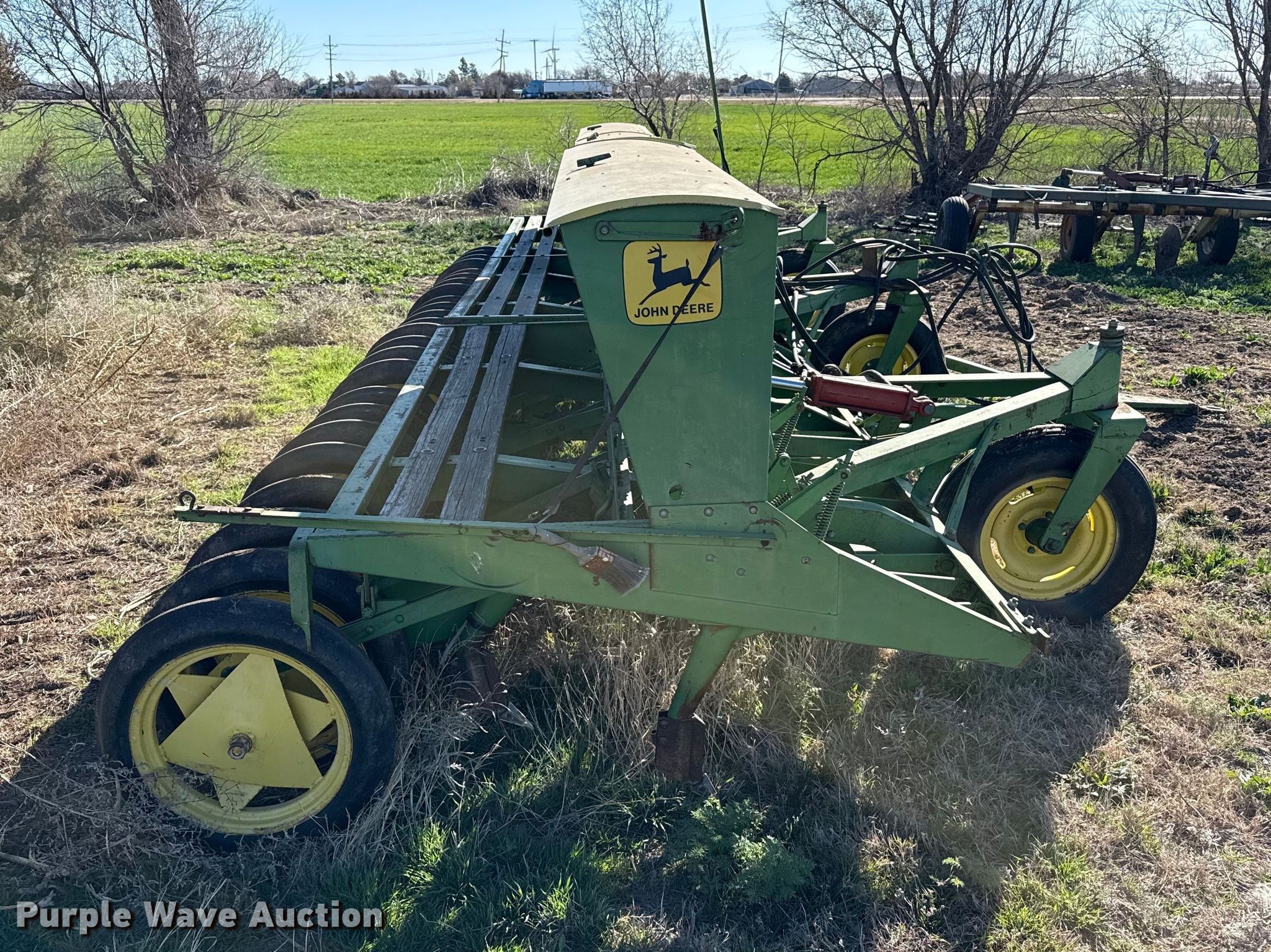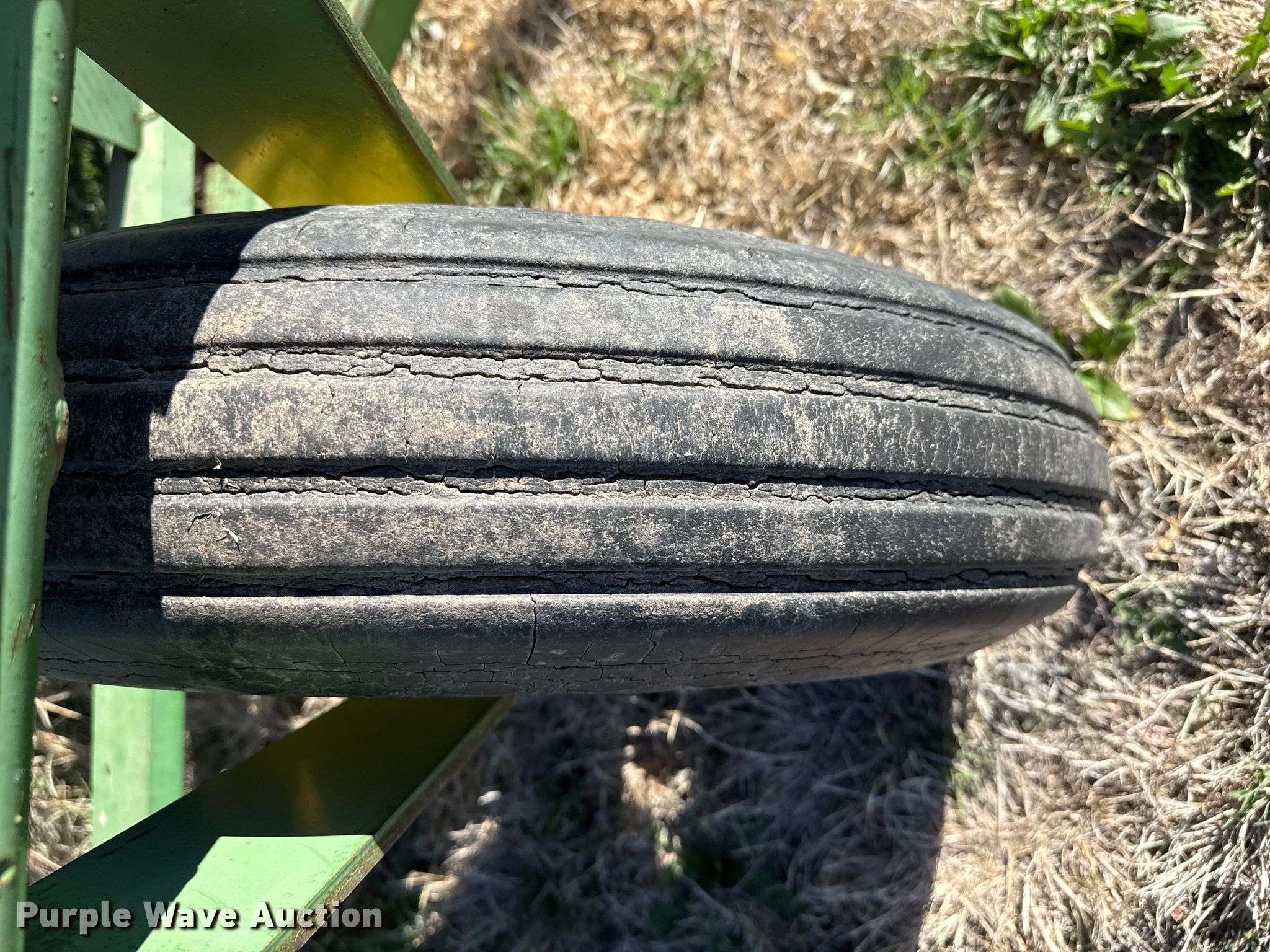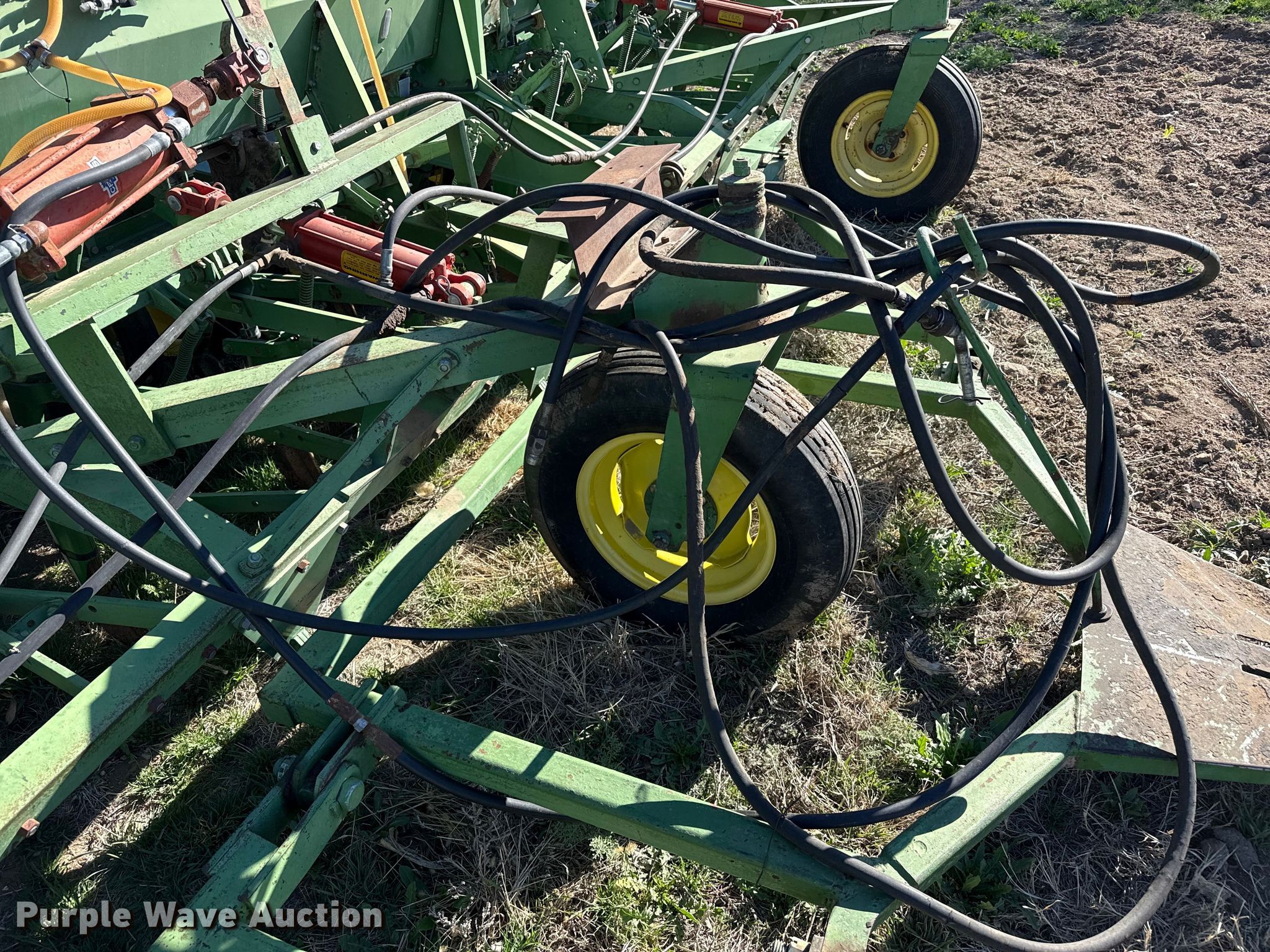 John Deere grain drill. Width: 24', Row units: 24, Row spacing: 12", Serial: 04241N, 04242N, 04243N. Features Seed delivery Bulk fill system, Row units Meter drive: Ground, Down pressure: Spring, Closing system: Single Type: Rubber.. Tires Transport tire size: 6.70-15 Quantity: 3. Spearville, KS 67876