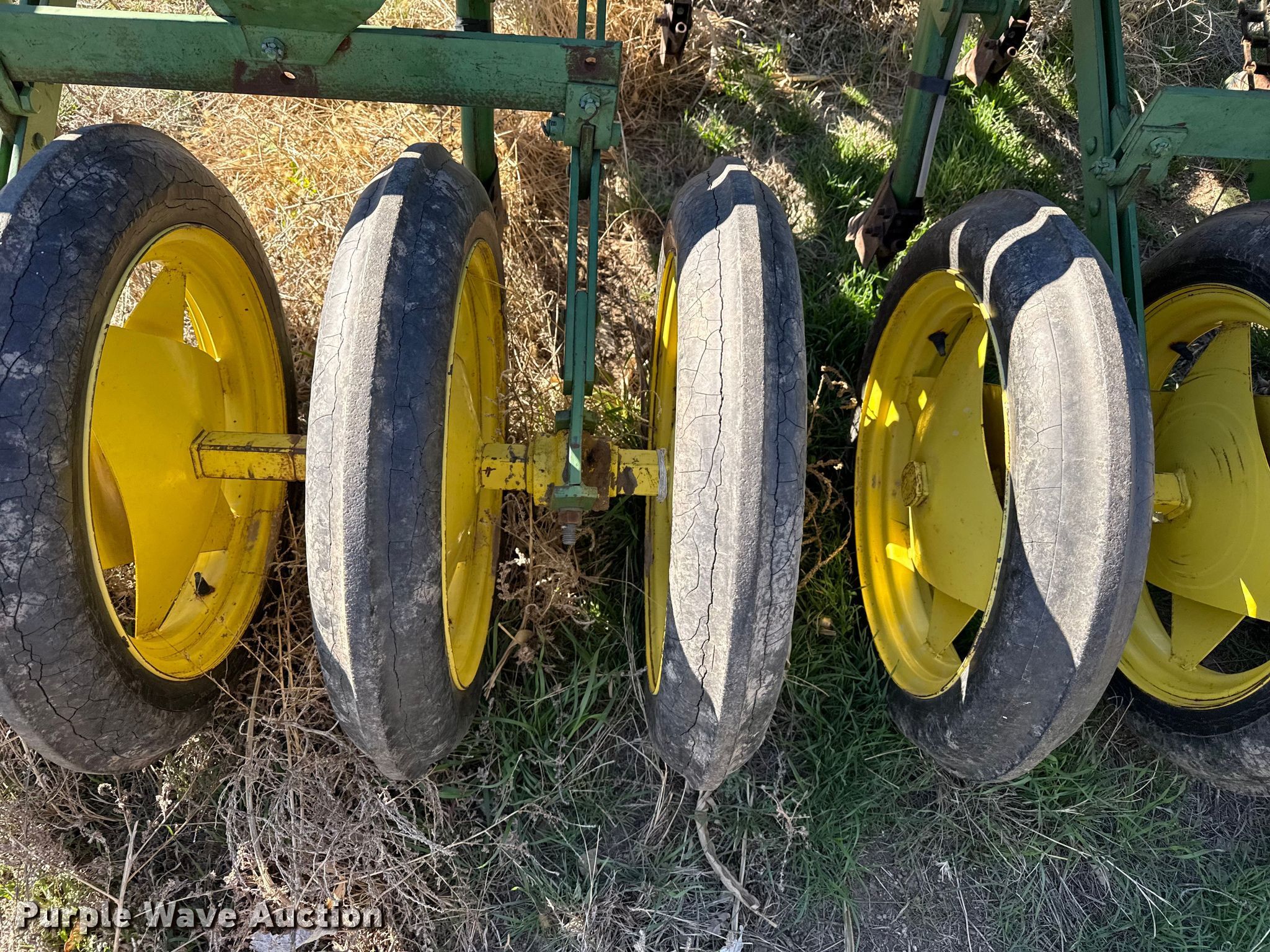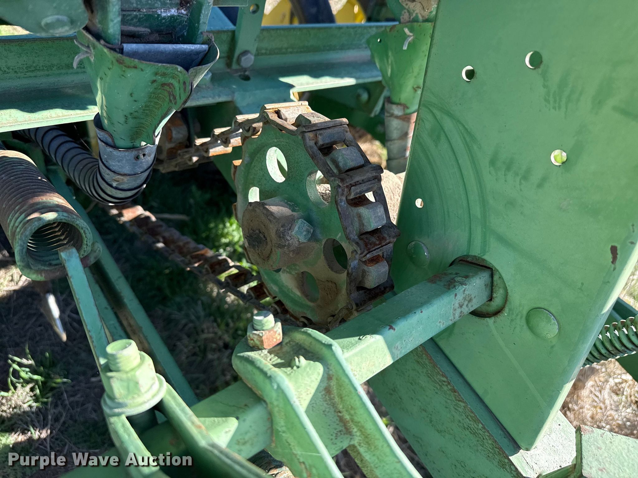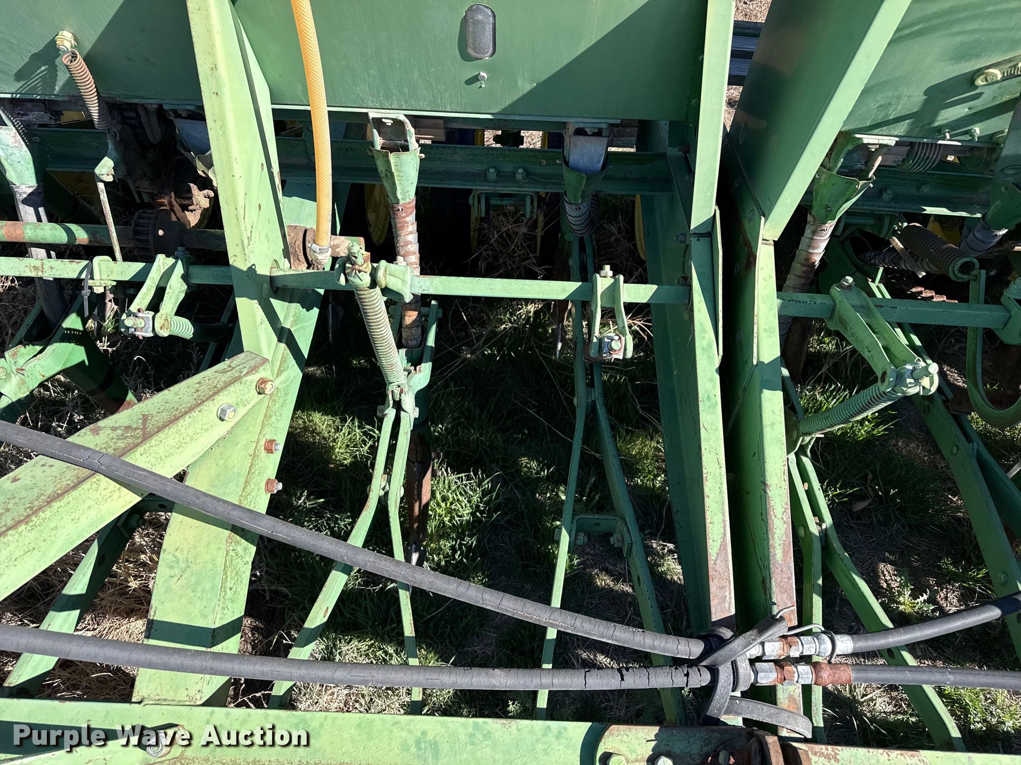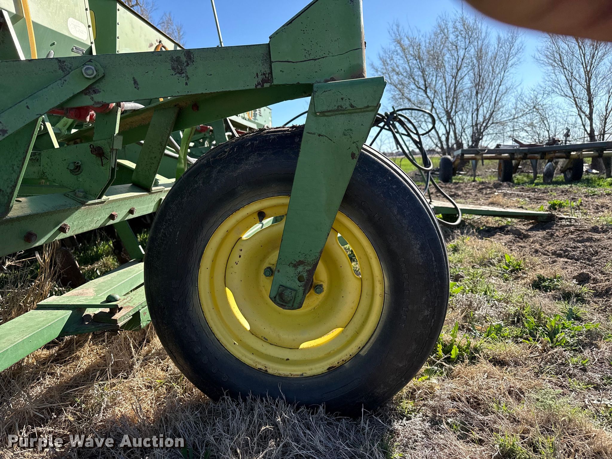 John Deere grain drill. Width: 24', Row units: 24, Row spacing: 12", Serial: 04241N, 04242N, 04243N. Features Seed delivery Bulk fill system, Row units Meter drive: Ground, Down pressure: Spring, Closing system: Single Type: Rubber.. Tires Transport tire size: 6.70-15 Quantity: 3. Spearville, KS 67876