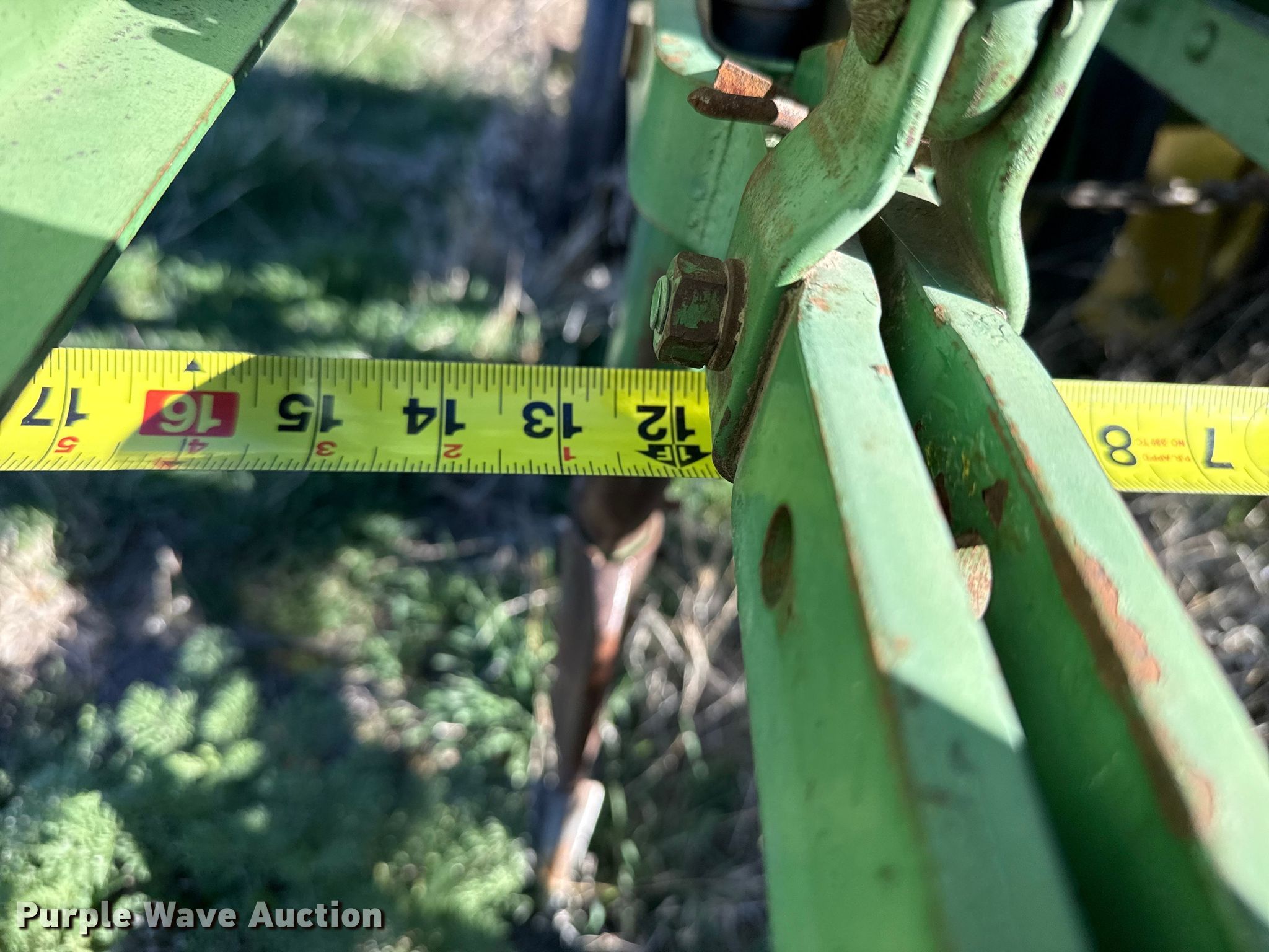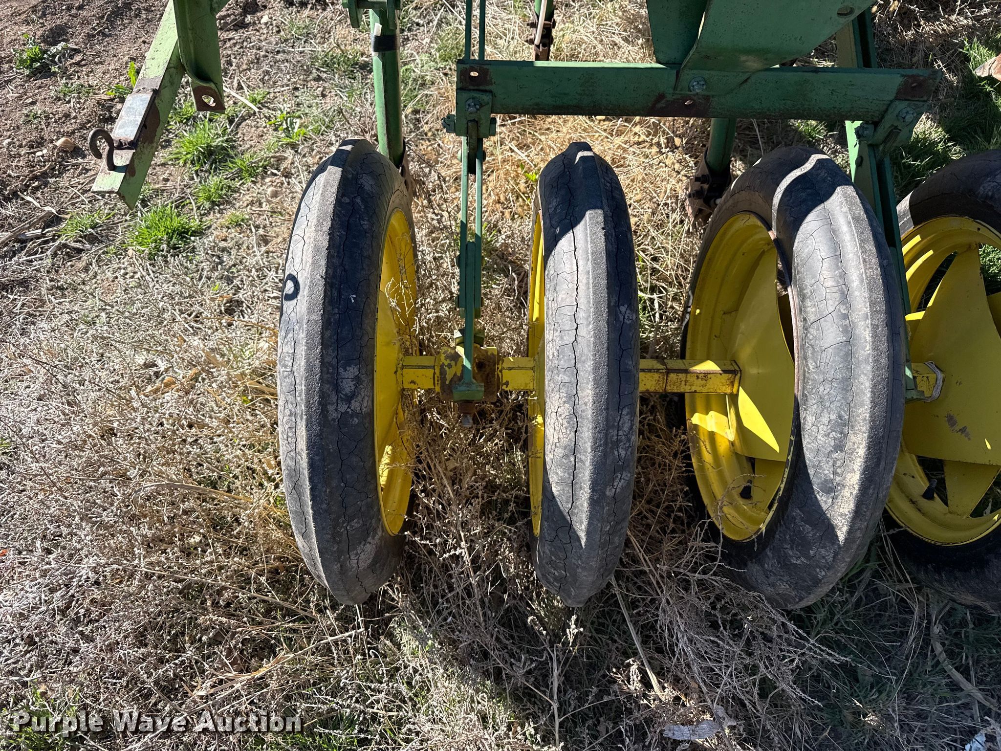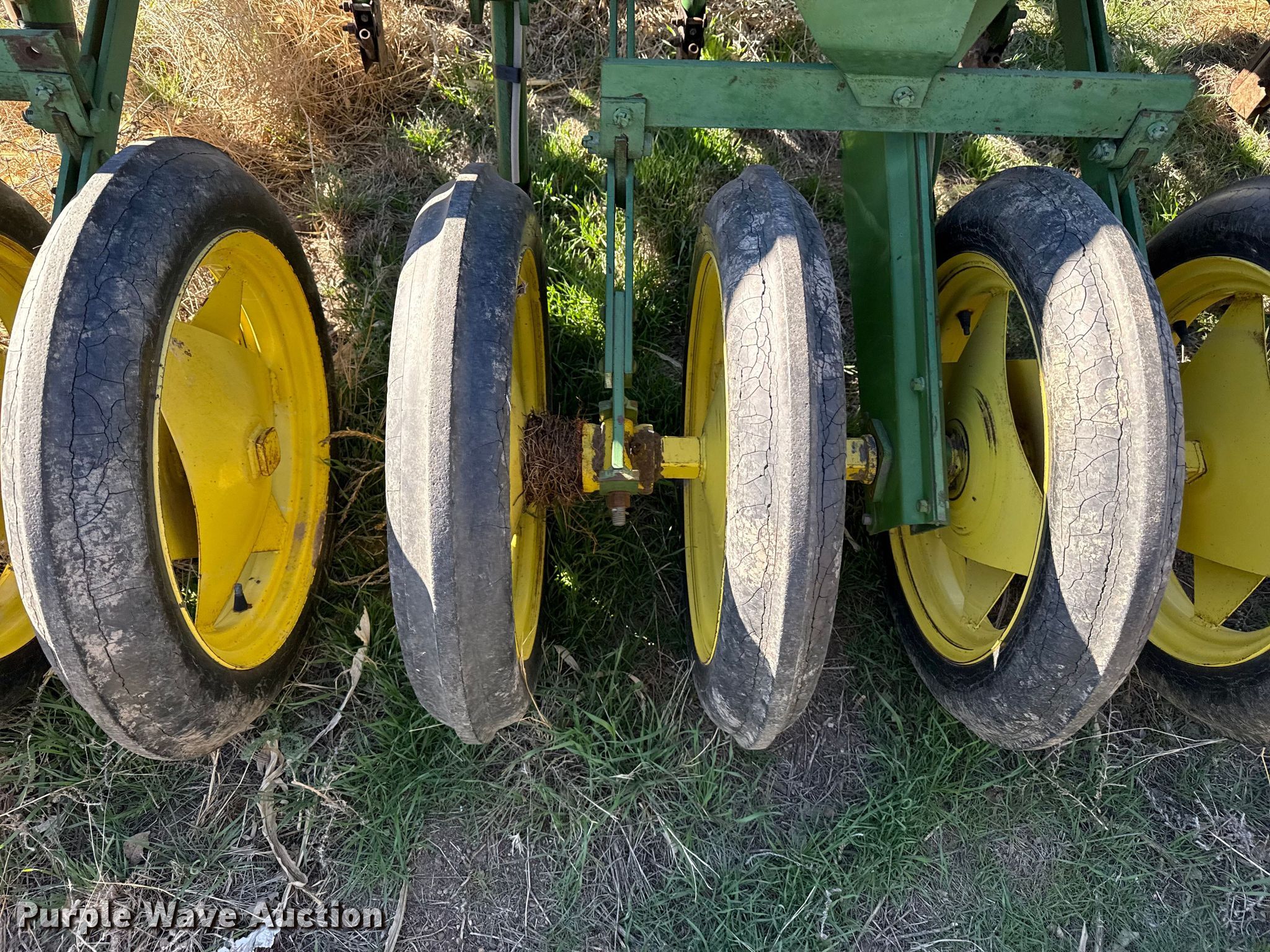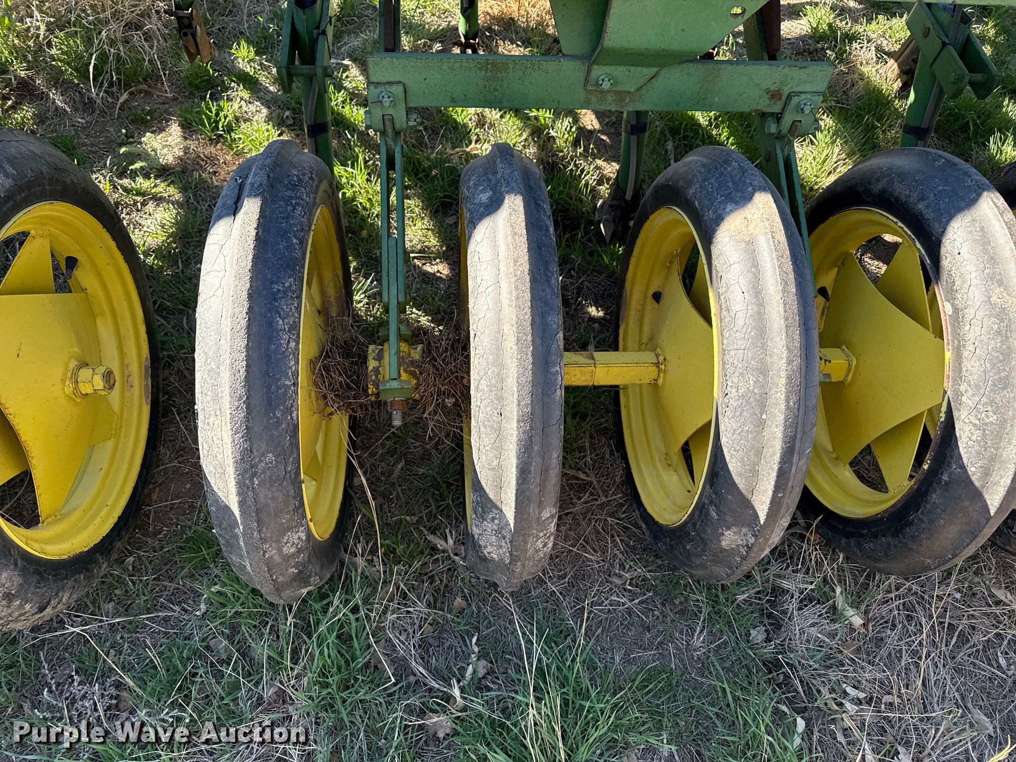 John Deere grain drill. Width: 24', Row units: 24, Row spacing: 12", Serial: 04241N, 04242N, 04243N. Features Seed delivery Bulk fill system, Row units Meter drive: Ground, Down pressure: Spring, Closing system: Single Type: Rubber.. Tires Transport tire size: 6.70-15 Quantity: 3. Spearville, KS 67876