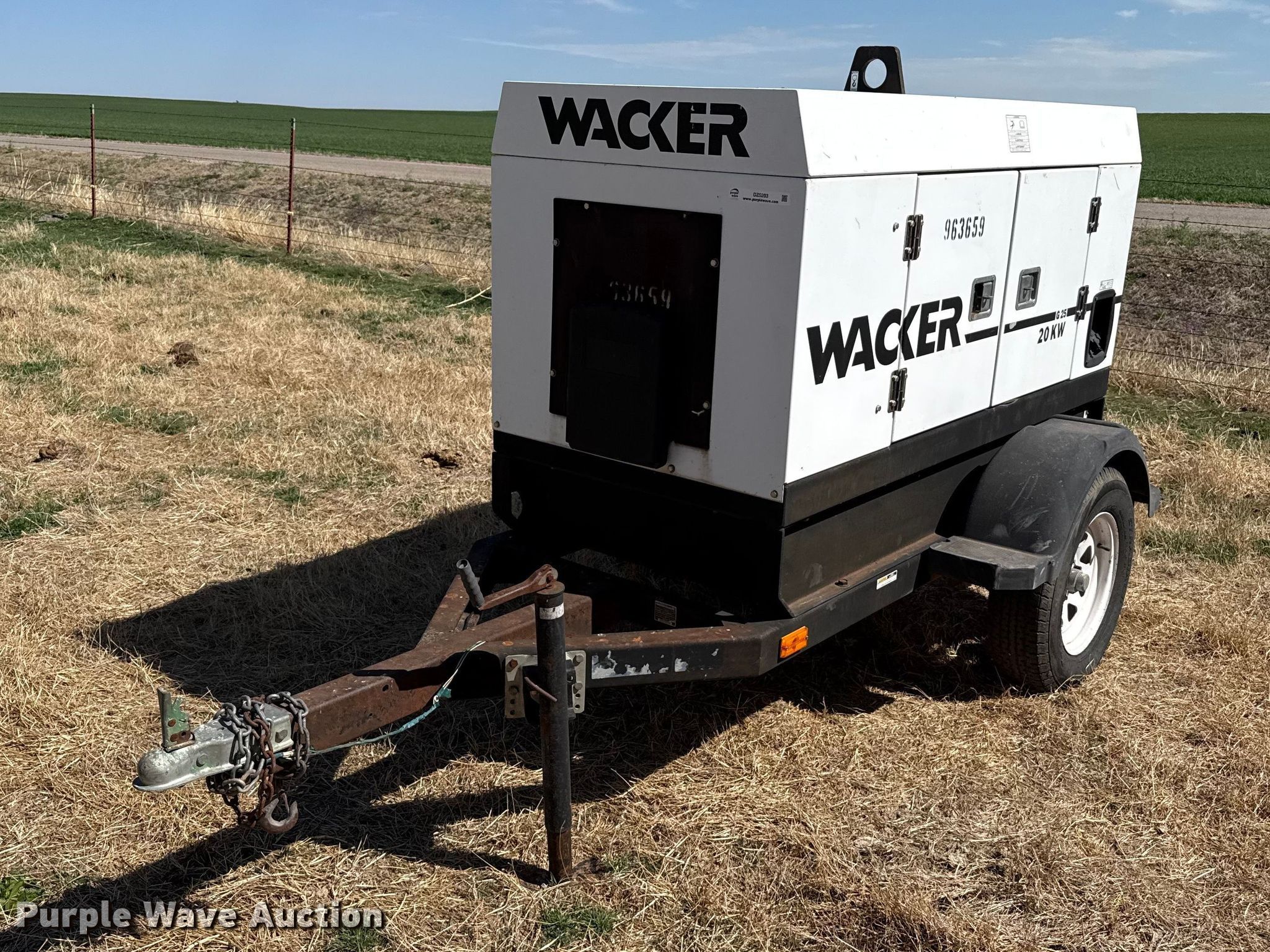Purple Wave is selling a used Generator Set in Oklahoma. This item is a Wacker G25 generator with the following: Hours: 14,386 on meter