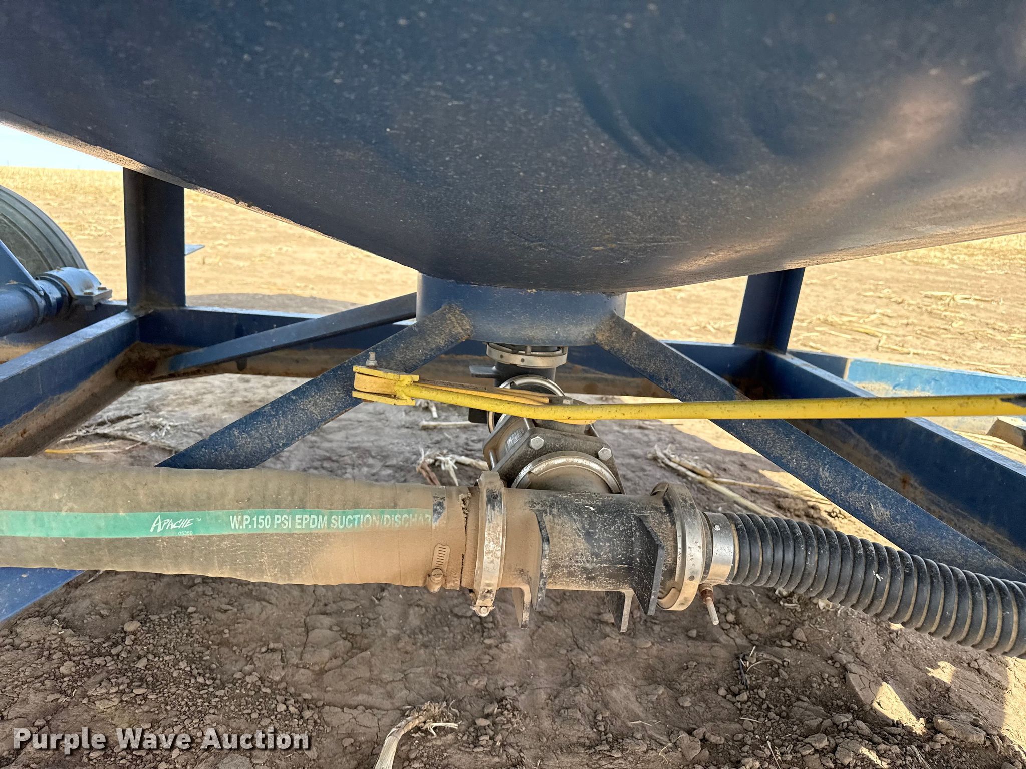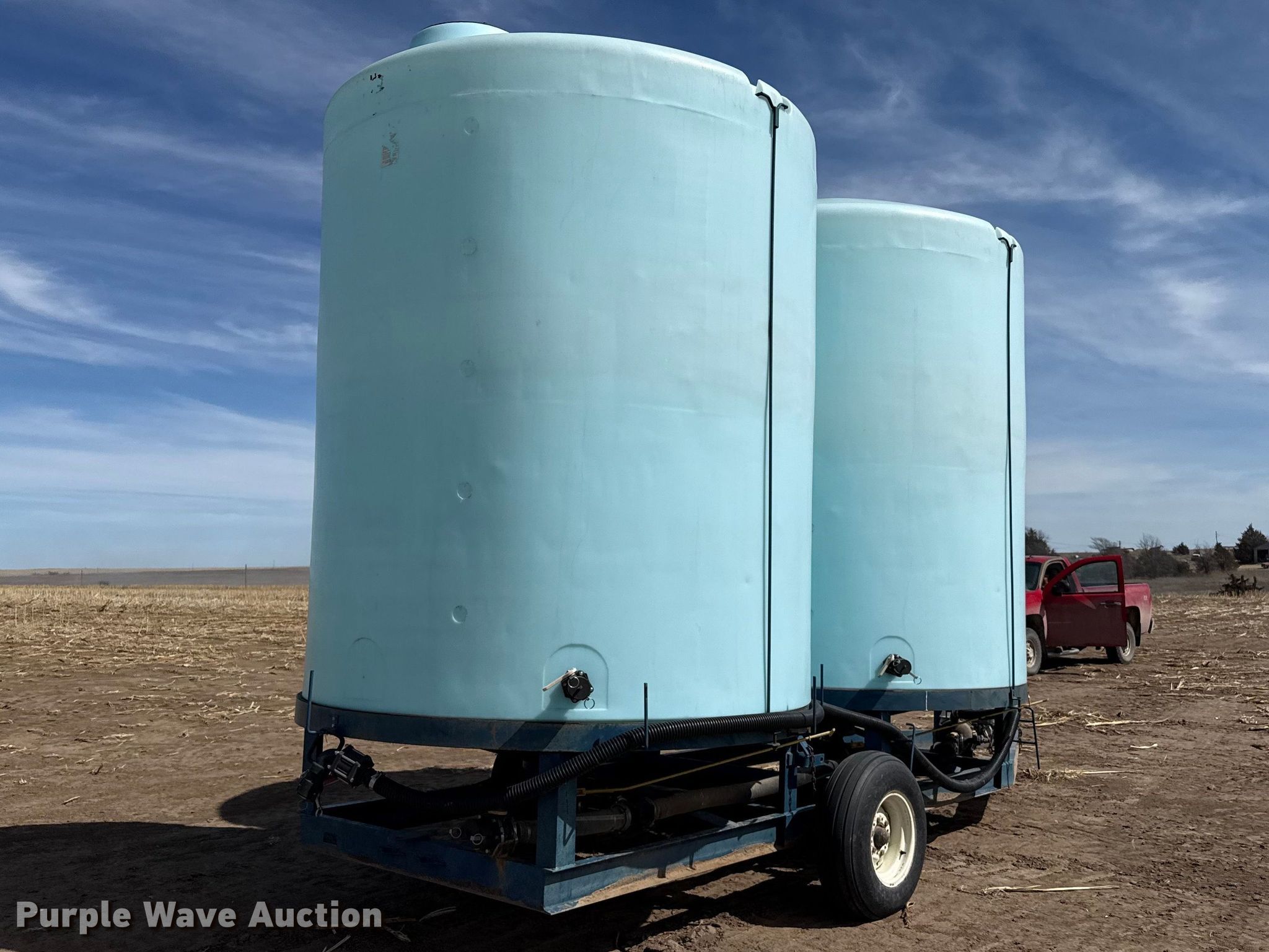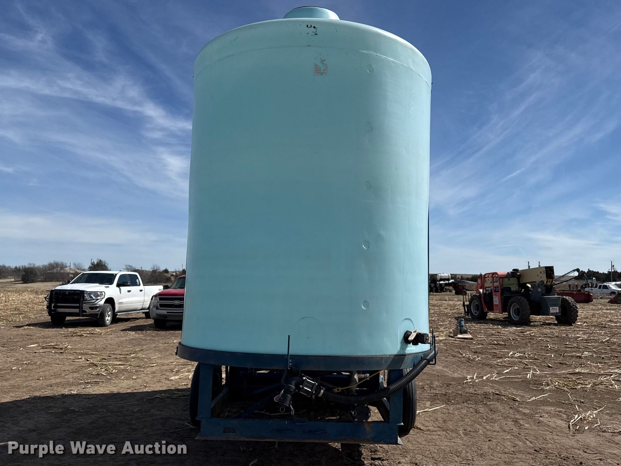 Skiles Industries nurse tank trailer. VIN: 9800247. Dimensions Overall Length: 20', Width: 94". Features Tank type: Poly Capacity: 6,000 gallons, Pump Outlet size: 2", Hose length: 12'. Chassis Hitch: Pintle, Landing gear: Single. Tires Steel wheels, Size: 9.5L-15SL. Notes Hydraulic lift axle Cylinder missing, Pump issues, seized. This is worksite support equipment and will not come with a title. Transfer of ownership documentation will be a bill of sale. Morland, KS 67650