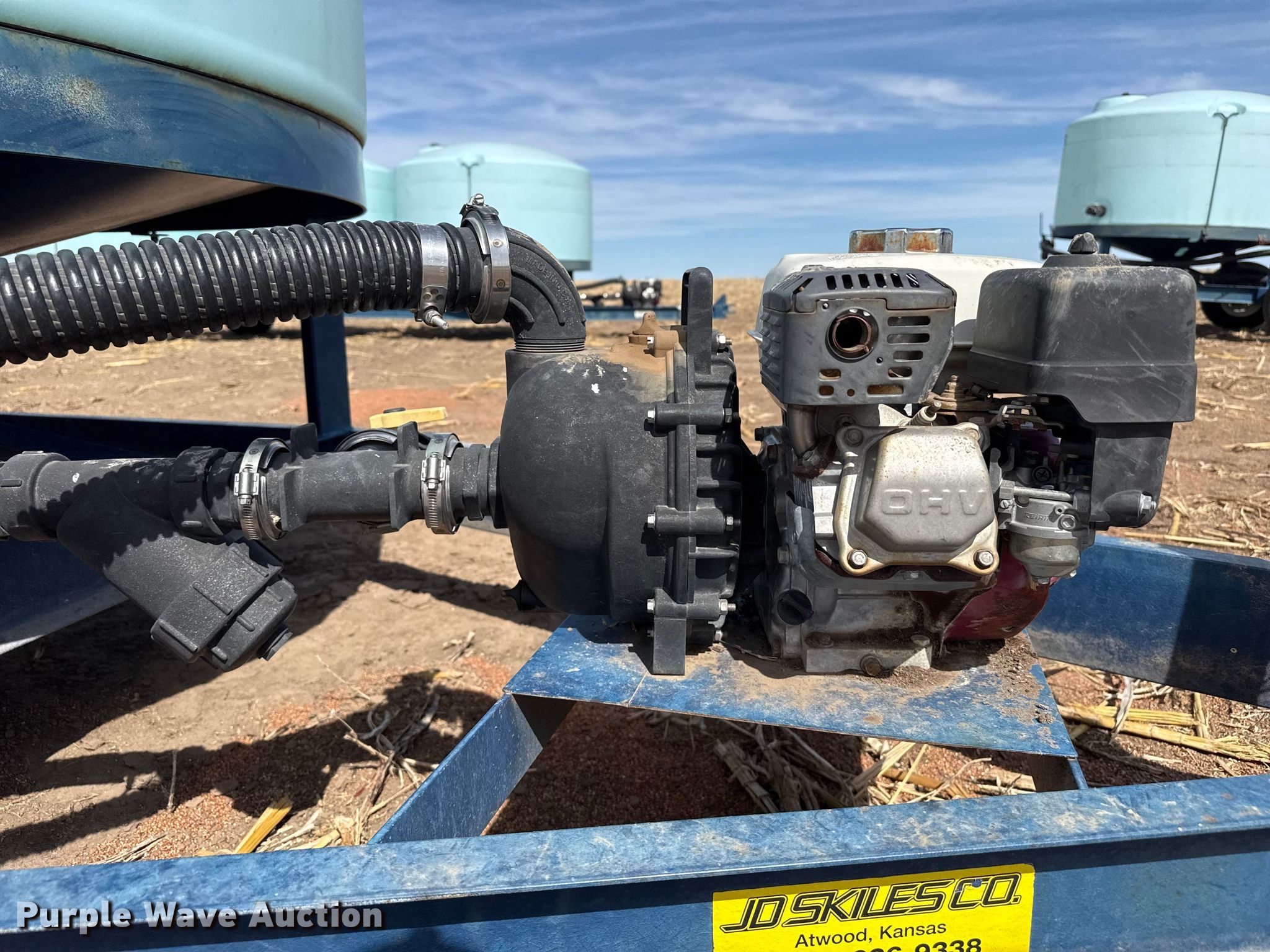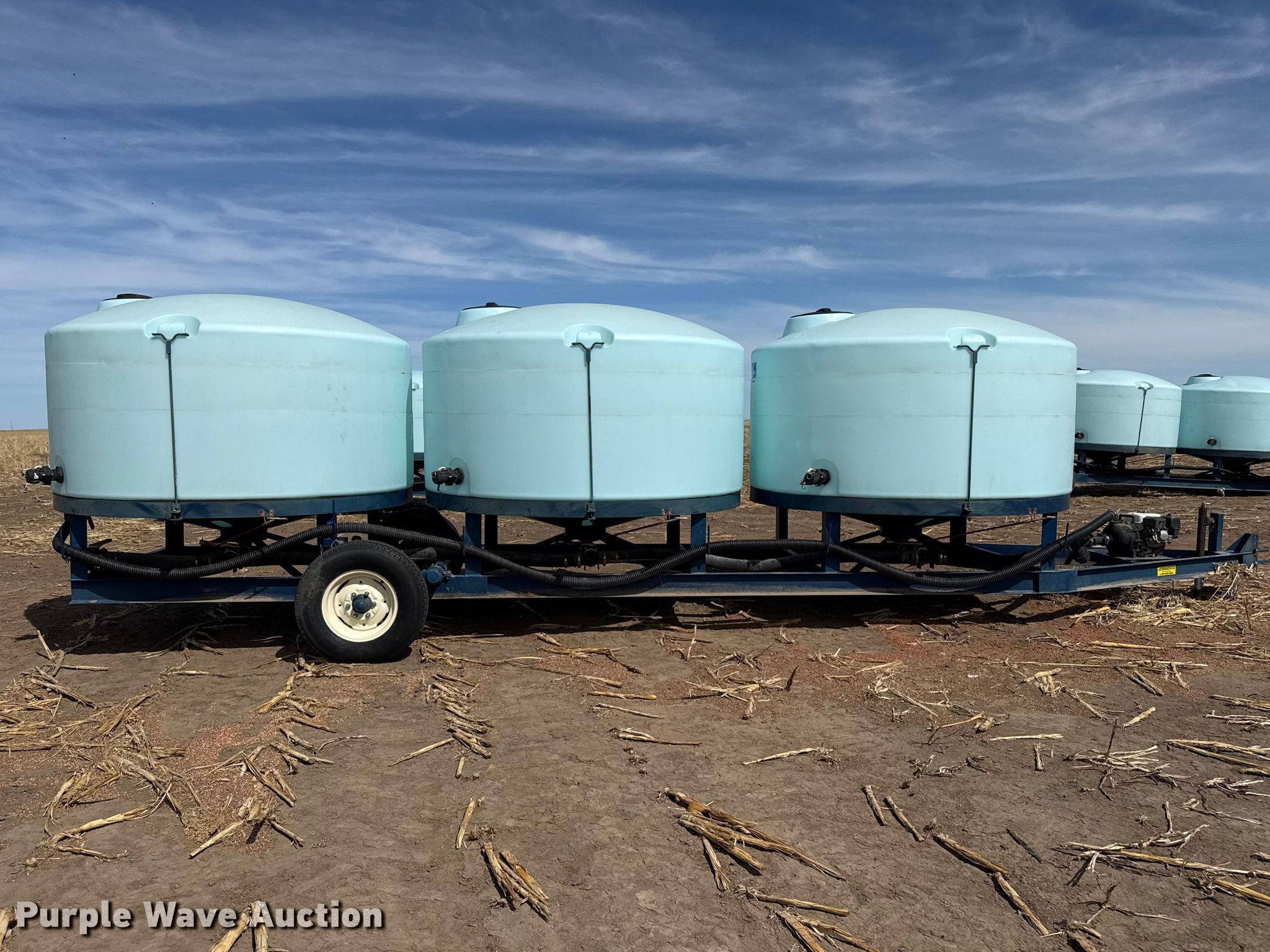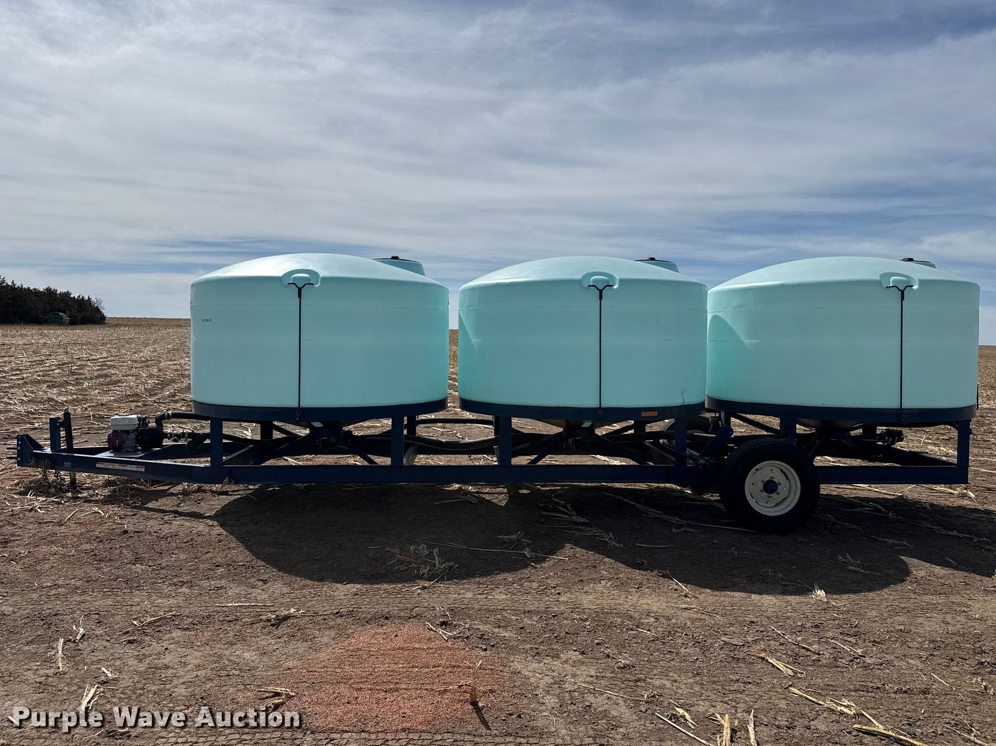 2013 Skiles Industries nurse tank trailer. VIN: SN13CT027. Dimensions Overall Length: 28', Width: 94". Features Tank type: Poly Capacity: 3,900 gallons, Pump Outlet size: 2", Hose length: 20'. Chassis Hitch: Pintle, Landing gear: Single. Tires Steel wheels, Size: 235/80R16. Notes Hydraulic lift axle Cylinder missing, Pump issues, seized. This is worksite support equipment and will not come with a title. Transfer of ownership documentation will be a bill of sale. Morland, KS 67650