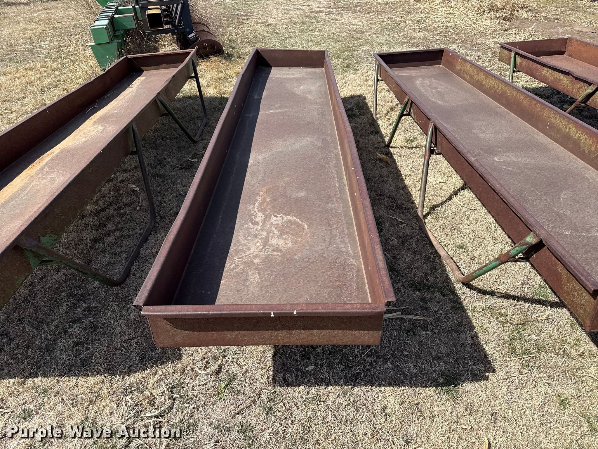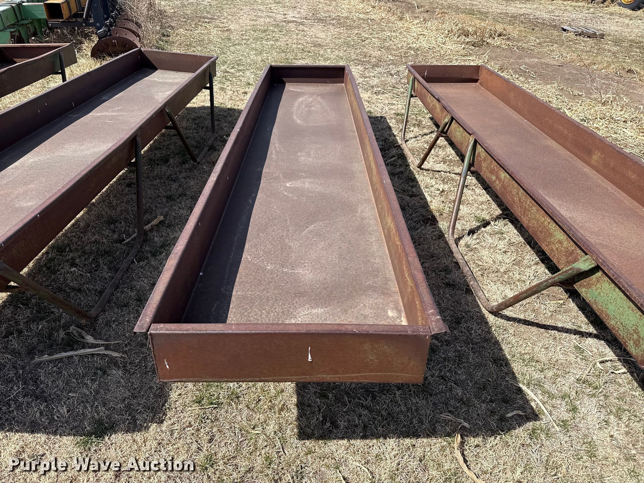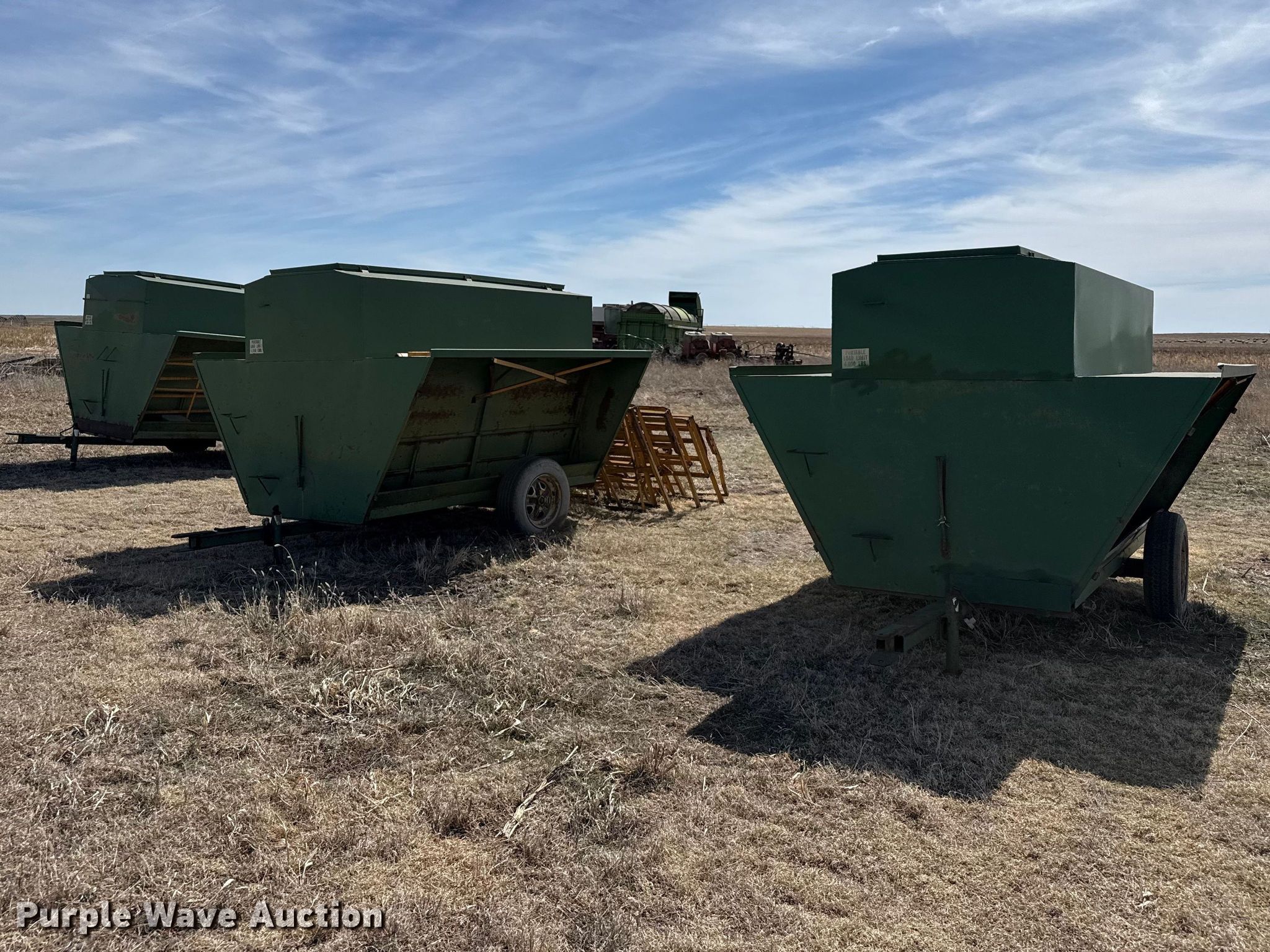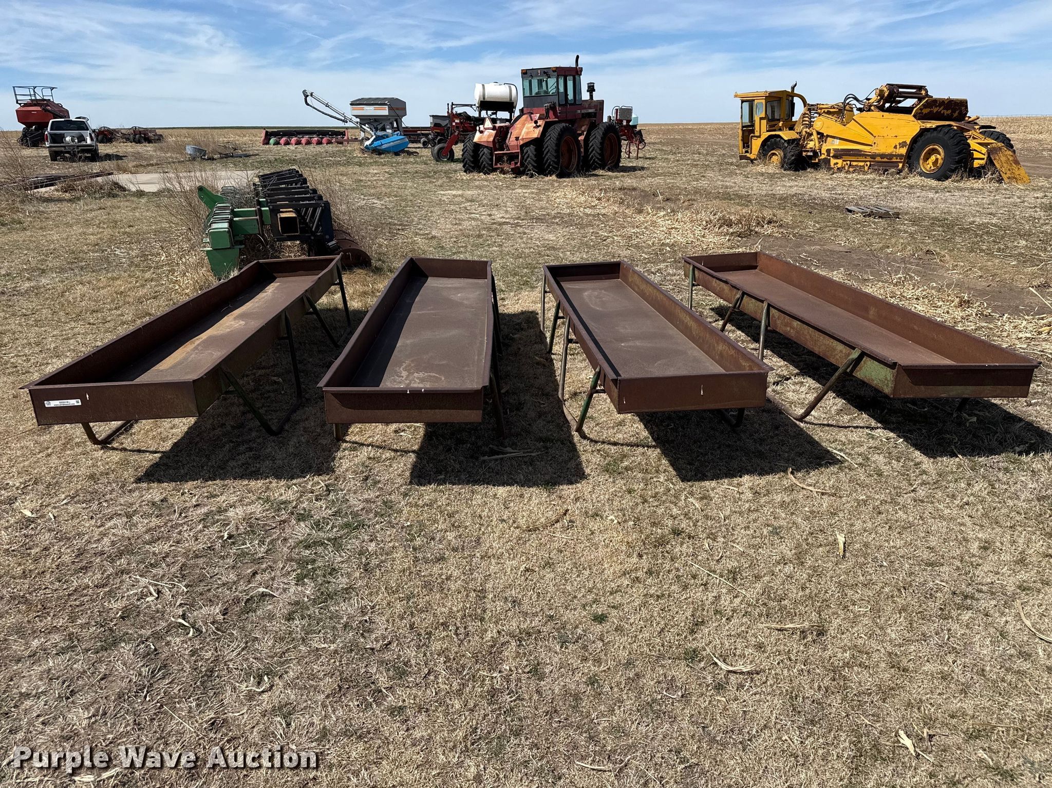 Purple Wave is selling a used Livestock Equip. in Kansas. This item is a Livestock feeders with the following: (3) portable livestock feeders, (4) feed bunks