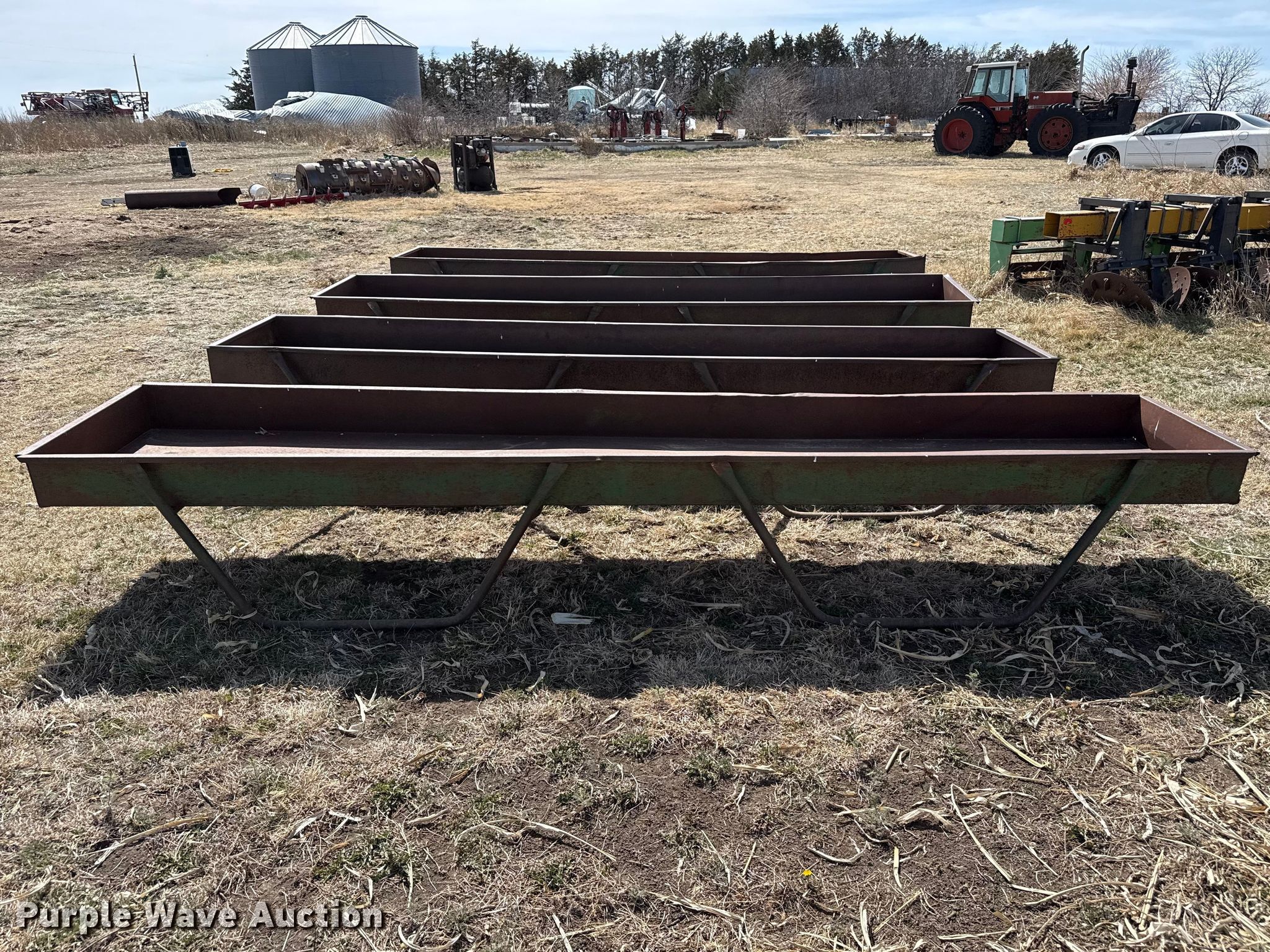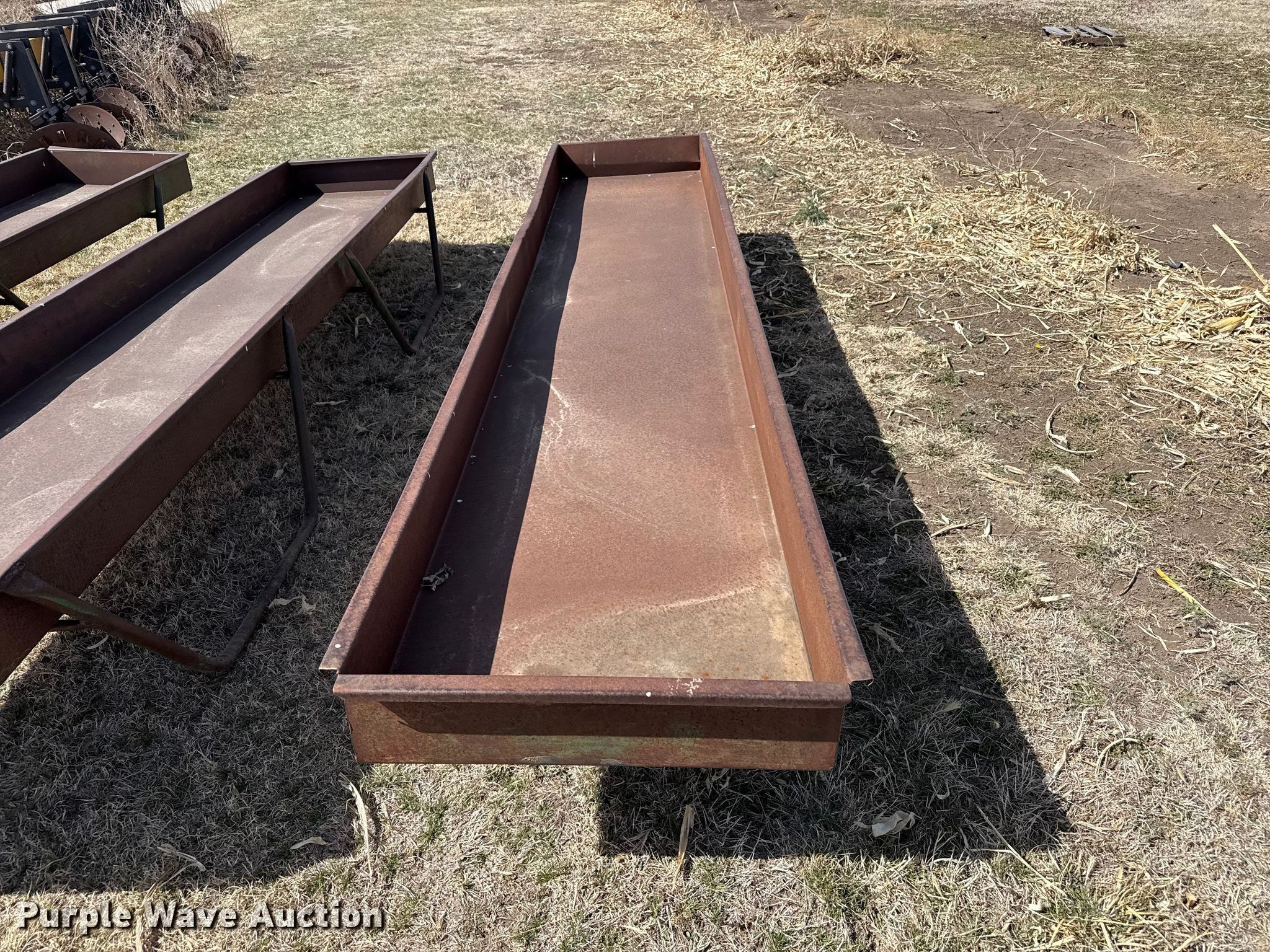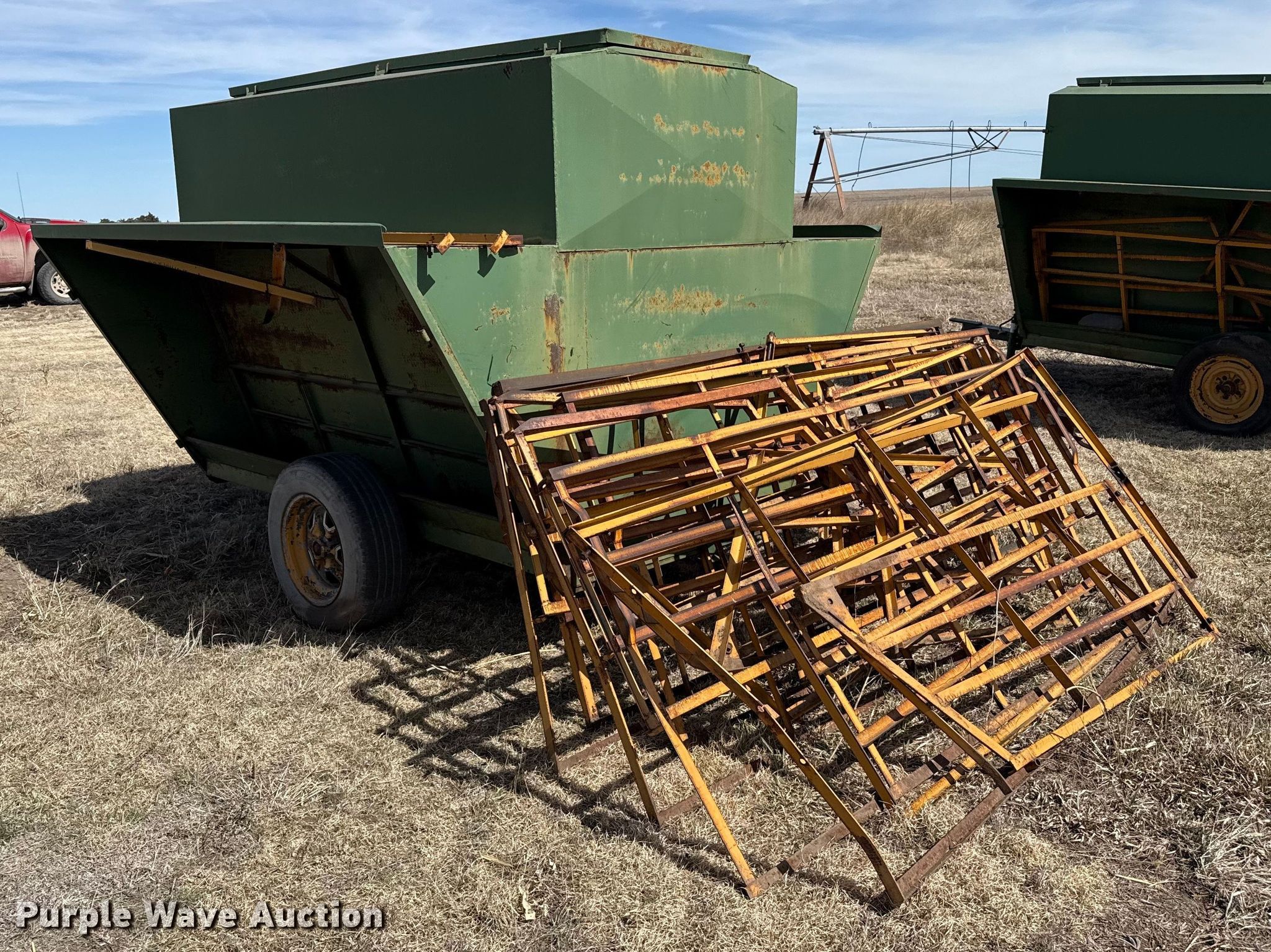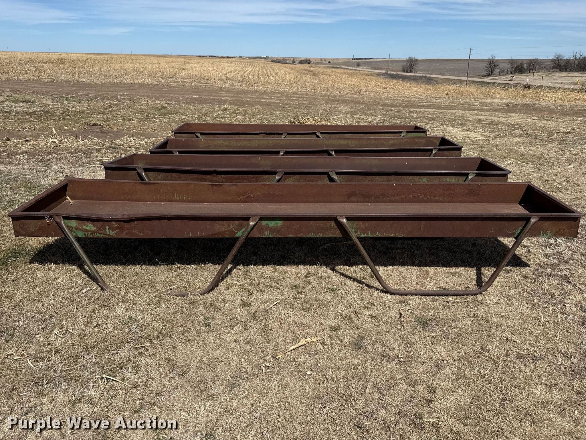 Purple Wave is selling a used Livestock Equip. in Kansas. This item is a Livestock feeders with the following: (3) portable livestock feeders, (4) feed bunks