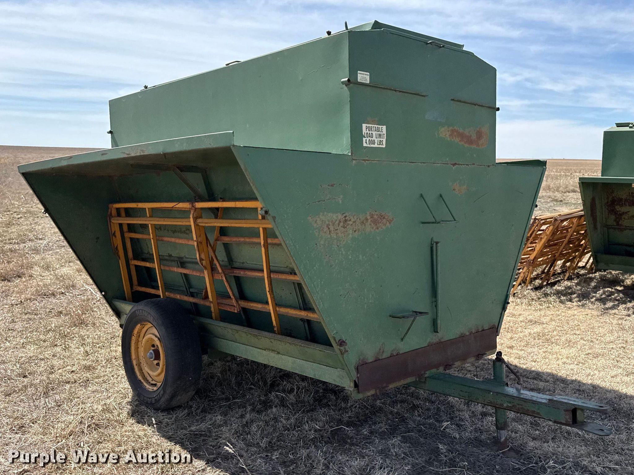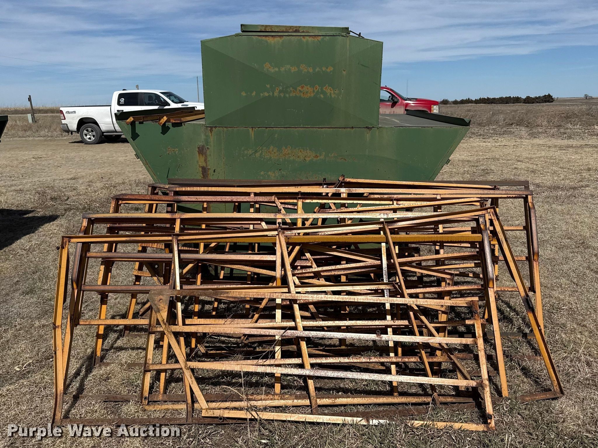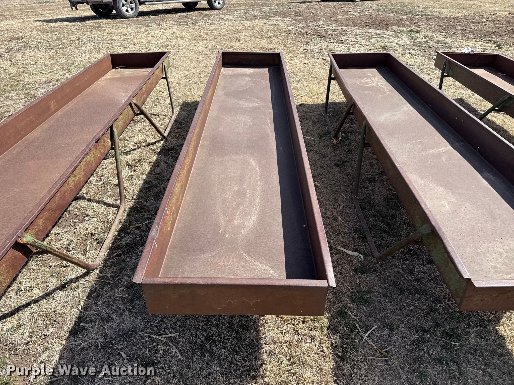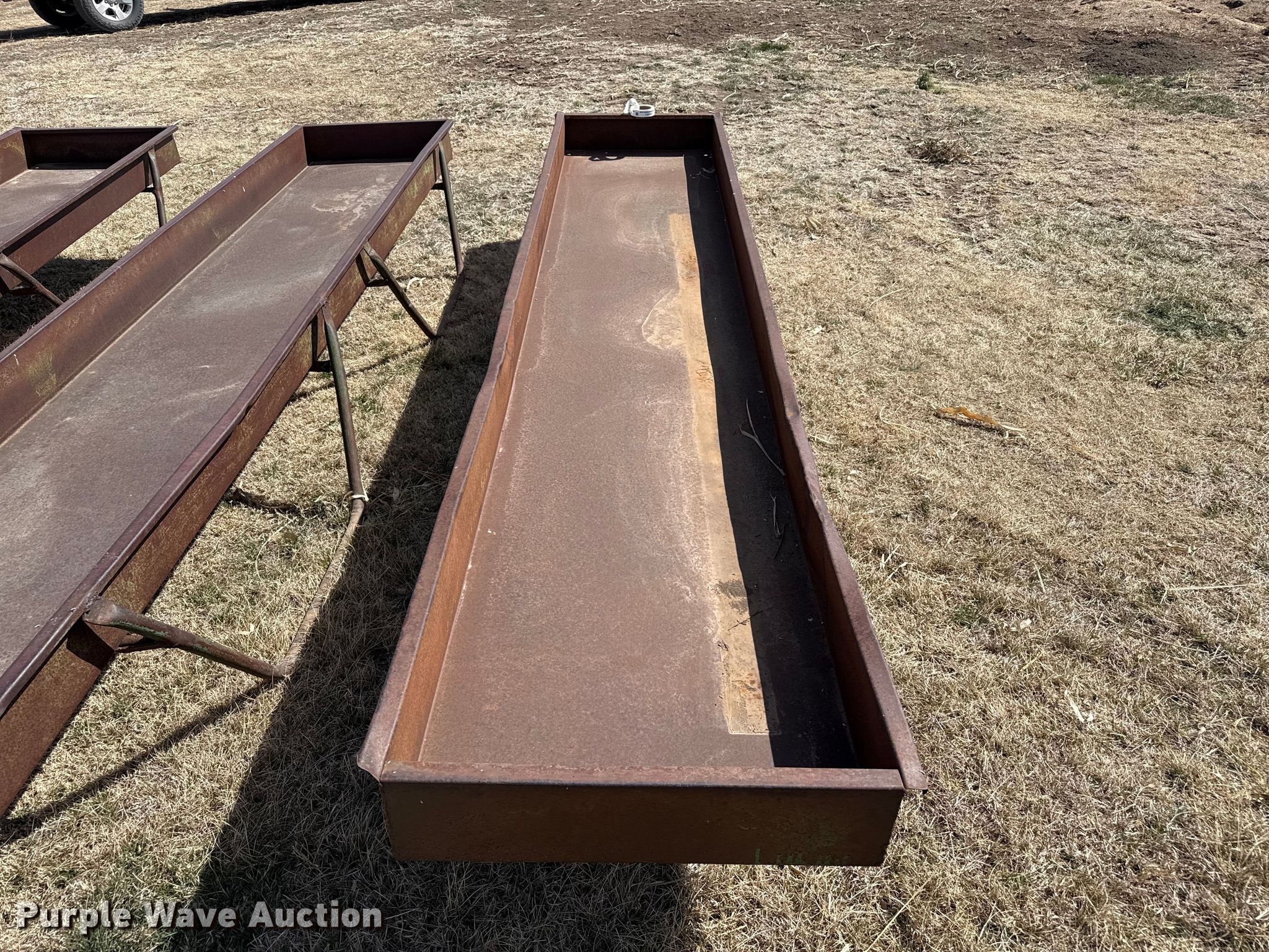 Purple Wave is selling a used Livestock Equip. in Kansas. This item is a Livestock feeders with the following: (3) portable livestock feeders, (4) feed bunks