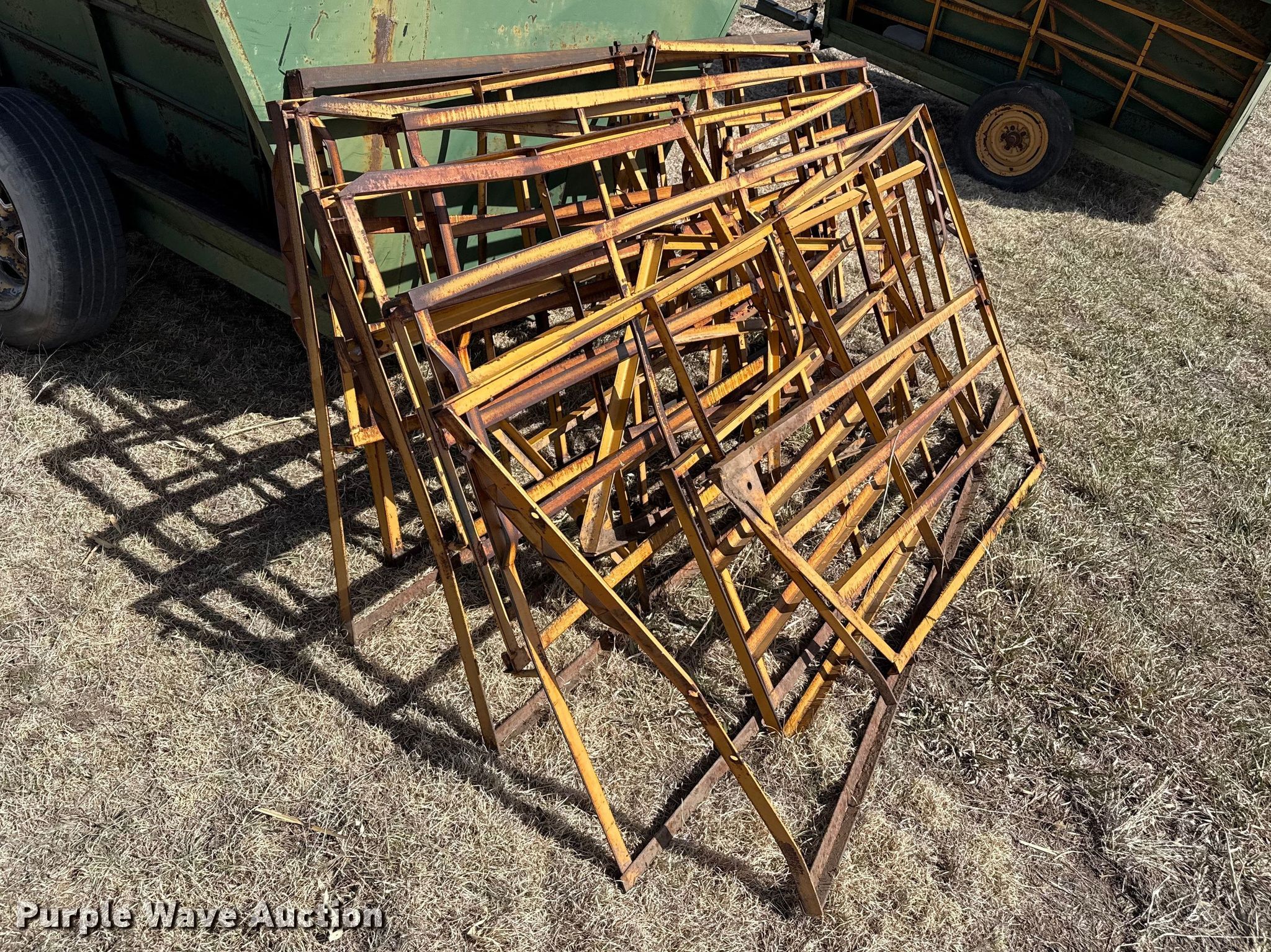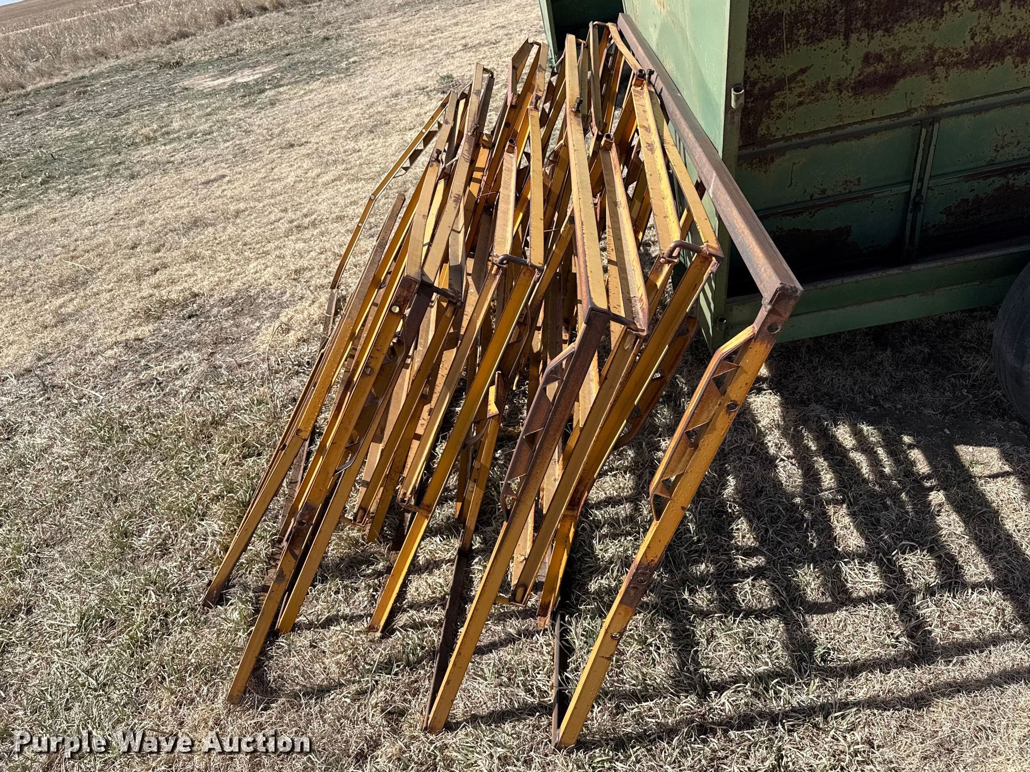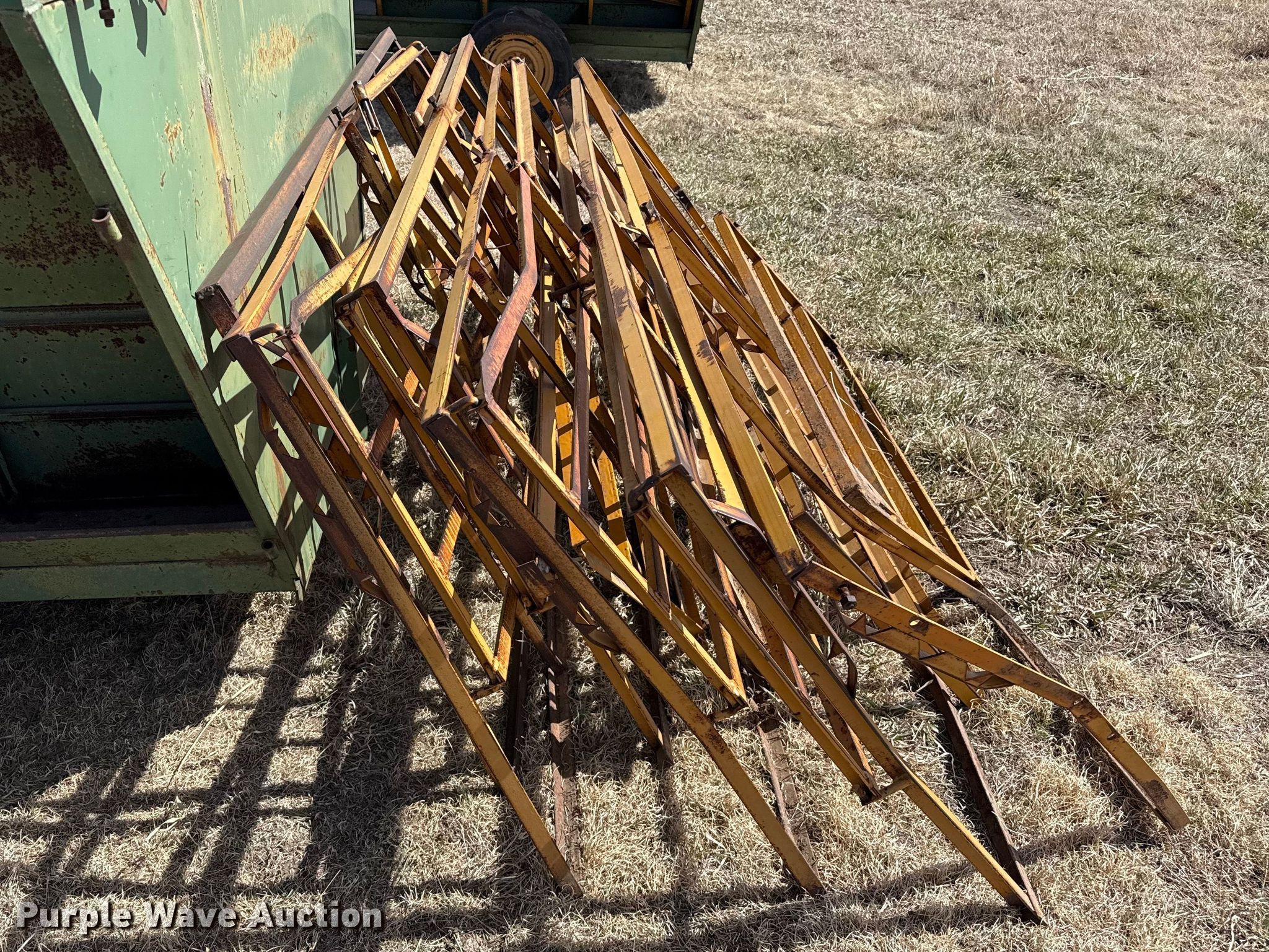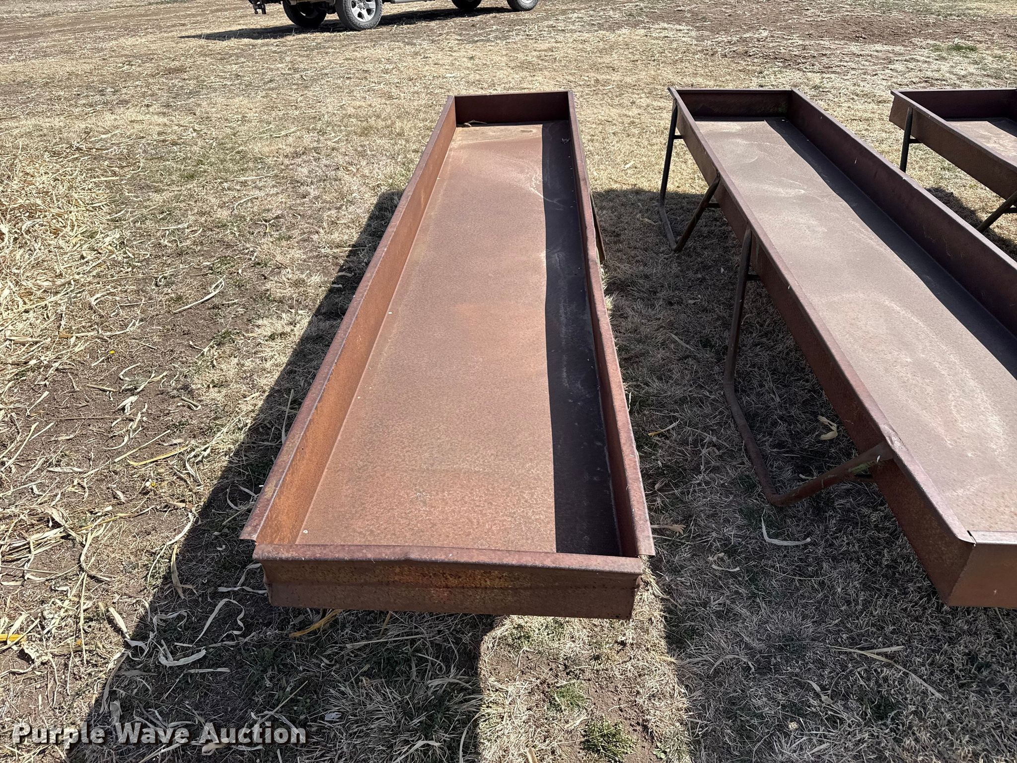 Purple Wave is selling a used Livestock Equip. in Kansas. This item is a Livestock feeders with the following: (3) portable livestock feeders, (4) feed bunks
