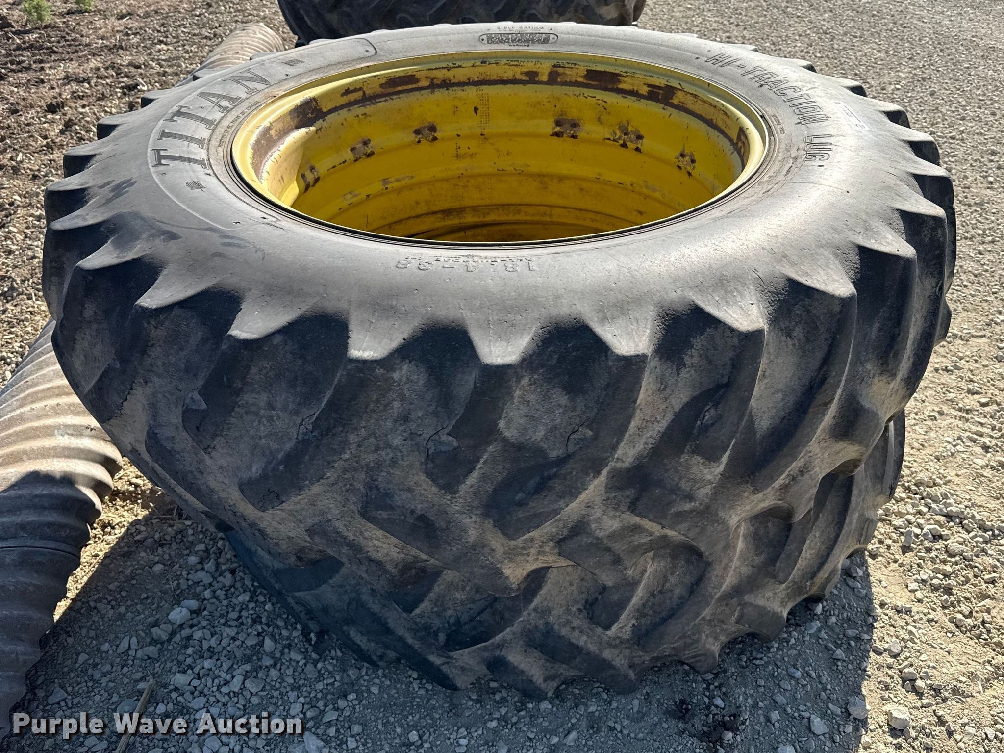 Purple Wave is selling a used Industrial Tires or Tracks in Kansas. This item is a (2) 18.4-38 tires and wheels with the following: (2) 18.4-38 tires and wheels. Greensburg, KS 67054