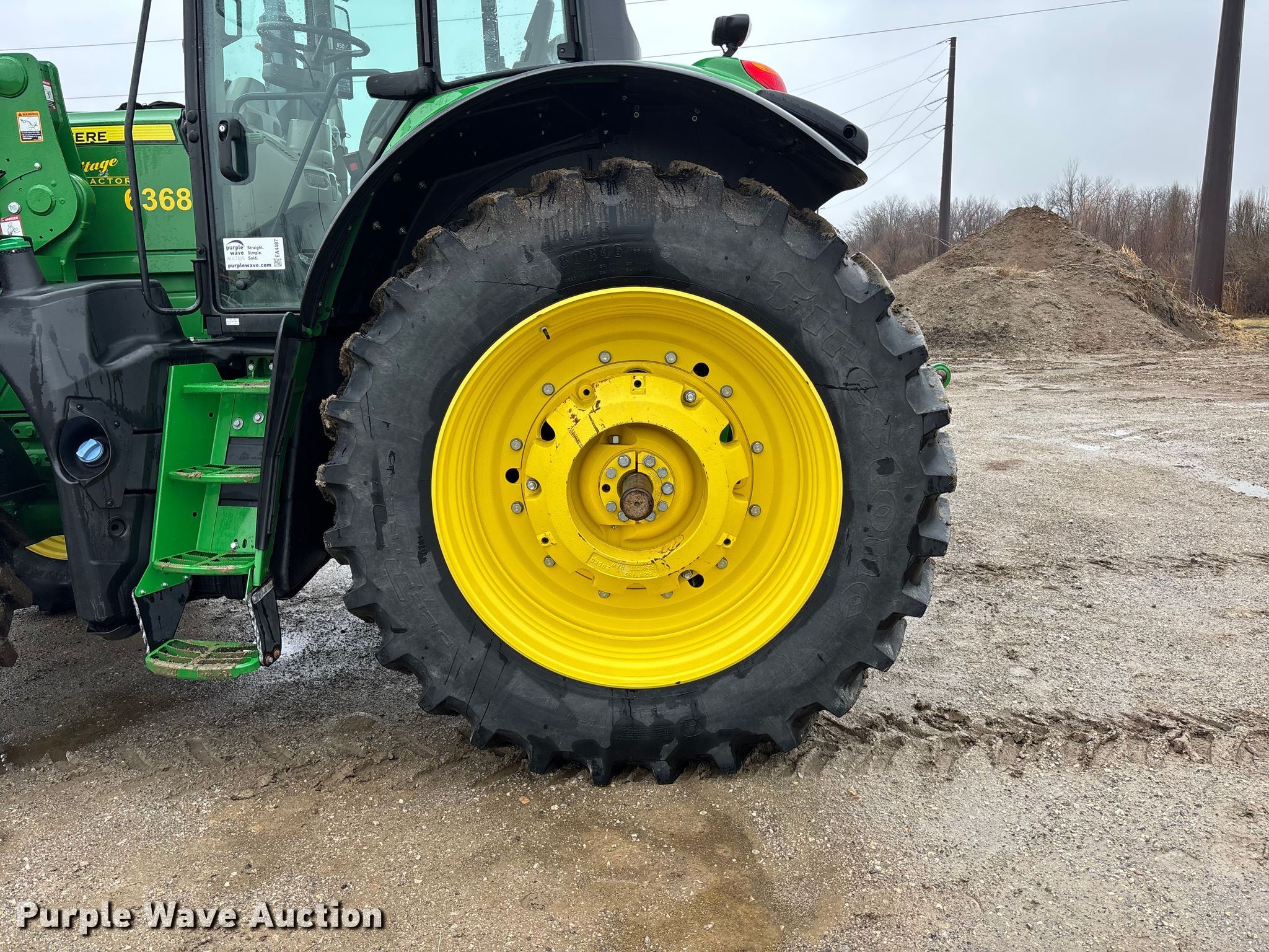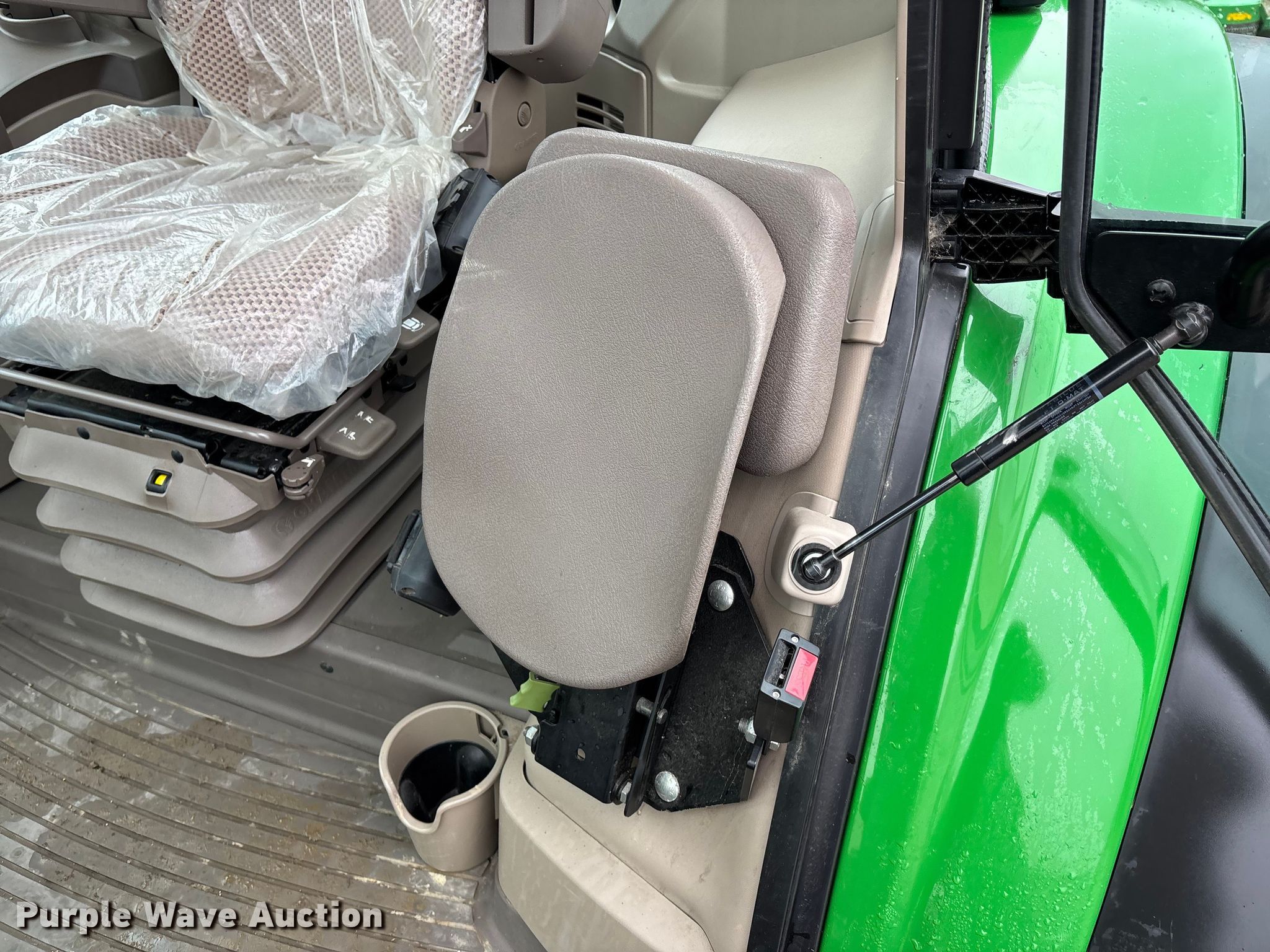 2021 John Deere 6195M MFWD tractor. Hours: 551 on meter, Serial: 1L06195MCMK106368. Engine John Deere PowerTech, Displacement: 6.8L, Cylinders: 6, Fuel type: Diesel. Transmission Powershift, 20F - 20R, Left-hand reverser, Differential lock. Operators station AC, Heat, Auto steer. Features PTO: 540, Three point, Seven pin outlet, ISOBUS outlet, Hydraulic remote sets Rear: 4, Loader John Deere 680R, Quick attach, Self-leveling, Controls: Joystick, Bucket Width: 98".. Tires Front: 420/85R30, Rear: 480/80R46, Wheel weights: 2. Chris Shipley Excavating. Kearney, MO 64060