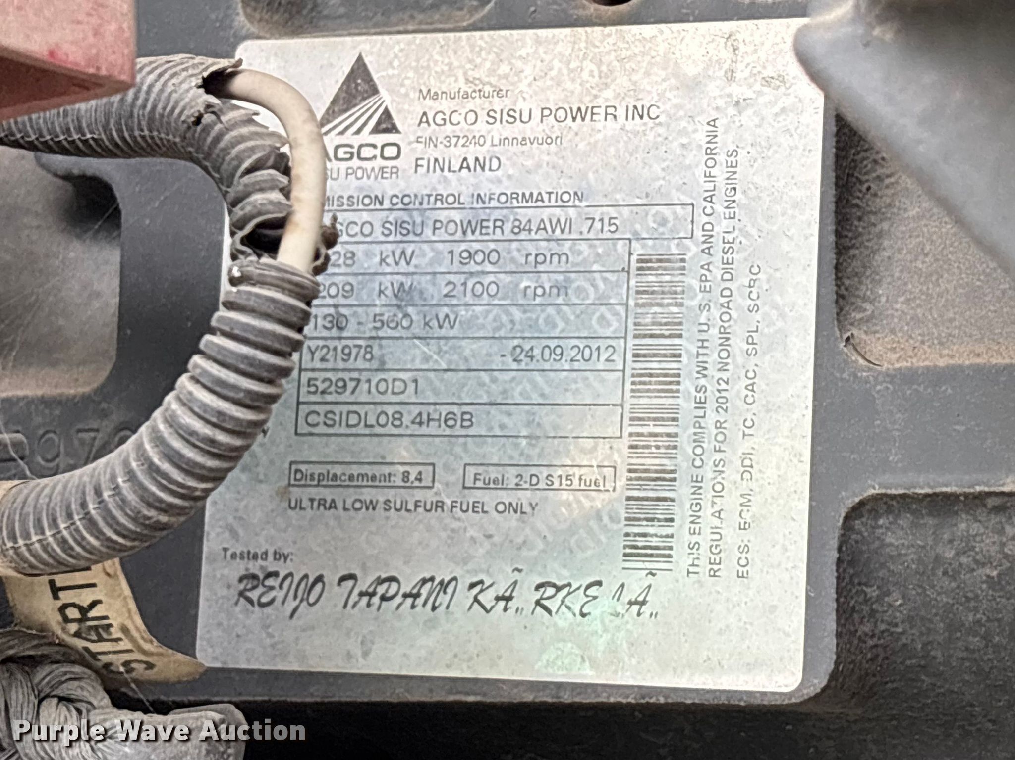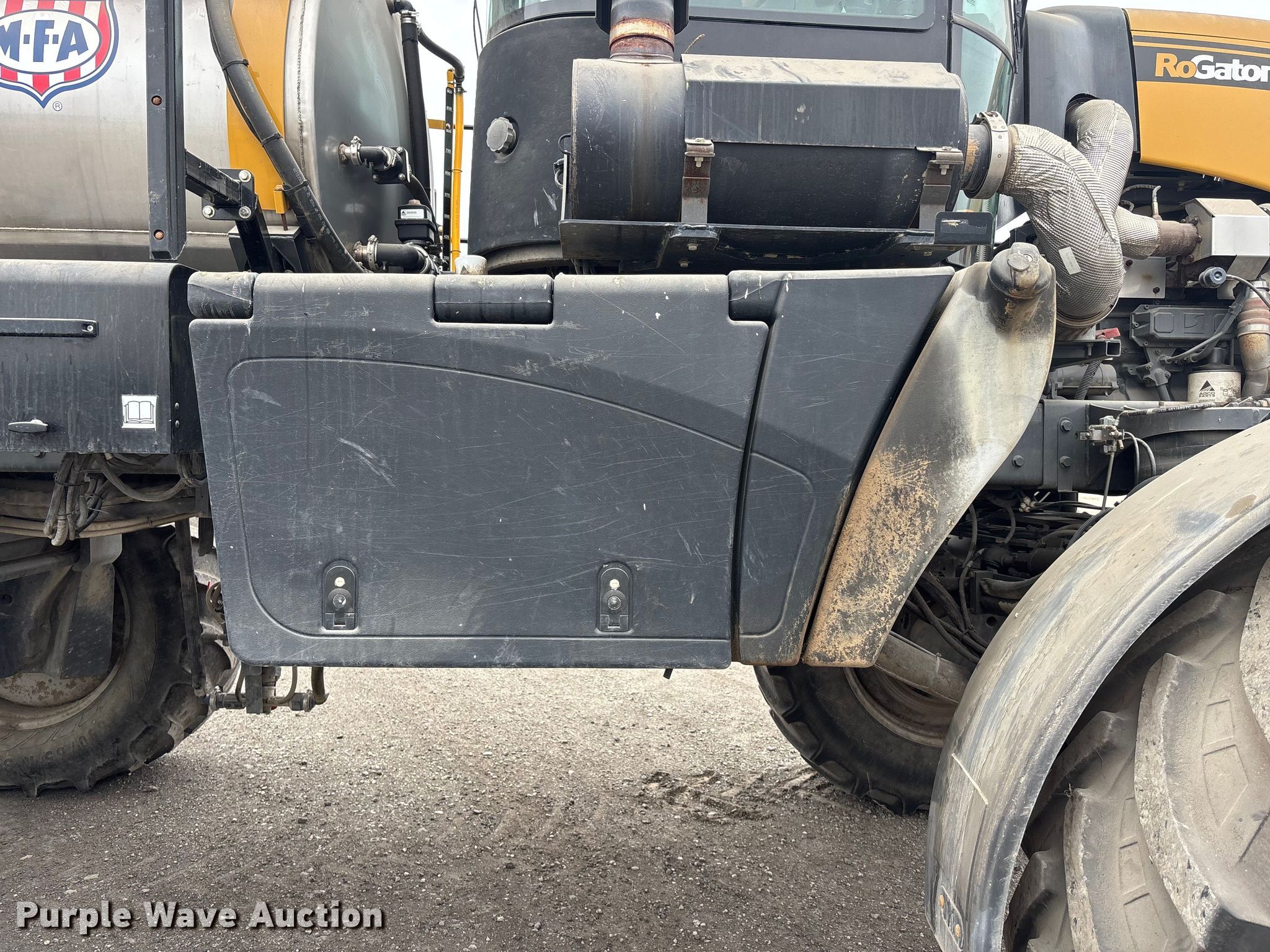2013 AGGO RoGator 900 sprayer. Engine hours: 4,412 on meter, Serial: AGCA0900PDNSL1039. Engine AGGO, Displacement: 8.4L, Cylinders: 6, Fuel type: Diesel. Transmission Hydrostatic, Four wheel drive. Chassis Hydraulic axle width adjust. Operators station AC, Heat. Features Hydraulic ladder, Solution tank Capacity: 900 gallons, Type: Stainless Steel, Front fill, Chemical eductor Type: Poly, Rinse tank, Boom Hydraulic boom fold, Hydraulic height control, Nozzle Nozzle bodies: 3-way, Electronics GPS monitor Ag Leader, GPS receiver Ag Leader.. Tires Size: 650/65R38, Row crop tires. Transfer of ownership documentation will be a bill of sale. MFA Inc. Concordia, MO 64020