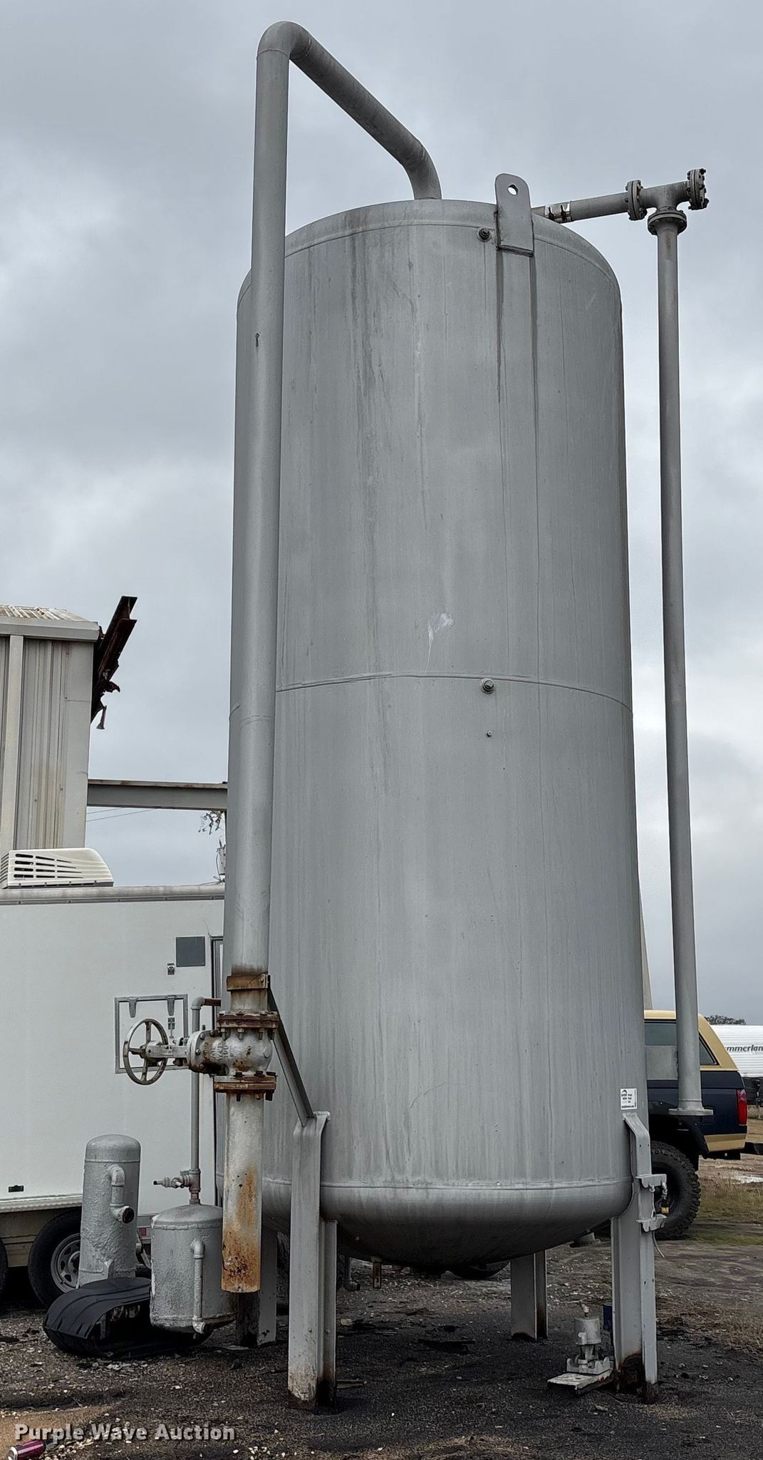 Purple Wave is selling a used Tanks in Texas. This item is a Tank with the following: Approx. dimensions: 25' H x 8' W, Pipe diameter: 4", Unknown operating condition