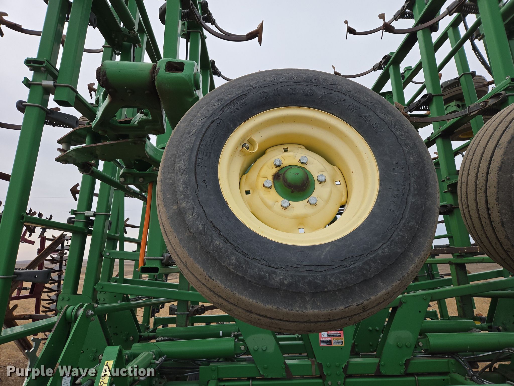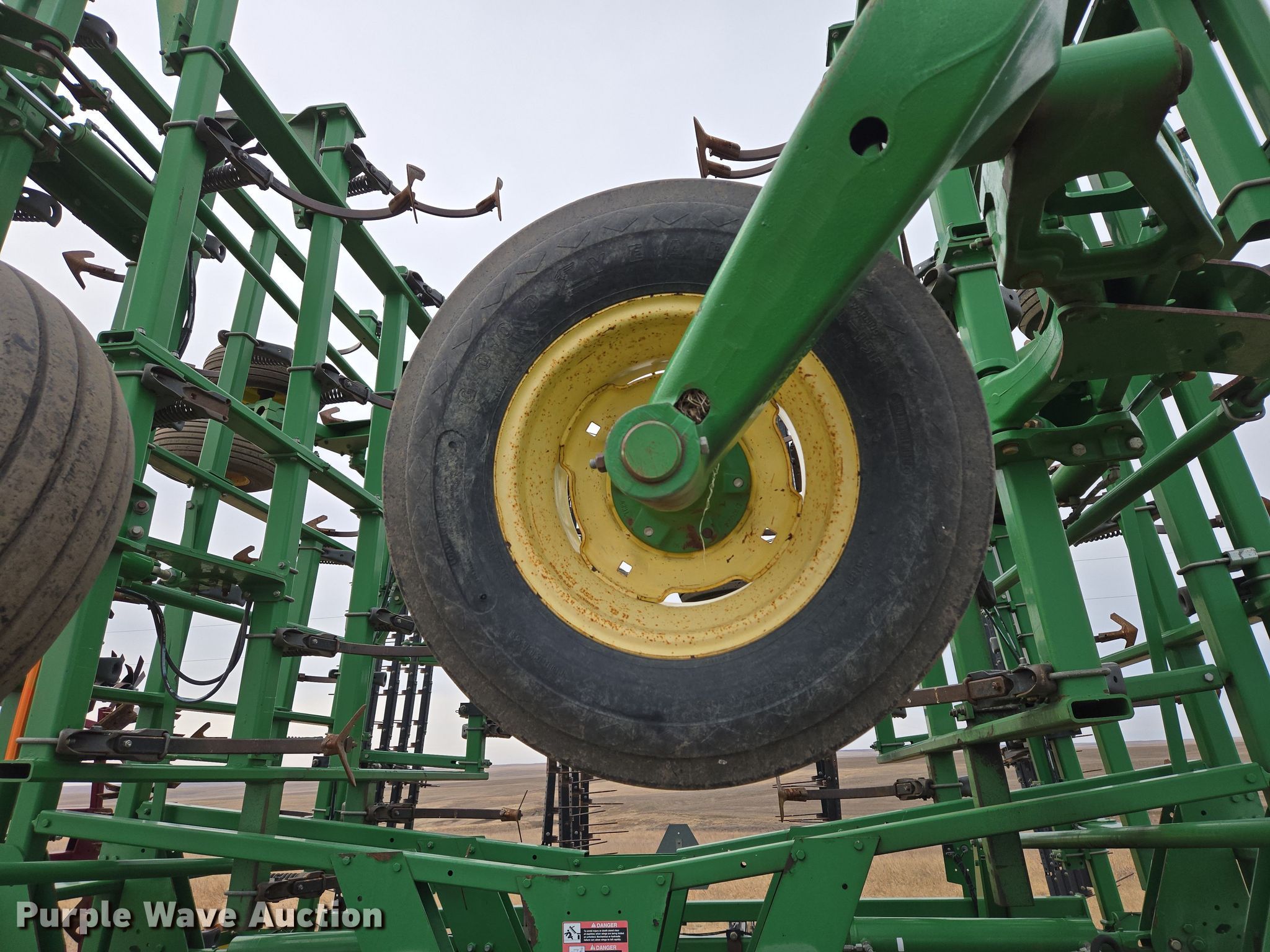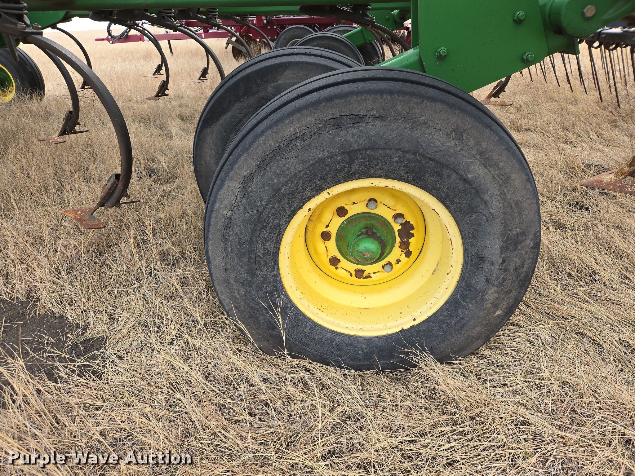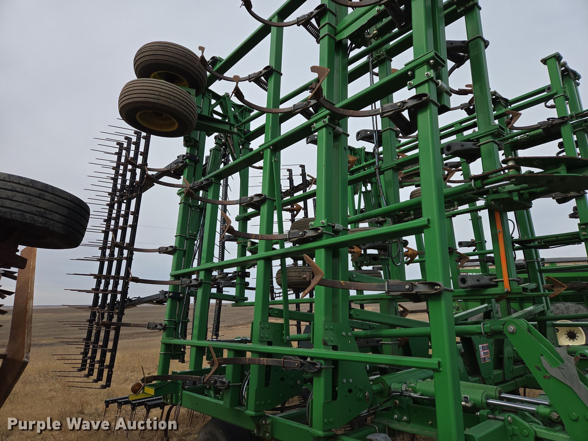 2012 John Deere 2210 field cultivator. Overall width: 59' 2", Serial: 1N02210XPC0745554. Features Shanks: 84, Sweep width: 9", Operation Hydraulic lift, Hydraulic fold, Leveler: Hydraulic, Walking tandem axle, Attachments Tine harrow Harrow bars: 4, Transport lights. Tires Tire size: 12.5-15. Gunsmoke Farms. Fort Pierre, SD 57532