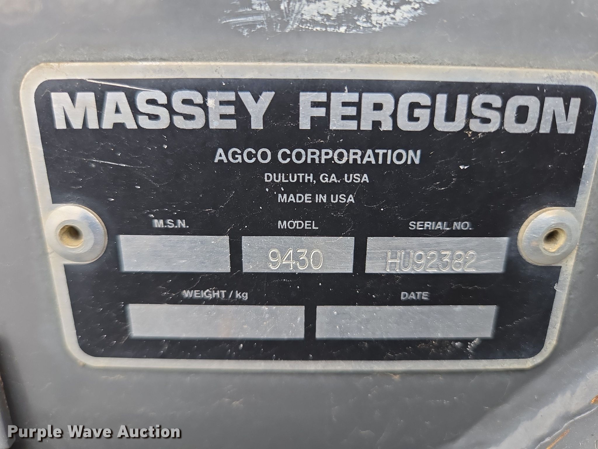 Purple Wave is selling a used Windrower Self Propelled in South Dakota. This item is a 2009 Massey Ferguson 9430 swather / windrower with the following: Engine hours: 2,202 on meter, Serial: HU92382