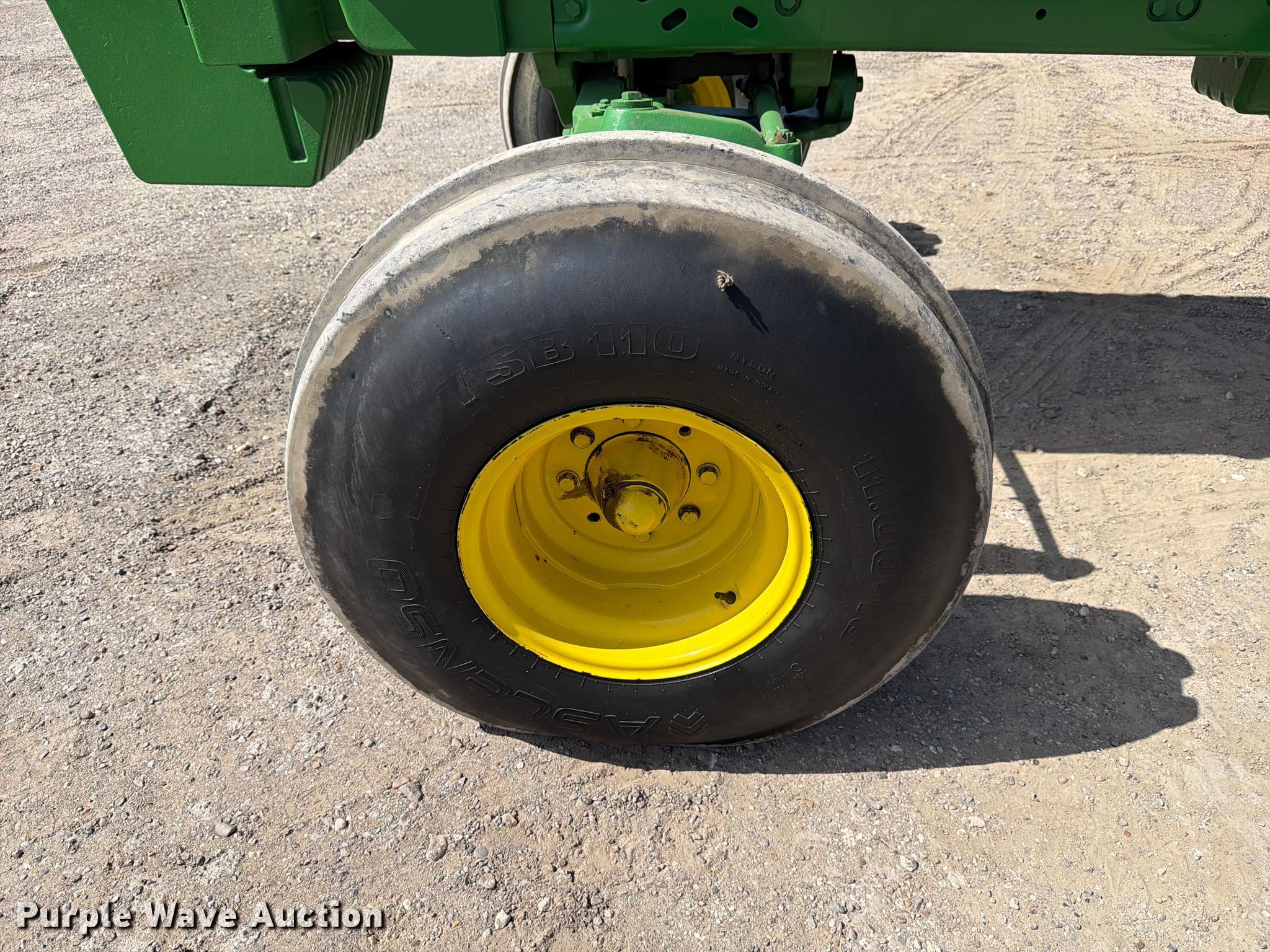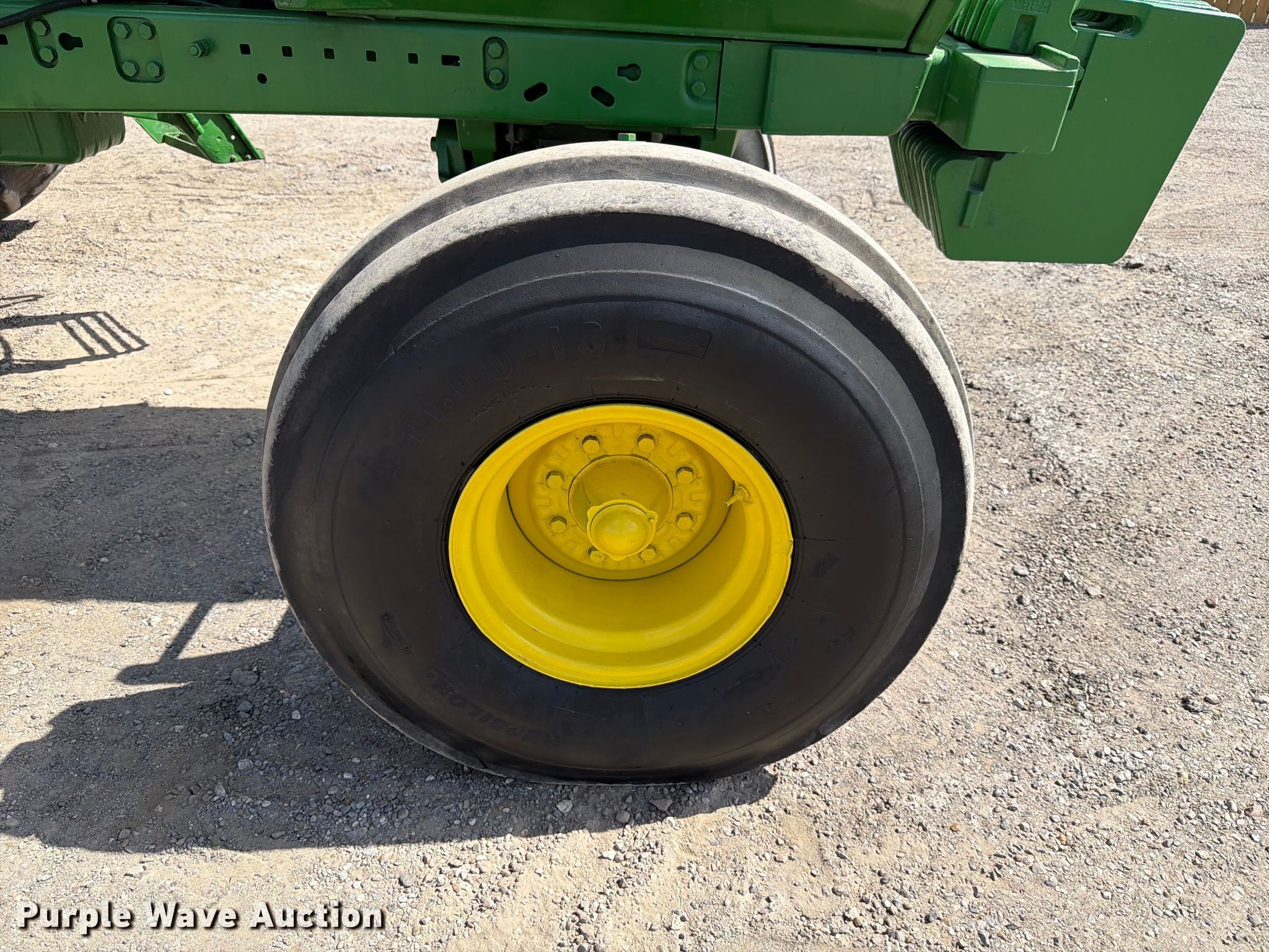 1992 John Deere 4760 tractor. Hours: Unknown, Serial: RW4760H002328. Engine John Deere 6076T, Displacement: 7.6L, Cylinders: 6, Fuel type: Diesel. Transmission Quad-range, 16F - 6R, Differential lock. Operators station AC, Heat. Features PTO: 1 3/4" 1000, Three point, Seven pin outlet, Hydraulic remote sets Rear: 3, Suitcase weights: 12. Tires Front: 11.00-16, Rear: 18.4R42, Wheel weights: 6, Duals. Notes Jump start required during on-site data collection, Non-operational dash cluster. Heduma, LLC. Brownsville, TX 78520
