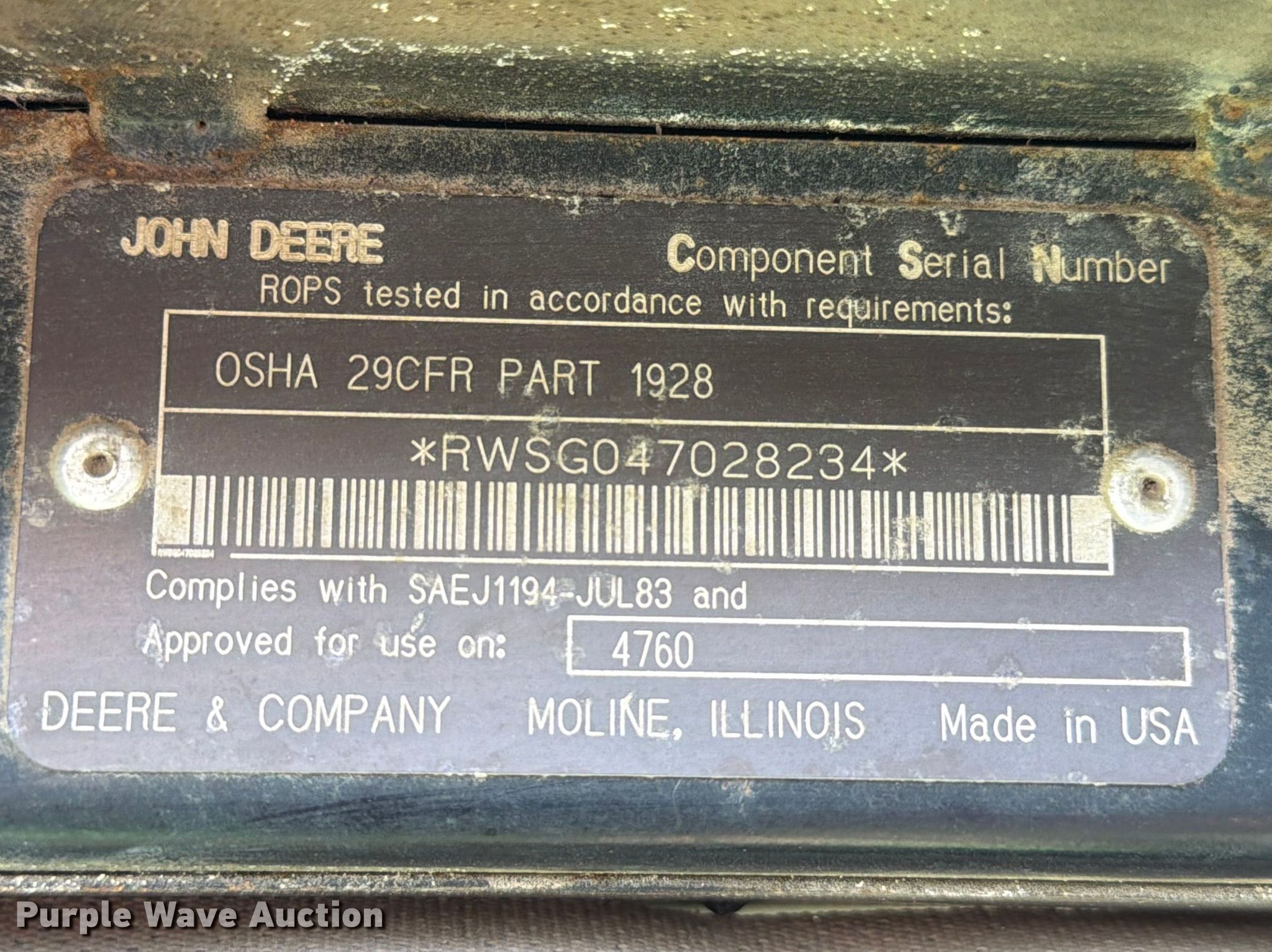 Purple Wave is selling a used Tractor in Texas. This item is a 1993 John Deere 4760 tractor with the following: Hours: 4,063 on meter, Serial: RW4760H0003431