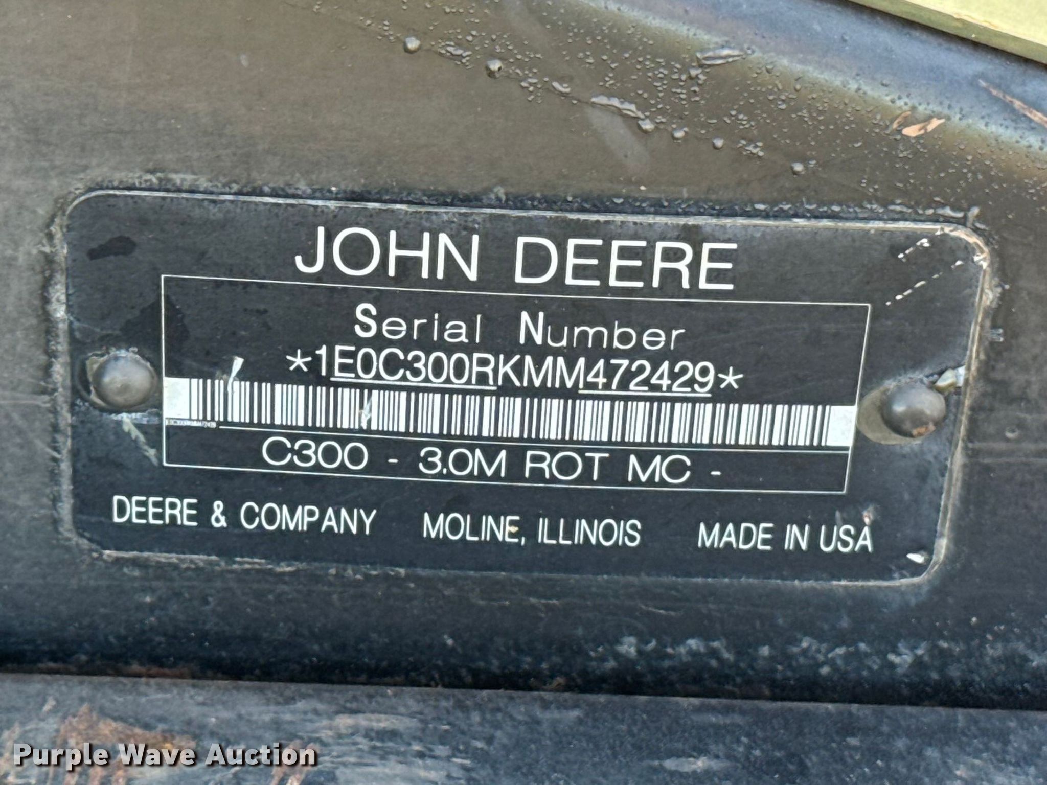 Purple Wave is selling a used Windrower Pull Type in Oklahoma. This item is a 2021 John Deere C300 - 3.0M ROT MC swather / windrower with the following: Serial: 1E0C300RKMM472429, Insurance Claim #: 6-800074