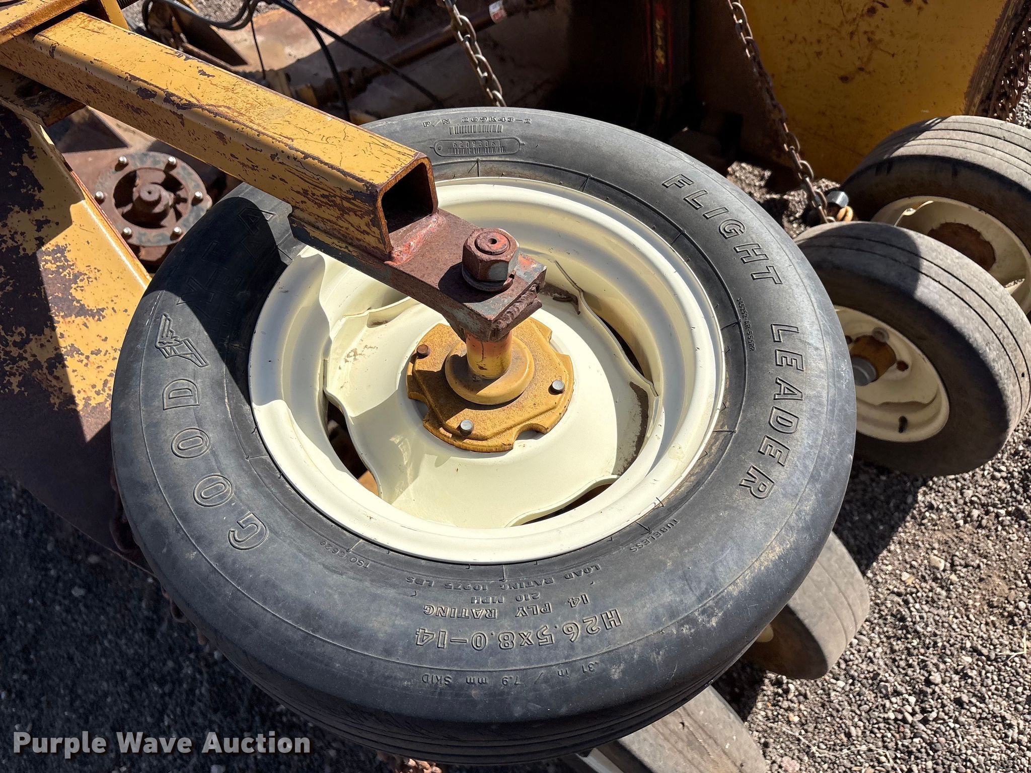 Batwing rotary mower. Features. Width: 15', Hydraulic lift, Hydraulic fold. Tires Size: h26.5X9.0-14. Notes PTO half shaft missing, Unknown operating condition. Amarillo, TX 79124