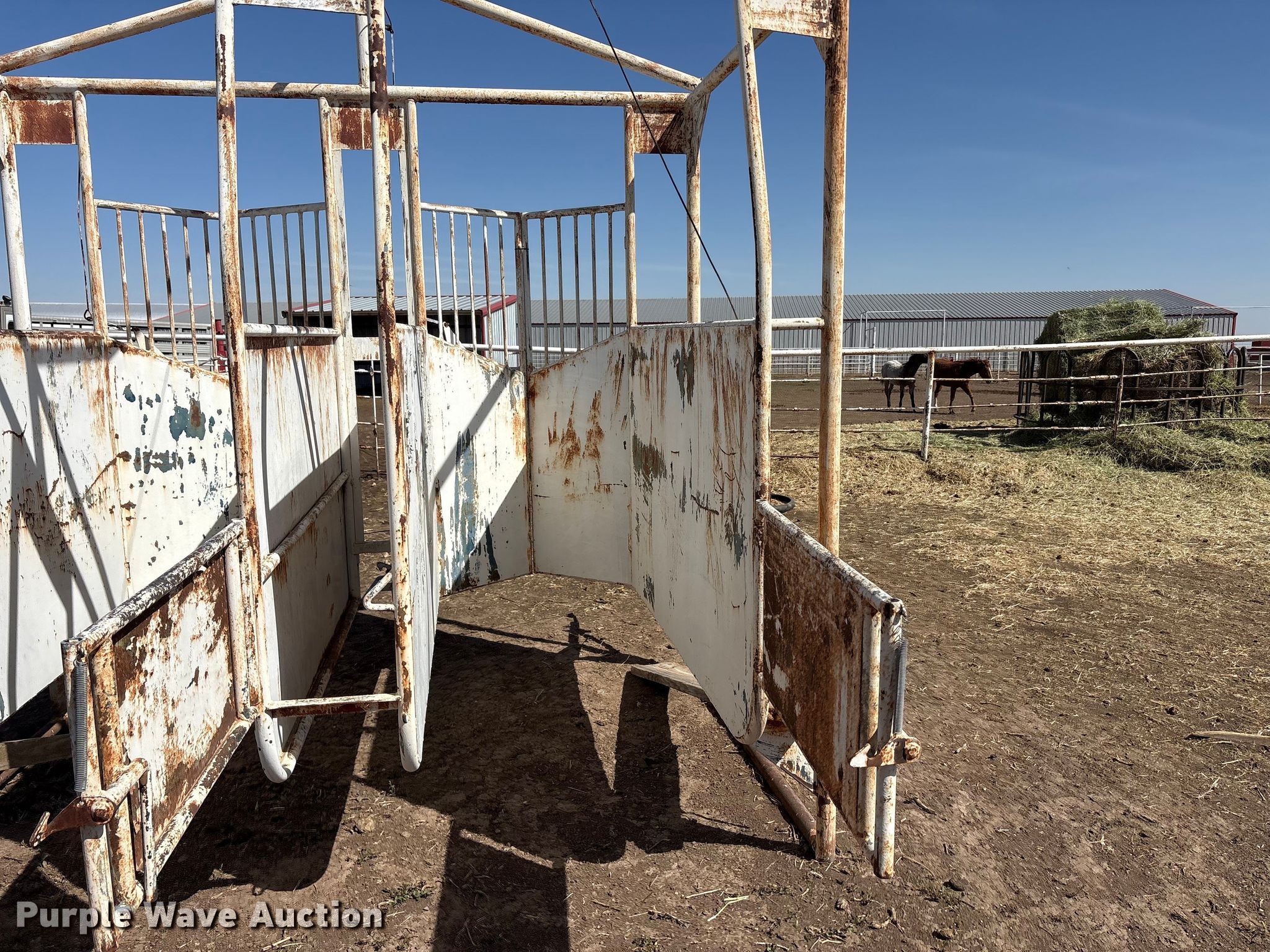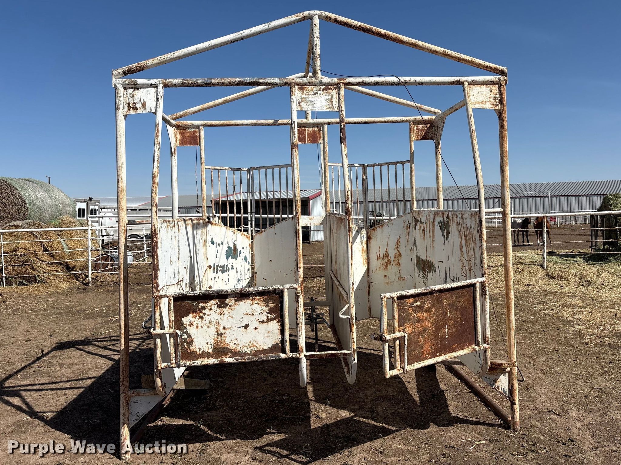 Purple Wave is selling a used Livestock Equip. in Texas. This item is a Horse racing stalls with the following: 102" L x 115" W x128" H, Stall width: 37", (2) doors