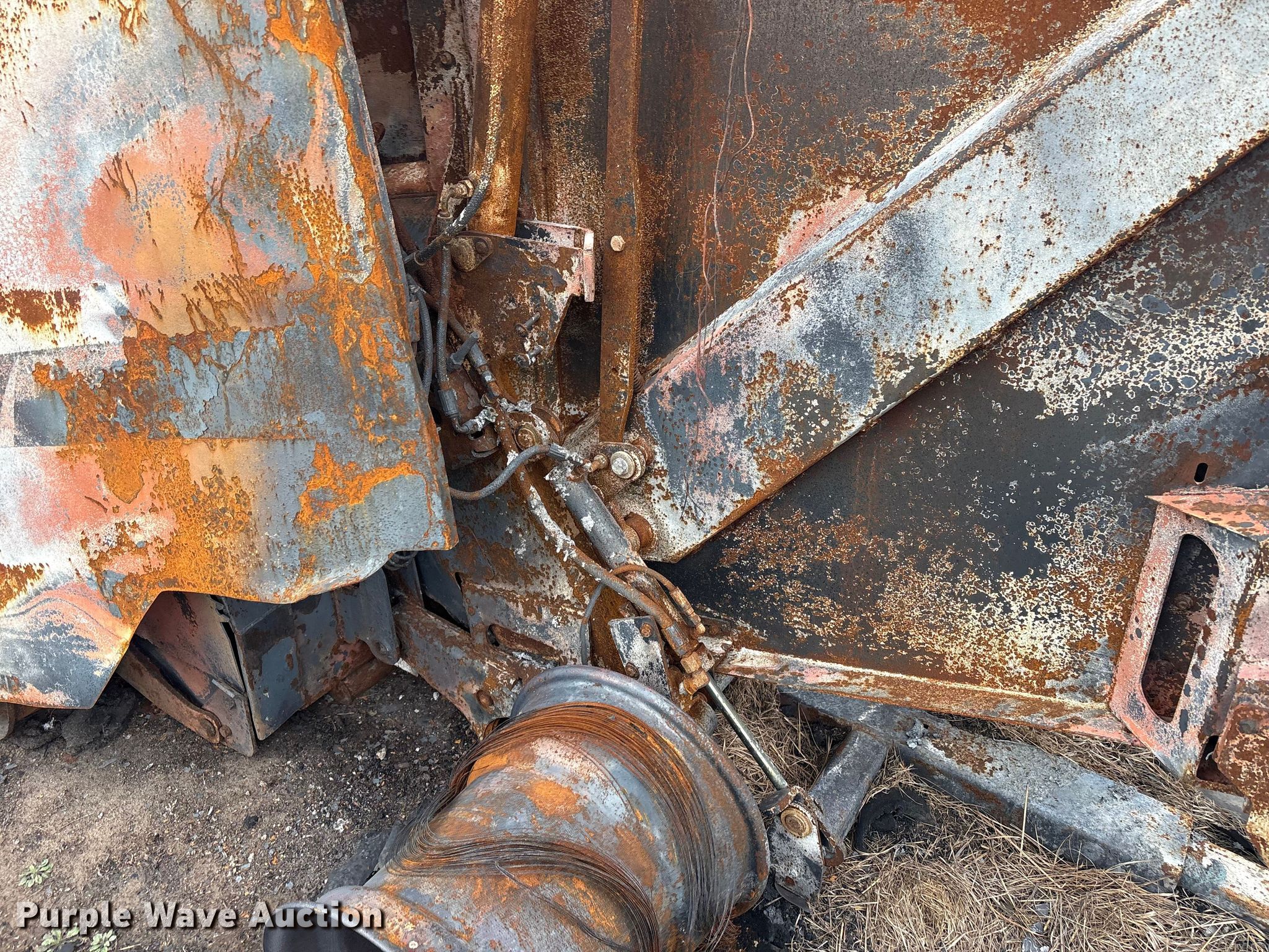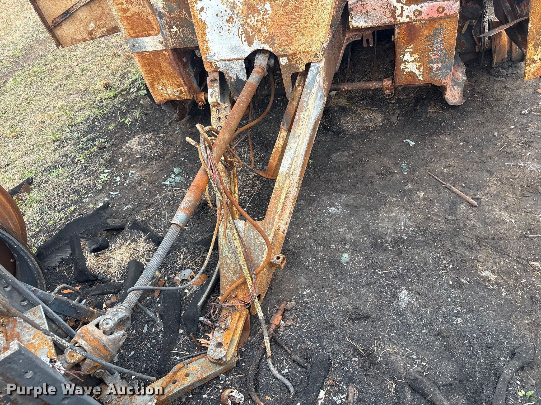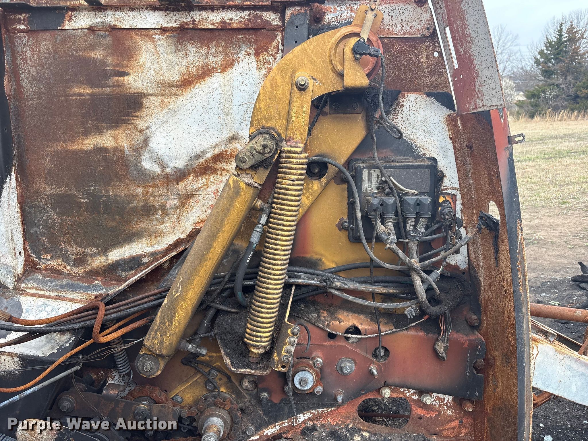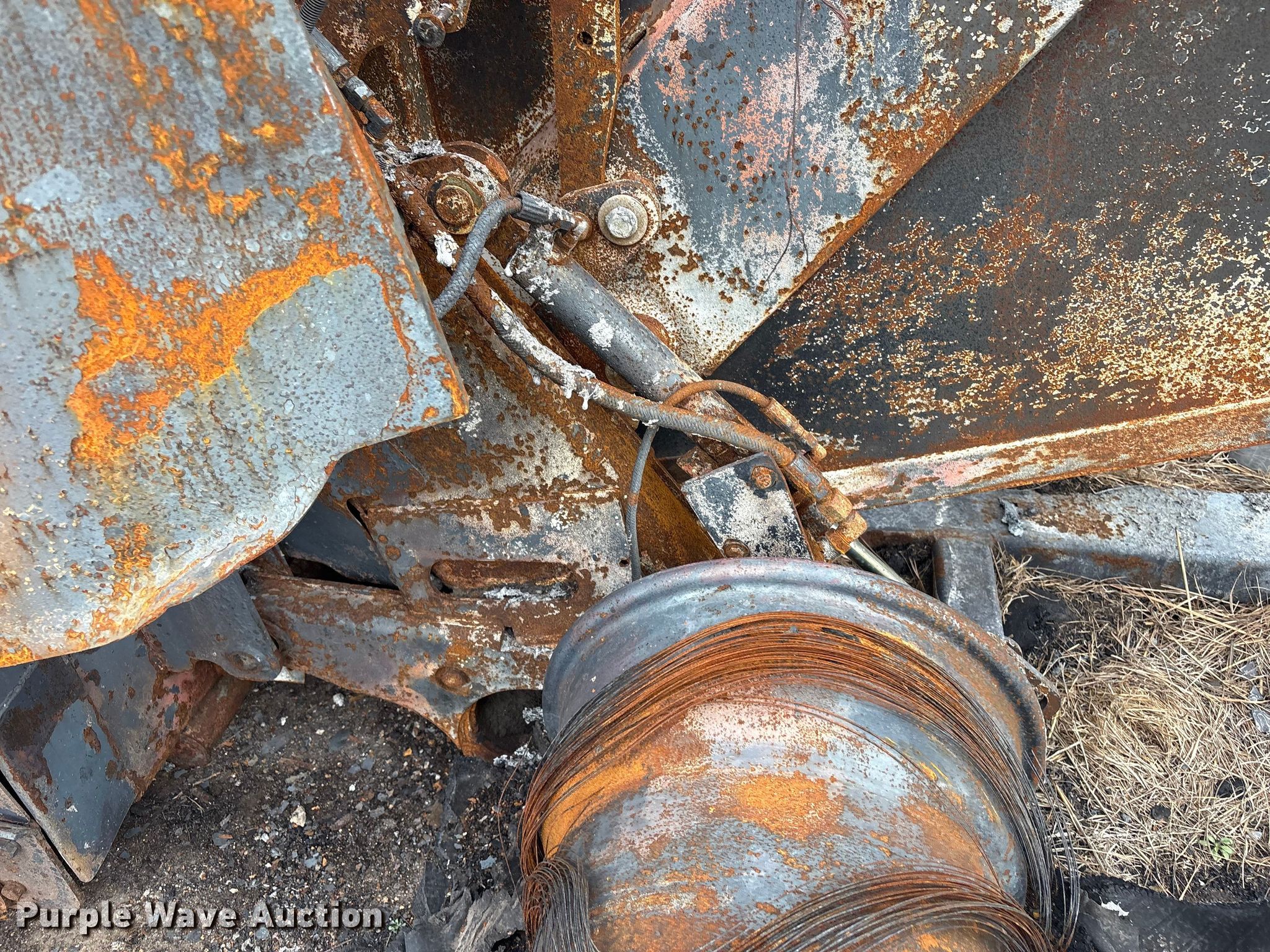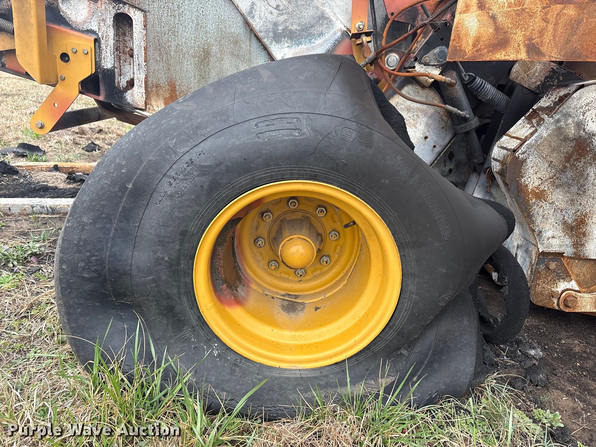 Vermeer round baler. Unit #: 5-814393. Features Gauge wheels, Pickup width: 66". Notes Burn damage, Non-operational unit. Oklahoma Farm Bureau Insurance. Bartlesville, OK 74006