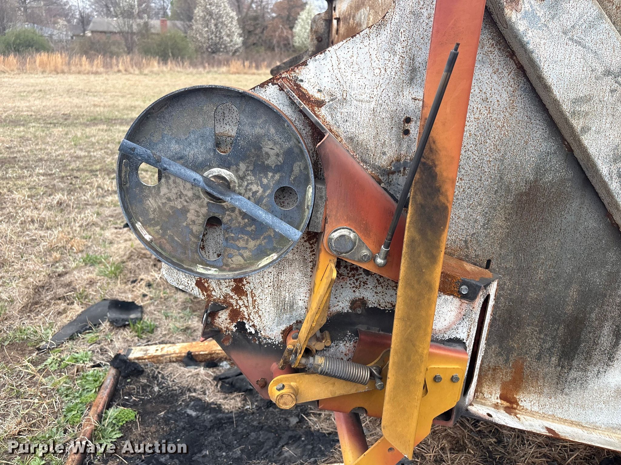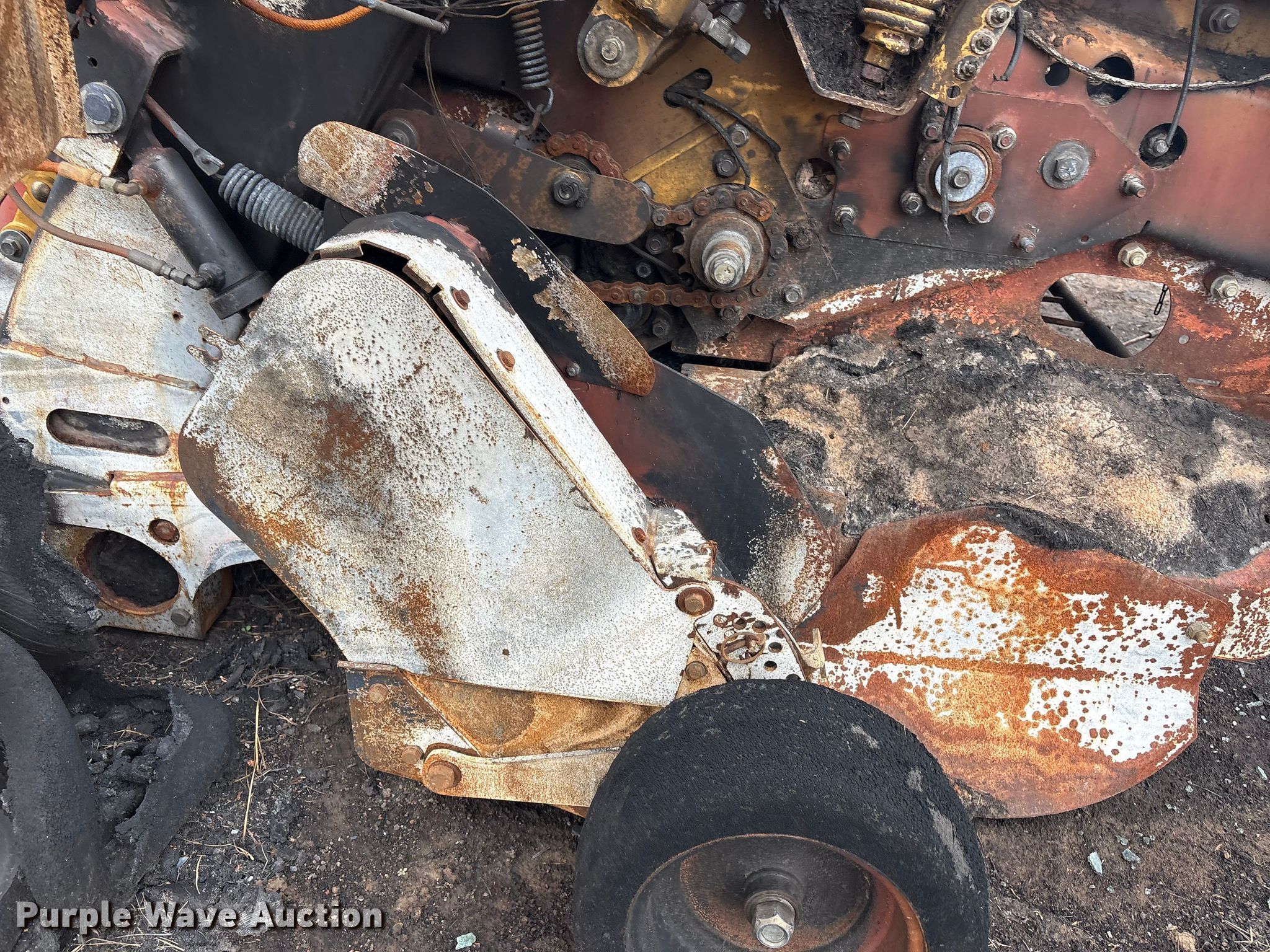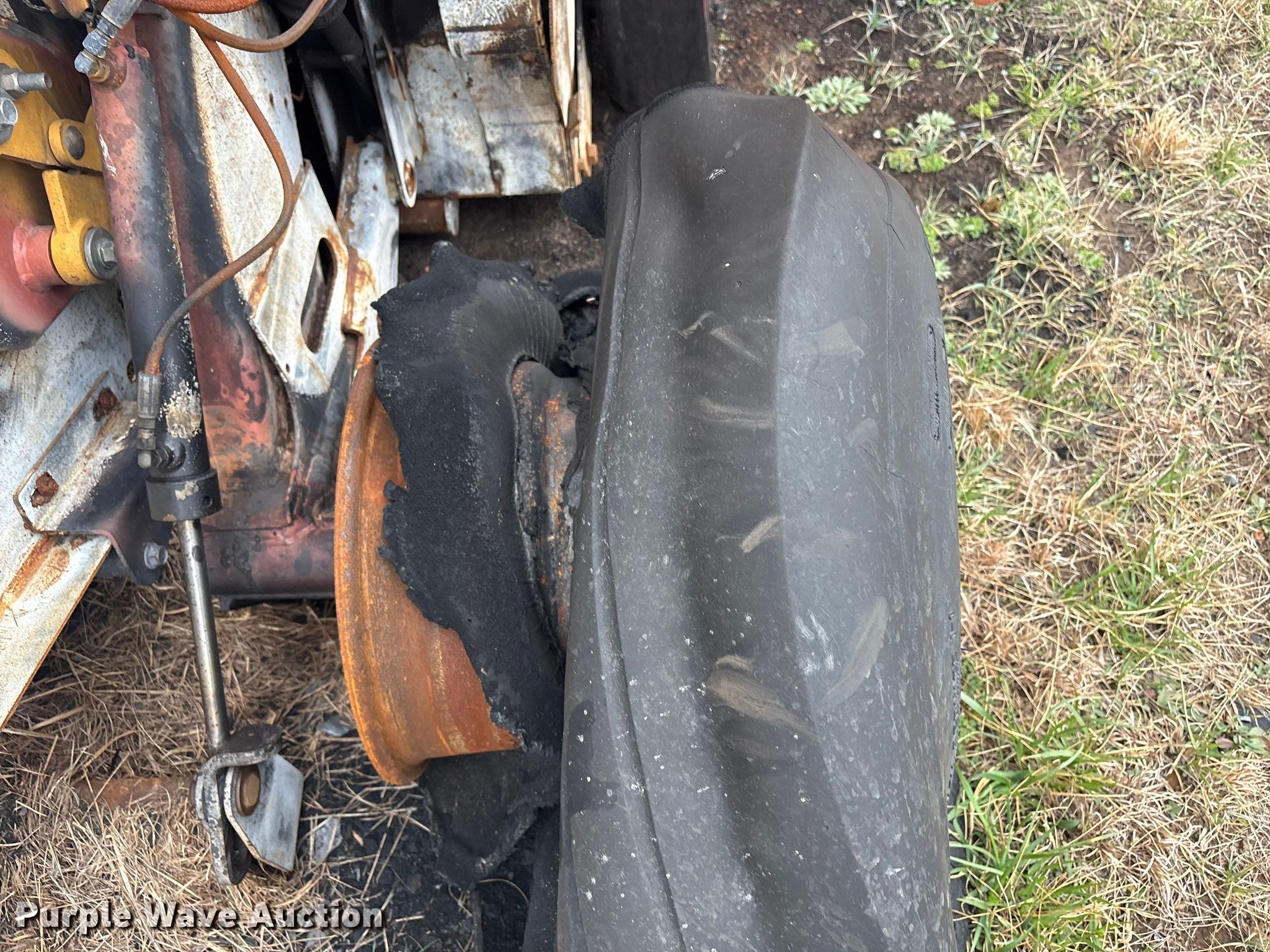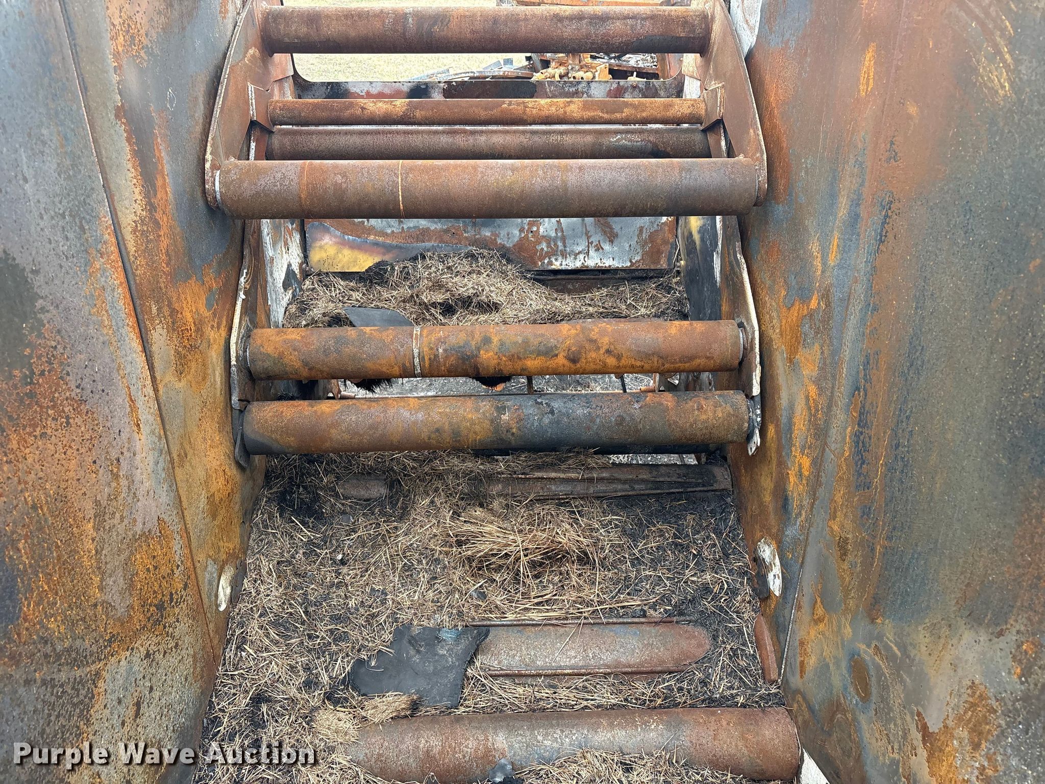 Vermeer round baler. Unit #: 5-814393. Features Gauge wheels, Pickup width: 66". Notes Burn damage, Non-operational unit. Oklahoma Farm Bureau Insurance. Bartlesville, OK 74006
