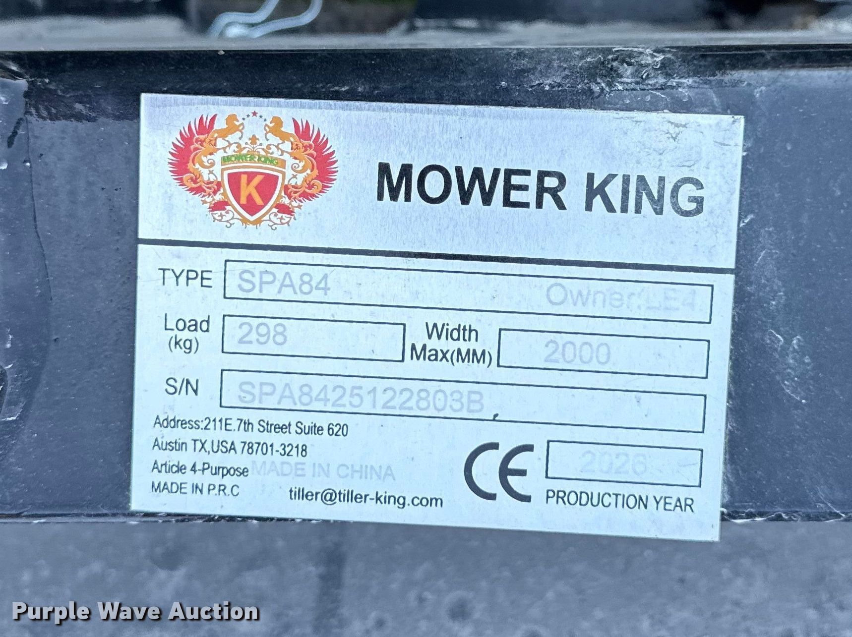 Purple Wave is selling a used Skid Steer Attach. in Kansas. This item is a Mower King skid steer dozer blade with the following: Width: 84", Unused