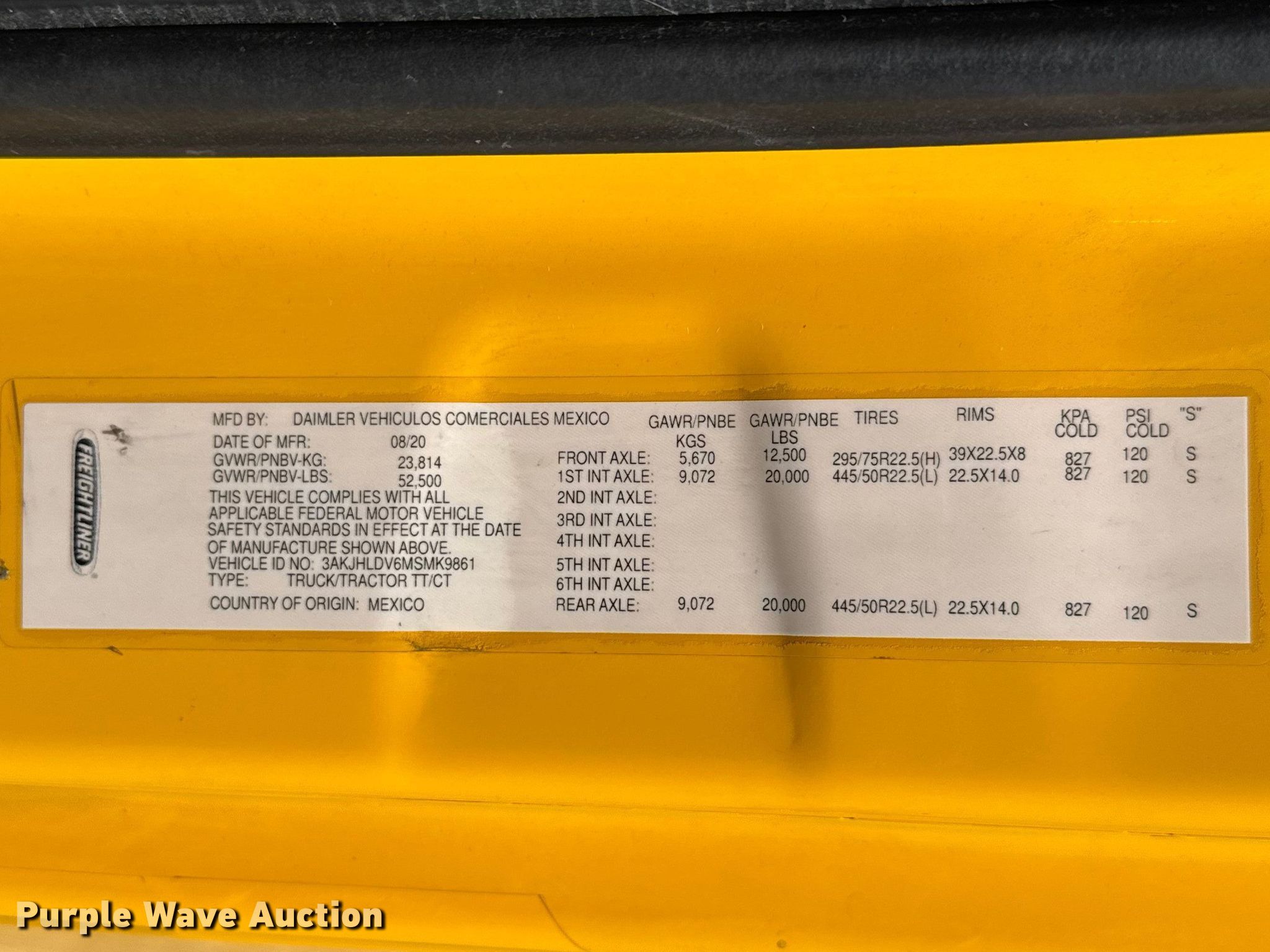 • VIN: 3AKJHLDV6MSMK9861