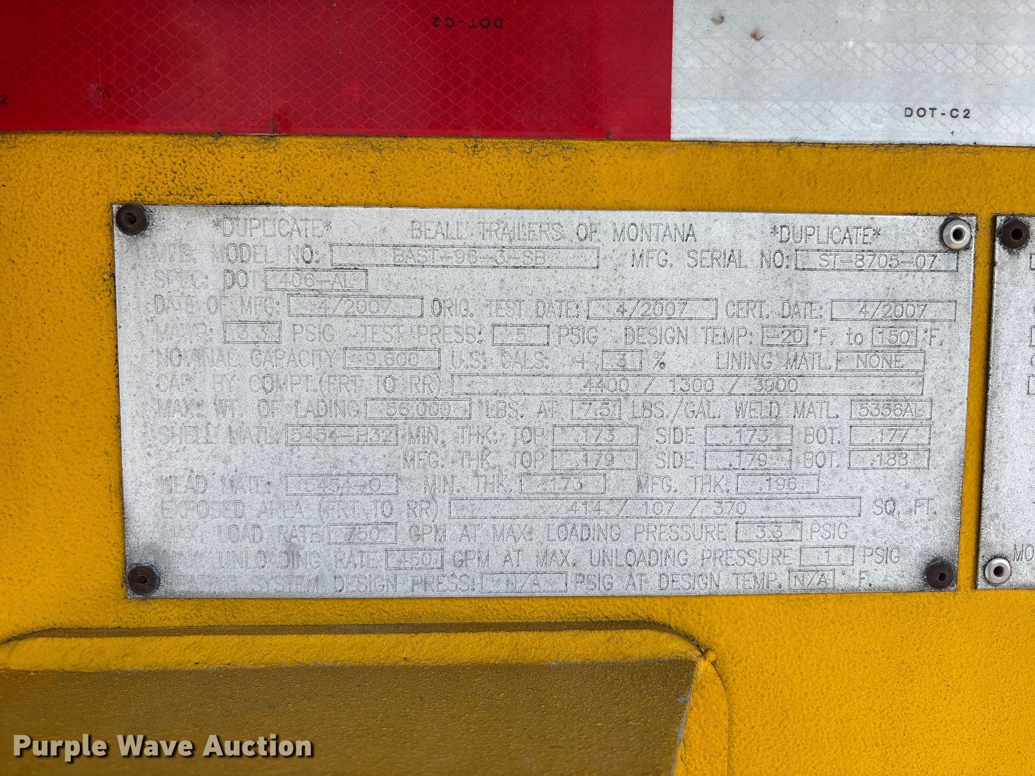 Purple Wave is selling a used Tank Trailer in Tennessee. This item is a 2007 Beall Tanker with the following: Unit #: 329