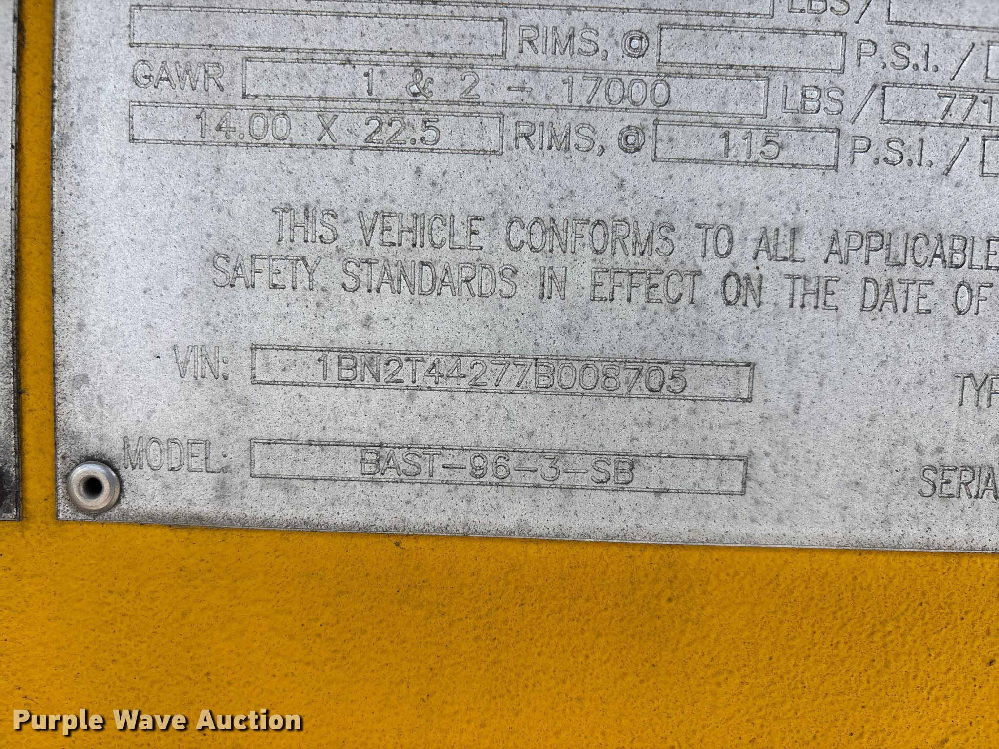 2007 Beall Tanker. Unit #: 329. Dimensions Overall Length: 43', Width: 8' 6". Features Tank type: Aluminum Capacity: 9,600 gallons, Compartments: 3, Outlet valves: 3 Size: 5", Relief valve size: 5", No. of manways/manholes: 3 Width: 18", Full length walkway. Chassis Landing gear: Dual, Suspension: Air, Brakes: Air, Axles: Tandem, GVWR: 64,000 lbs, GAWR: 17,000 lbs. Tires Aluminum wheels, Size: 445/50R22.5. Oklahoma title. Title distribution may be delayed up to 30 days from verification of funds. Gemini Motor Transport. 615 Railroad Avenue. Lebanon, TN 37087