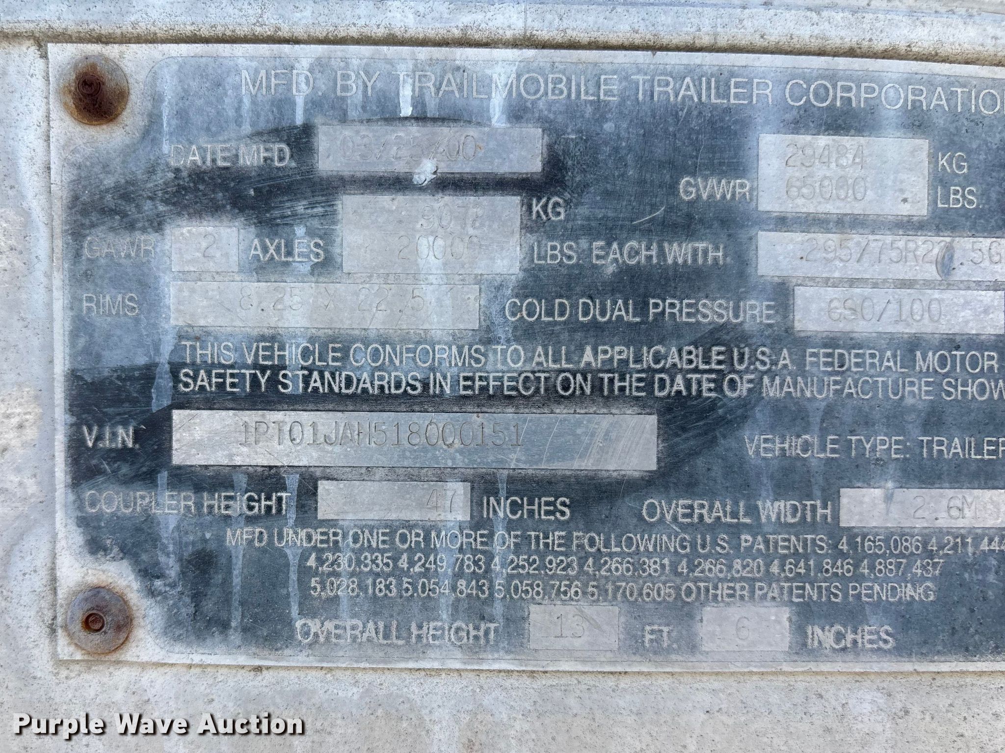 Purple Wave is selling a used Dry Van Trailer in Missouri. This item is a 2001 Trailmobile dry van trailer with the following: VIN: 1PT01JAH518000151