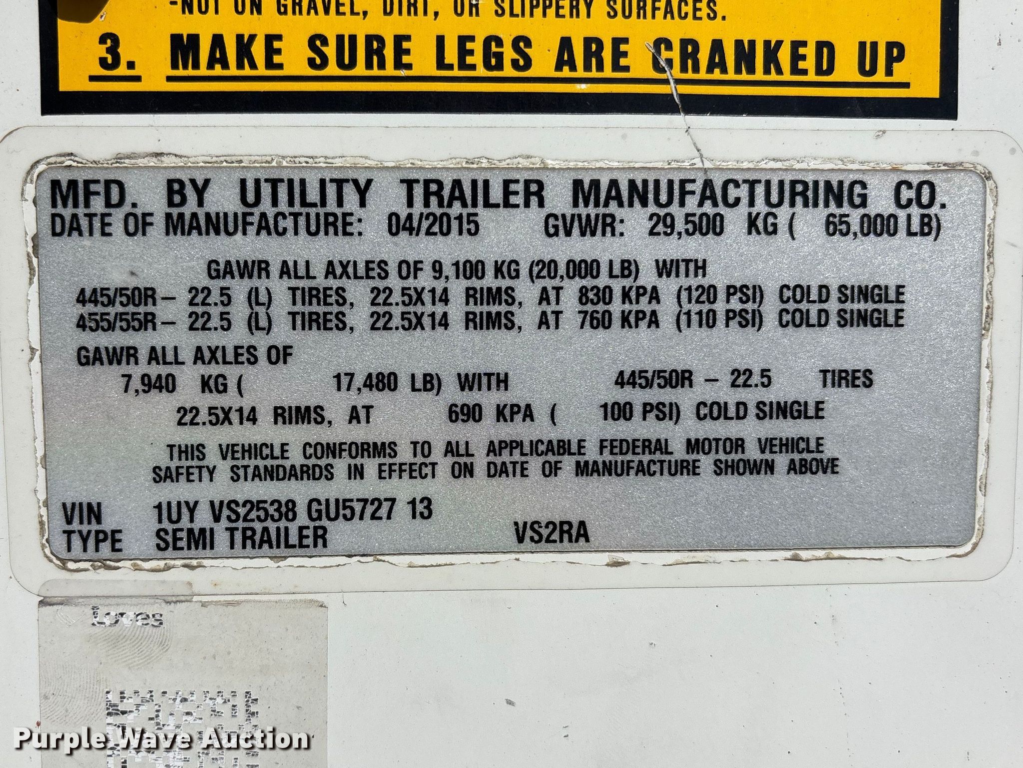 2016 Utility VS2RA refrigerated van trailer | Thursday April 16 Truck and Trailer Auction