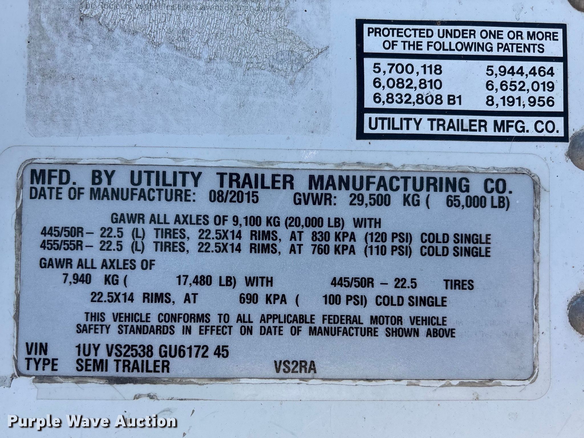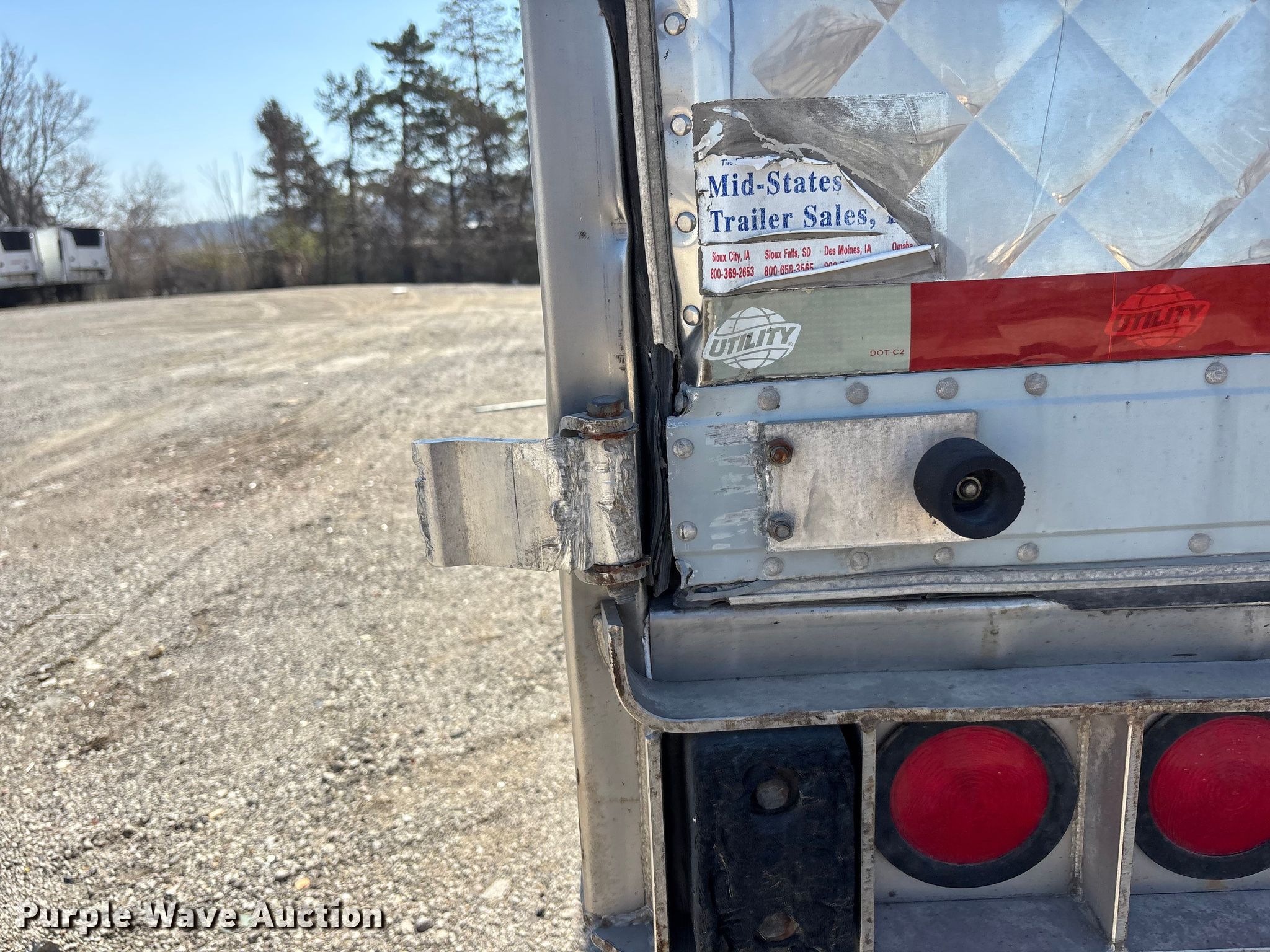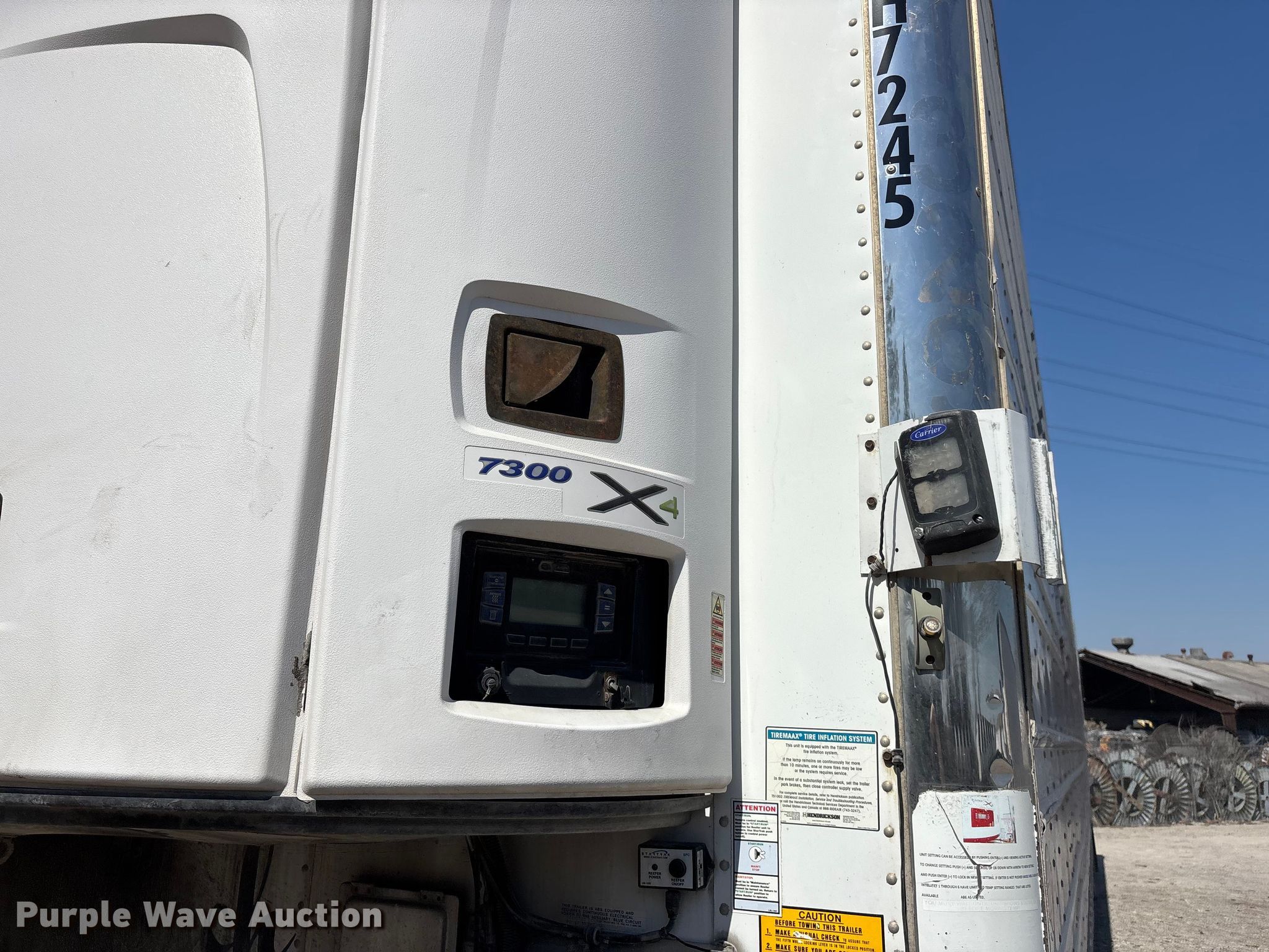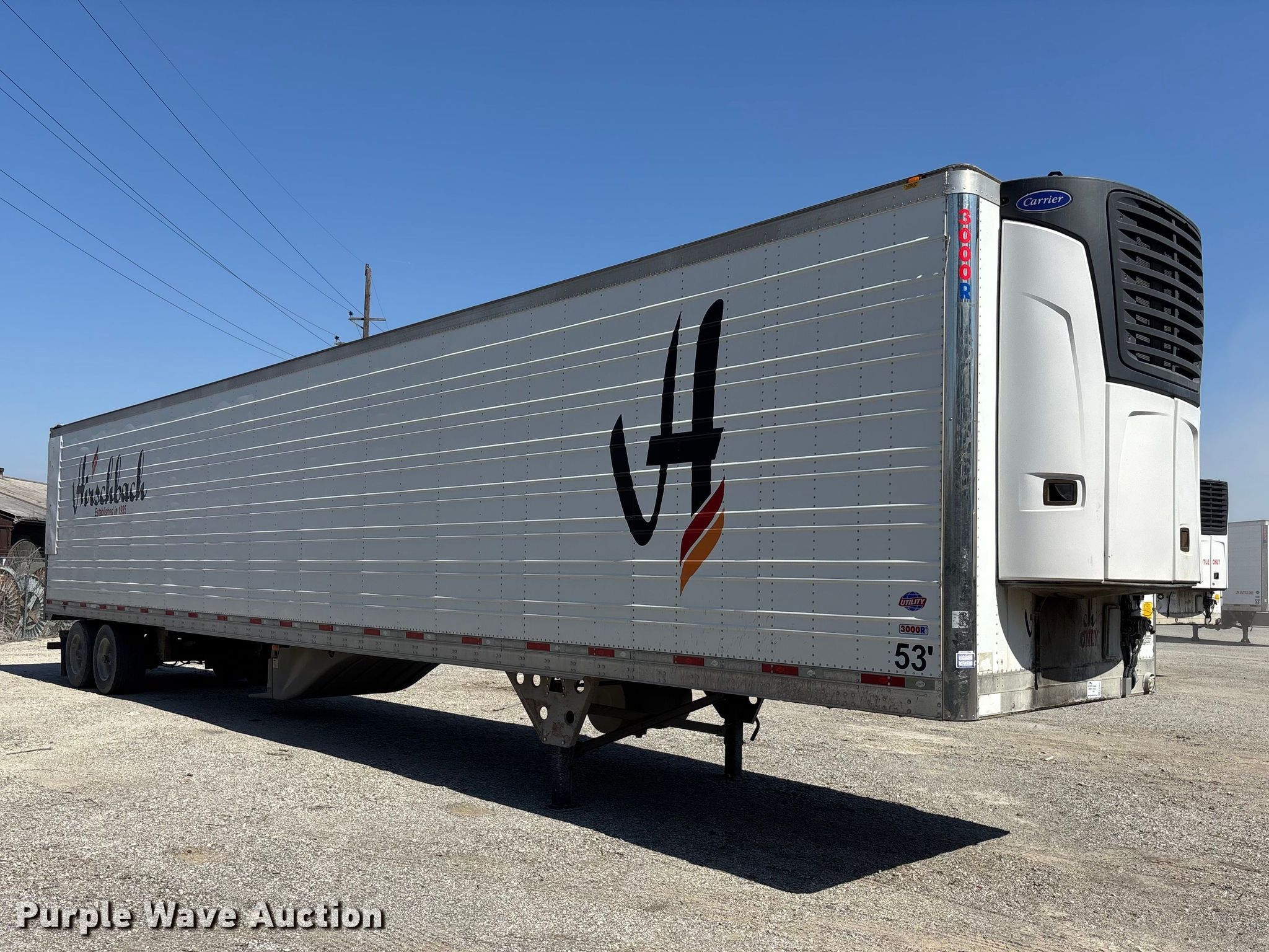 2016 Utility VS2RA refrigerated van trailer. VIN: 1UYVS2538GU617245. Dimensions Overall Length: 54', Width: 102", Body Length: 53', Width: 102". Features Deck type: Aluminum, Refrigeration unit Carrier 7300 X4, Hours: 16,190 on meter, Fuel type: Diesel. Chassis Landing gear: Dual, Suspension: Air, Brakes: Air, Axles: Tandem Sliding, GVWR: 65,000 lbs, GAWR: 20,000 lbs. Tires Aluminum wheels, Size: 445/50R22.5. Notes Rear driver side door hinge damaged. Georgia title. Title distribution may be delayed up to 30 days from verification of funds. Lazer Logistics. 3414 Gardner Avenue. Kansas City, MO 64120