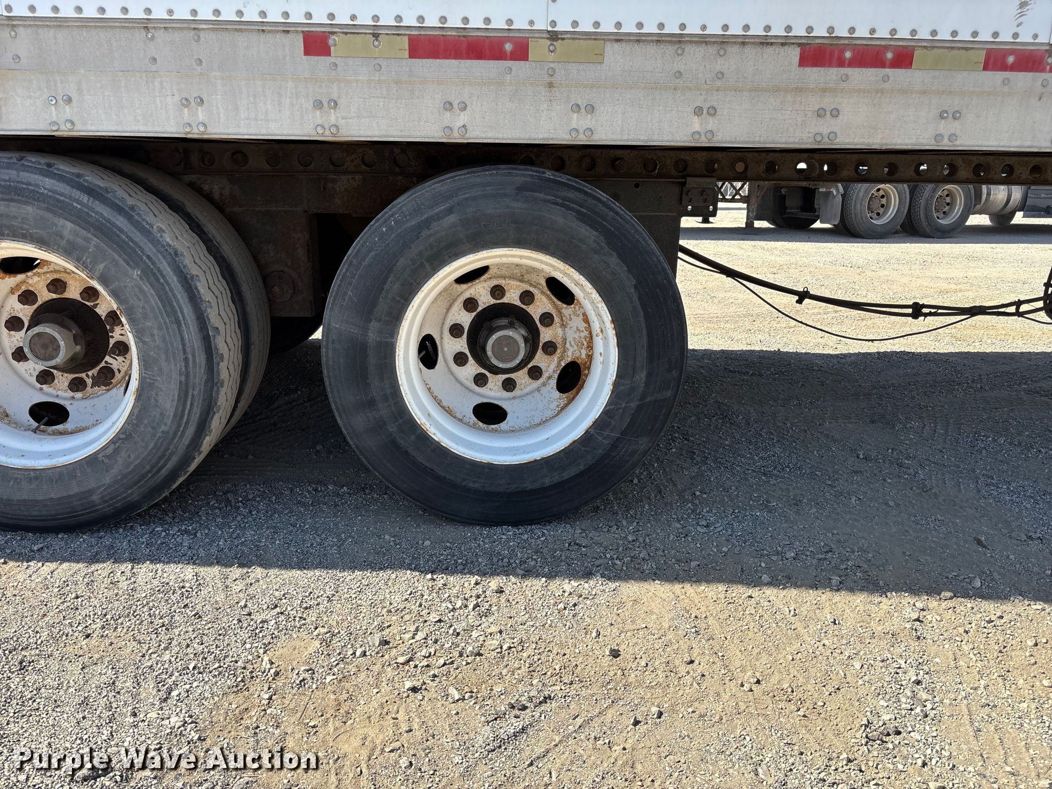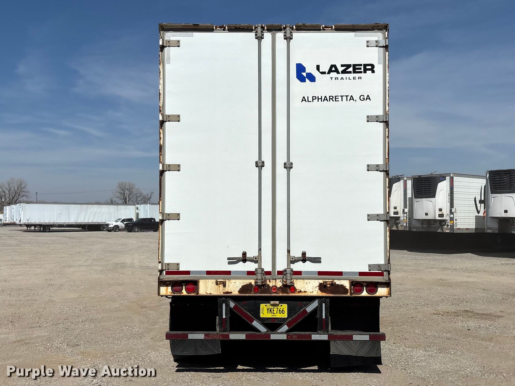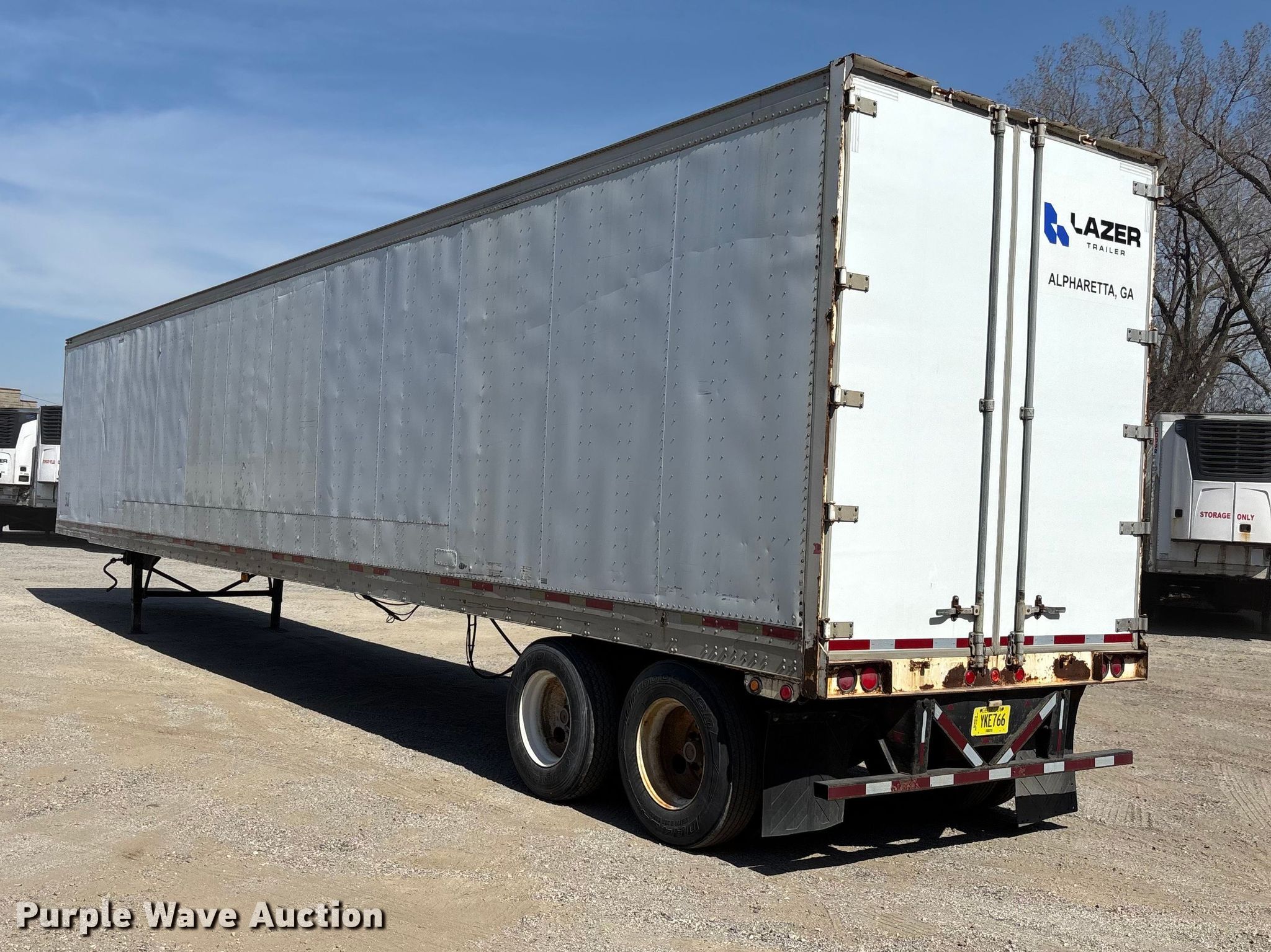 1999 Trailmobile dry van trailer. VIN: 1PT01JAH2X6001570. Dimensions Overall Length: 53', Width: 102". Features Deck type: Wood, E-track rail system. Chassis Landing gear: Dual, Suspension: Air, Brakes: Air, Axles: Tandem Sliding, GVWR: 65,000 lbs, GAWR: 20,000 lbs. Tires Steel wheels, Size: 275/80R22.5. Georgia title. Title distribution may be delayed up to 30 days from verification of funds. Lazer Logistics. 3414 Gardner Avenue. Kansas City, MO 64120