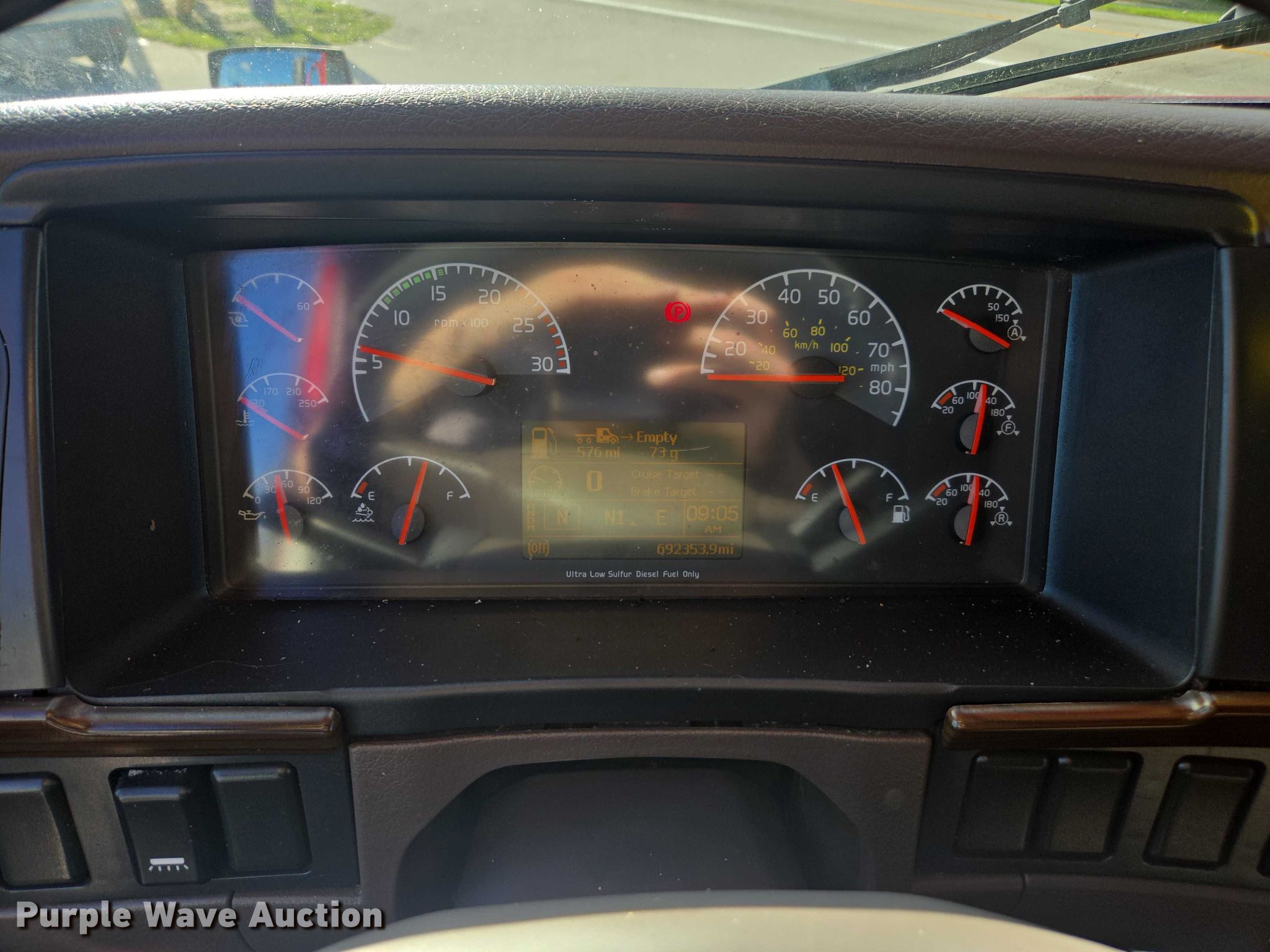 2017 Volvo VNL semi truck. Miles: 692,354 on odometer, VIN: 4V4NC9EHXHN976144. Engine Volvo D13, Displacement: 12.8L, Cylinders: 6, Fuel type: Diesel, HP: 425. Transmission Automated manual. Chassis Axles: Tandem, Differential lock: Inter-axle, Suspension: Air Dump valves, Brakes: Air, GVWR: 51,200 lbs. Interior AC, Heat, Heated mirrors, Power windows, Cruise control, Air ride cab, Sleeper Sleeper length: 54", Beds: Double bunk, Rear climate control. Features Deck plate: Steel, Fifth wheel type: Air operated, Sliding, Fuel tank: Dual. Tires Front: 275/80R22.5, Rear: 295/75R22.5. Notes Windshield chipped or cracked. View repairs. Florida title. Title distribution may be delayed up to 14 days from verification of funds. Sebring, FL 33870