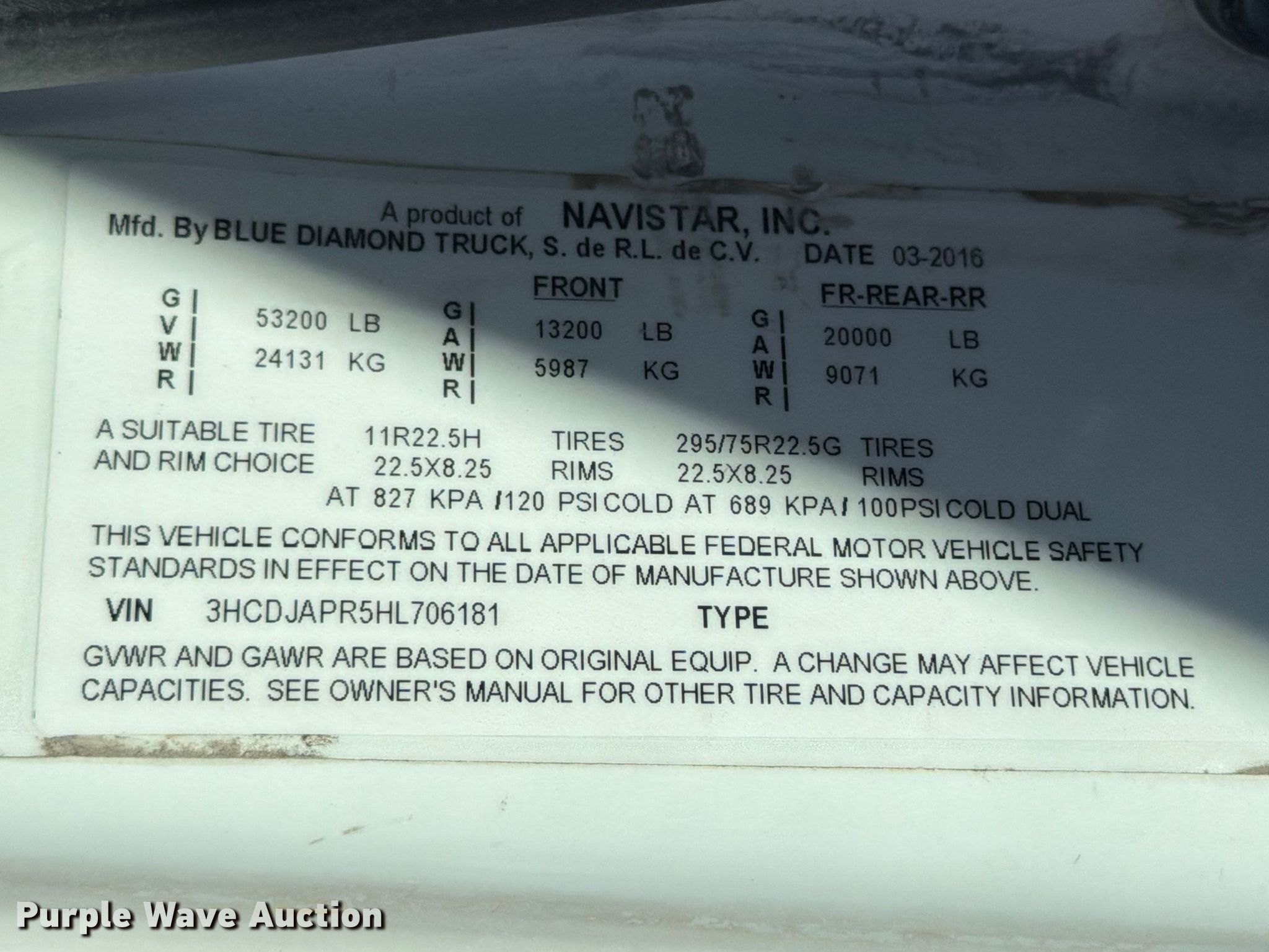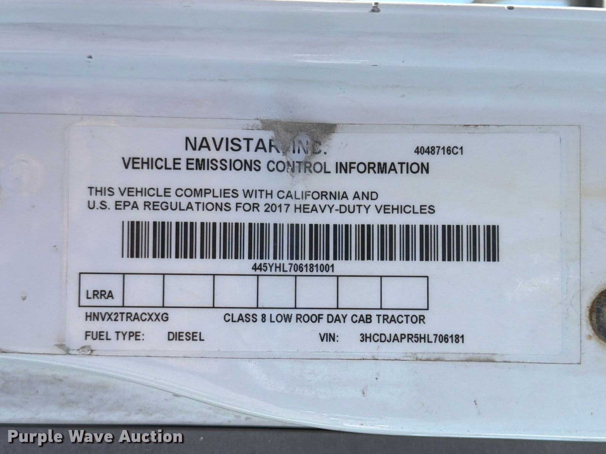 - VIN: 3HCDJAPR5HL706181