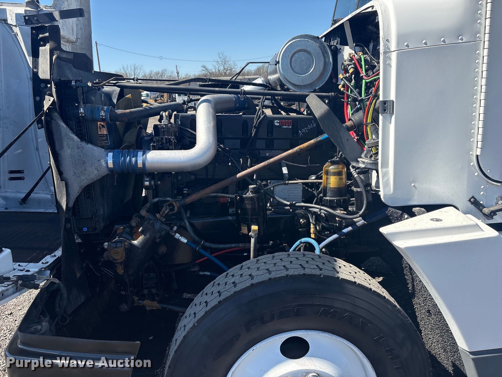 1999 Freightliner FLD semi truck. Miles: 85,584 on odometer, VIN: 1FUWDMCA4XPA92446. Engine Cummins, Displacement: 10.8L, Cylinders: 6, Fuel type: Diesel. Transmission Meritor, Manual, Speed: 10. Chassis Axles: Single, Single axle differential lock, Suspension: Air, Brakes: Air, GVWR: 32,000 lbs FAWR: 12,000 lbs, RAWR: 20,000 lbs. Interior AC, Heat, Heated mirrors, Power windows, Cruise control, Air ride cab. Features Deck plate: Aluminum, Fifth wheel type: Fixed, Fuel tank: Dual. Tires Front: 295/75R22.5, Rear: 295/80R22.5. Notes Windshield chipped or cracked. Oklahoma title. Seller is an Oklahoma licensed motor vehicle dealer. Buyers may be required to provide identification to the licensed dealer to comply with state laws. Title will be assigned and distributed by the dealer. Please contact the seller for distribution questions. Title distribution may be delayed up to 30 days from verification of funds. Collinsville, OK 74021