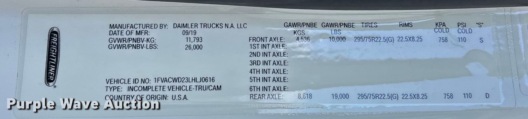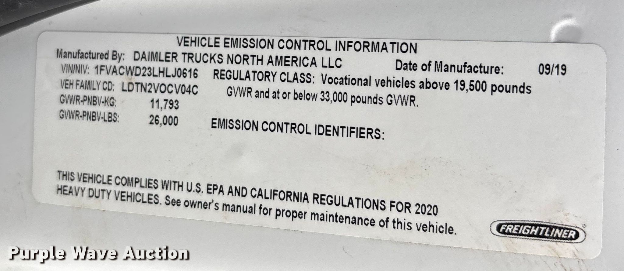 - VIN: 1FVACWD23LHLJ0616