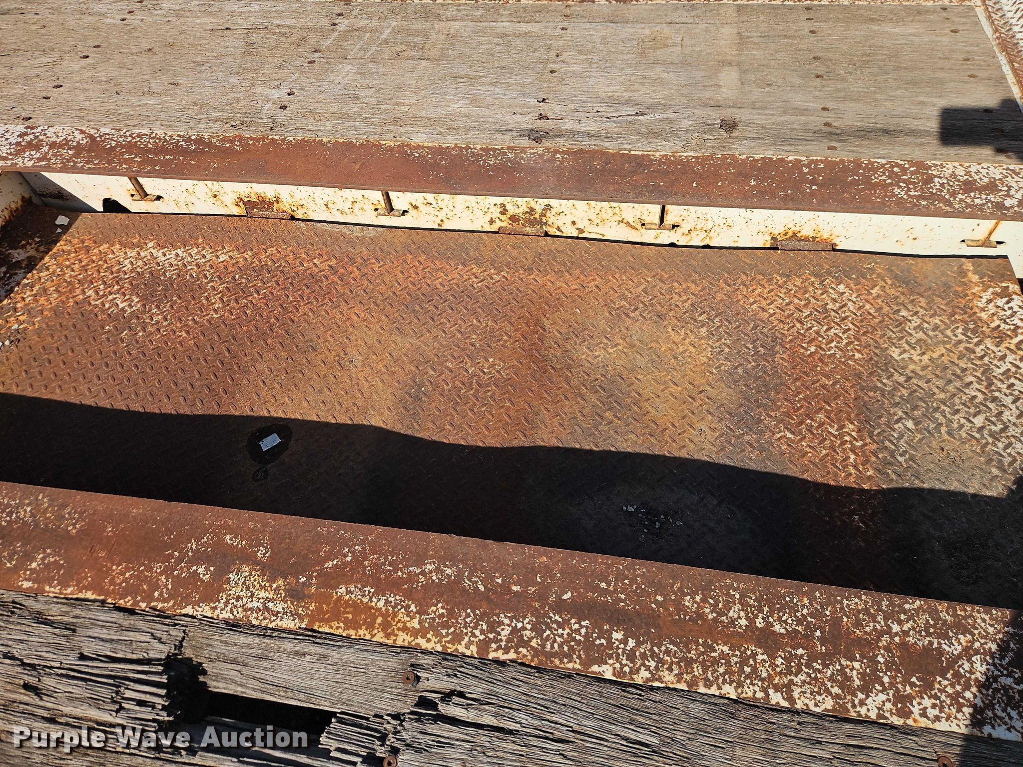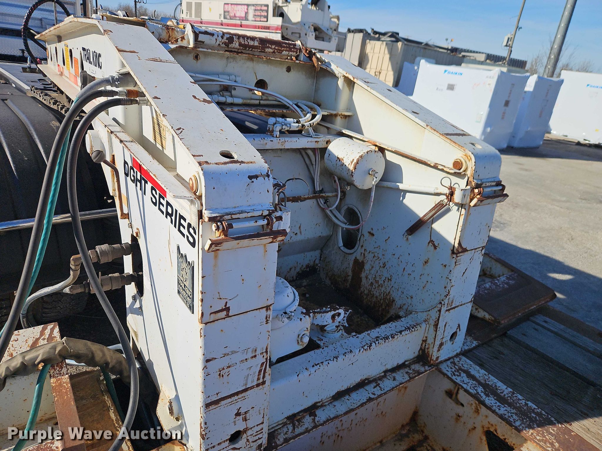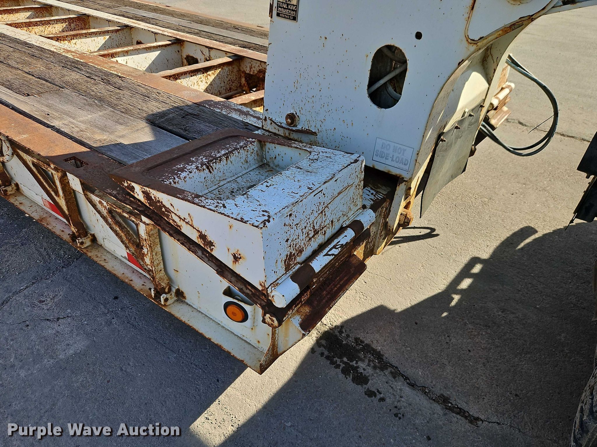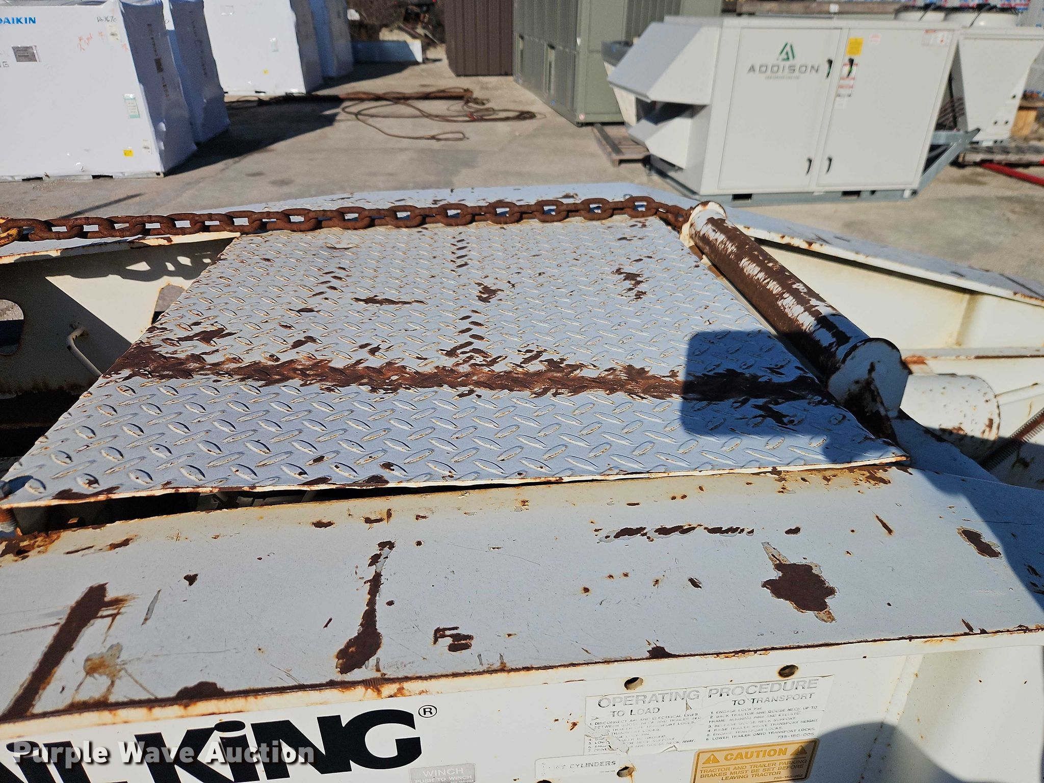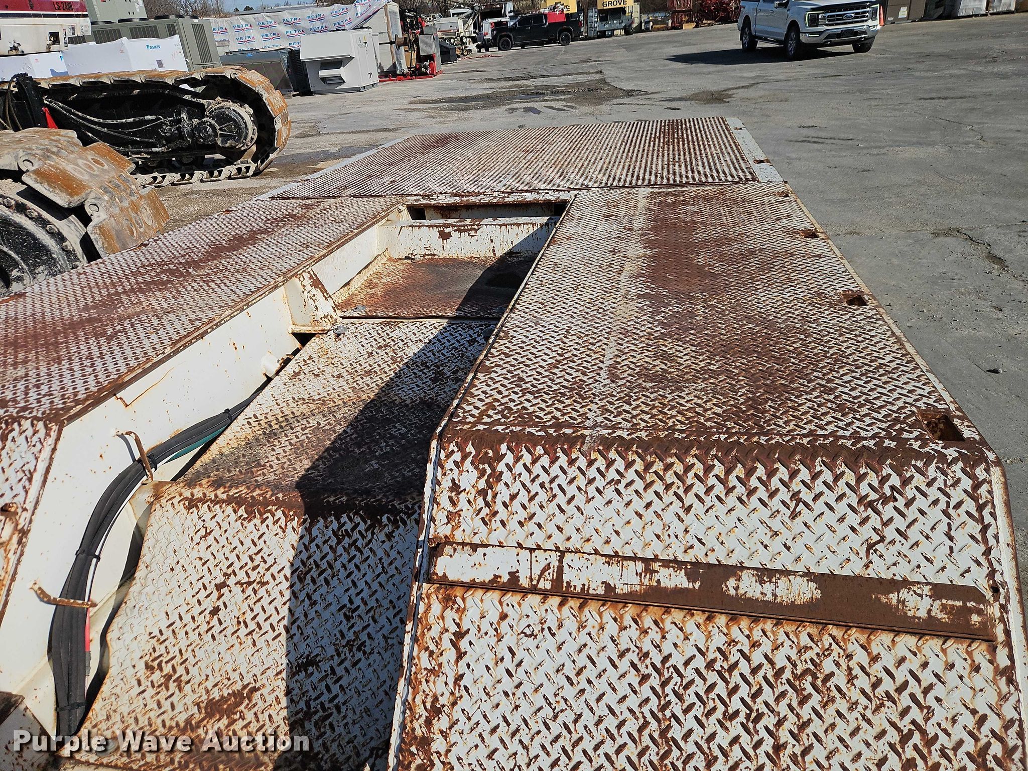 2008 Trail King Industries TK70DGHT-502 hydraulic tail lowboy equipment trailer. VIN: 1TKA0502X8B093153. Dimensions Overall Length: 50', Width: 102", Deck Length: 23', Width: 102", Rear deck length: 7', Hydraulic tail length: 8', Ramps: Hydraulic Length: 46". Features Deck type: Steel, Wood, Outriggers: Swing-out Board size: 12", Neck type: Detachable, Winch WARN, Hydraulic controls: Manual. Chassis Suspension: Air, Brakes: Air, Axles: Tandem, GVWR: 89,560 lbs, GAWR: 20,280 lbs. Tires Steel wheels, Size: 255/70R22.5. Notes Truck not included. Missouri title. Title distribution may be delayed up to 14 days from verification of funds. Midwest Crane. Olathe, KS 66062
