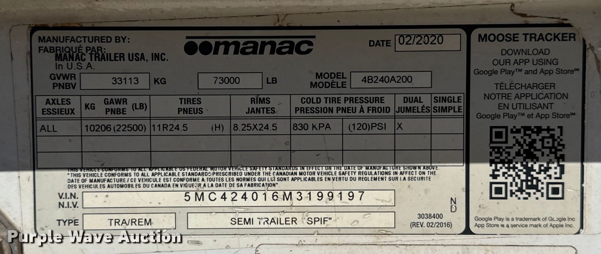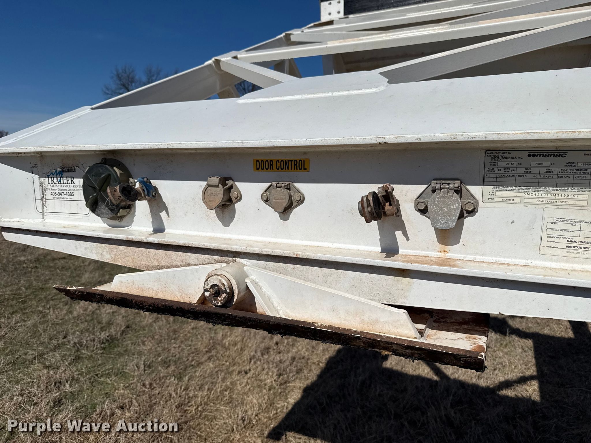 Purple Wave is selling a used Bottom Dump Trailer in Oklahoma. This item is a 2021 Manac 4B240A200 bottom dump trailer with the following: VIN: 5MC424016M3199197