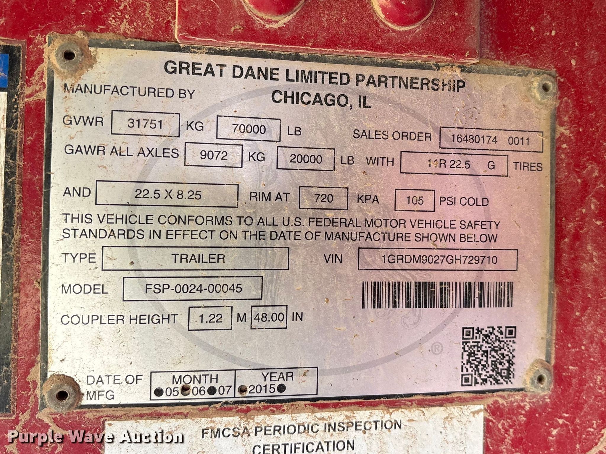 Purple Wave is selling a used Flat or Drop Deck Trailer in Oklahoma. This item is a 2016 Great Dane FSP-0024-00045 flatbed trailer with the following: VIN: 1GRDM9027GH729710, Unit #: 6061
