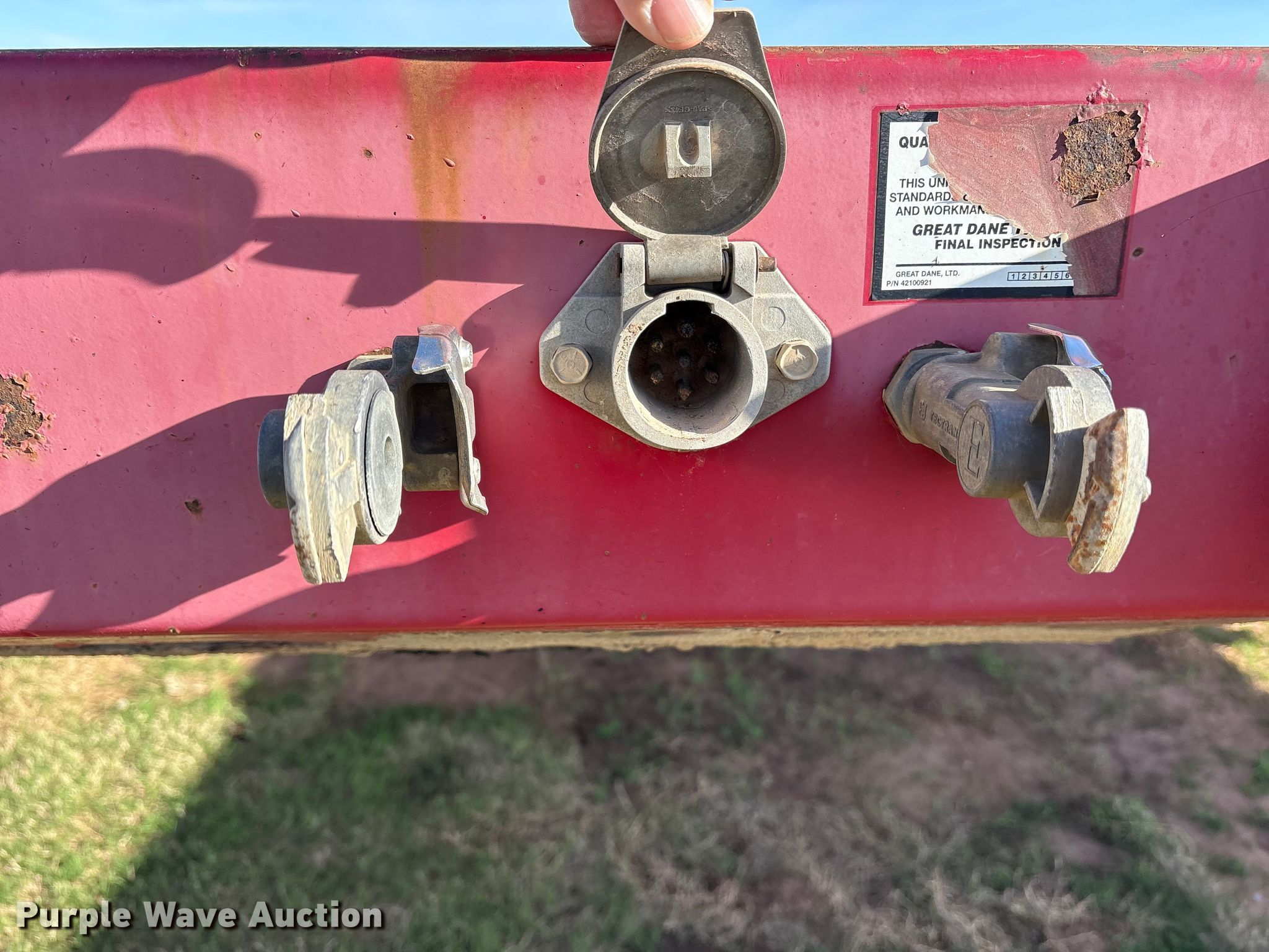 2014 Great Dane FSP-0024-00045 flatbed trailer. VIN: 1GRDM9022EH721477, Unit #: 5995. Dimensions Overall Length: 46' 3", Width: 8' 5", Deck Length: 45', Width: 8' 1", Deck height: 57". Features Deck type: Steel, Wood, Forklift carrier. Chassis Landing gear: Dual, Suspension: Air, Brakes: Air, Axles: Tandem Sliding, GVWR: 75,000 lbs, GAWR: 20,000 lbs. Tires Aluminum wheels, Size: 11R22.5. Oklahoma title. Title distribution may be delayed up to 14 days from verification of funds. JKT Farms. Bennington, OK 74723