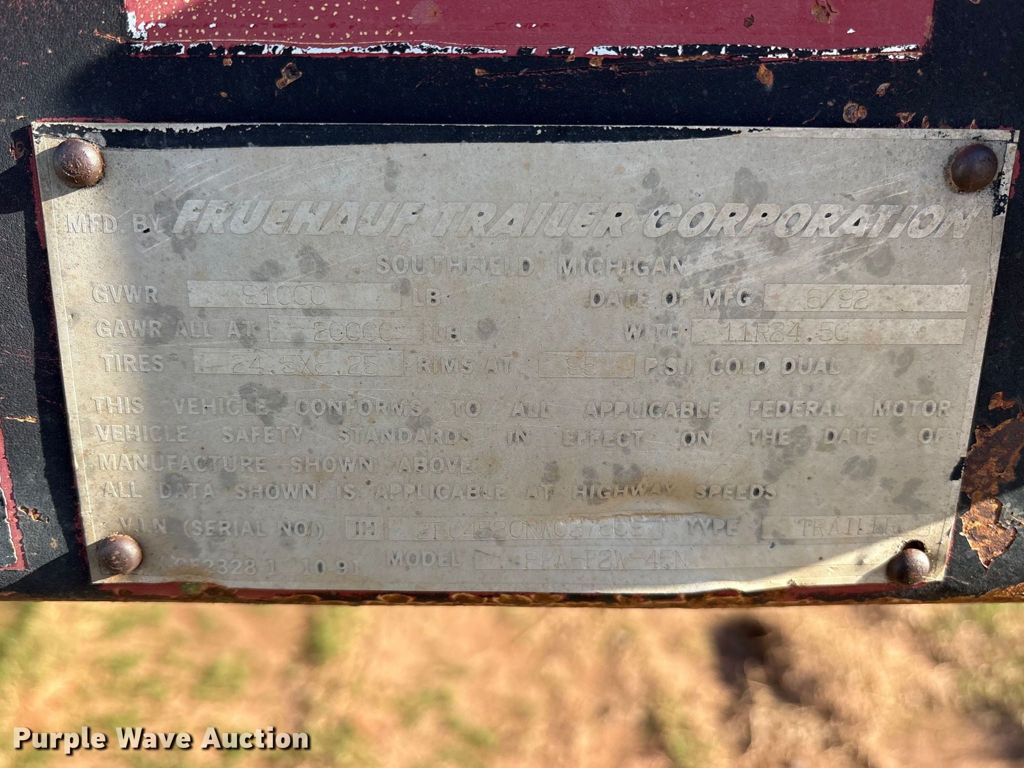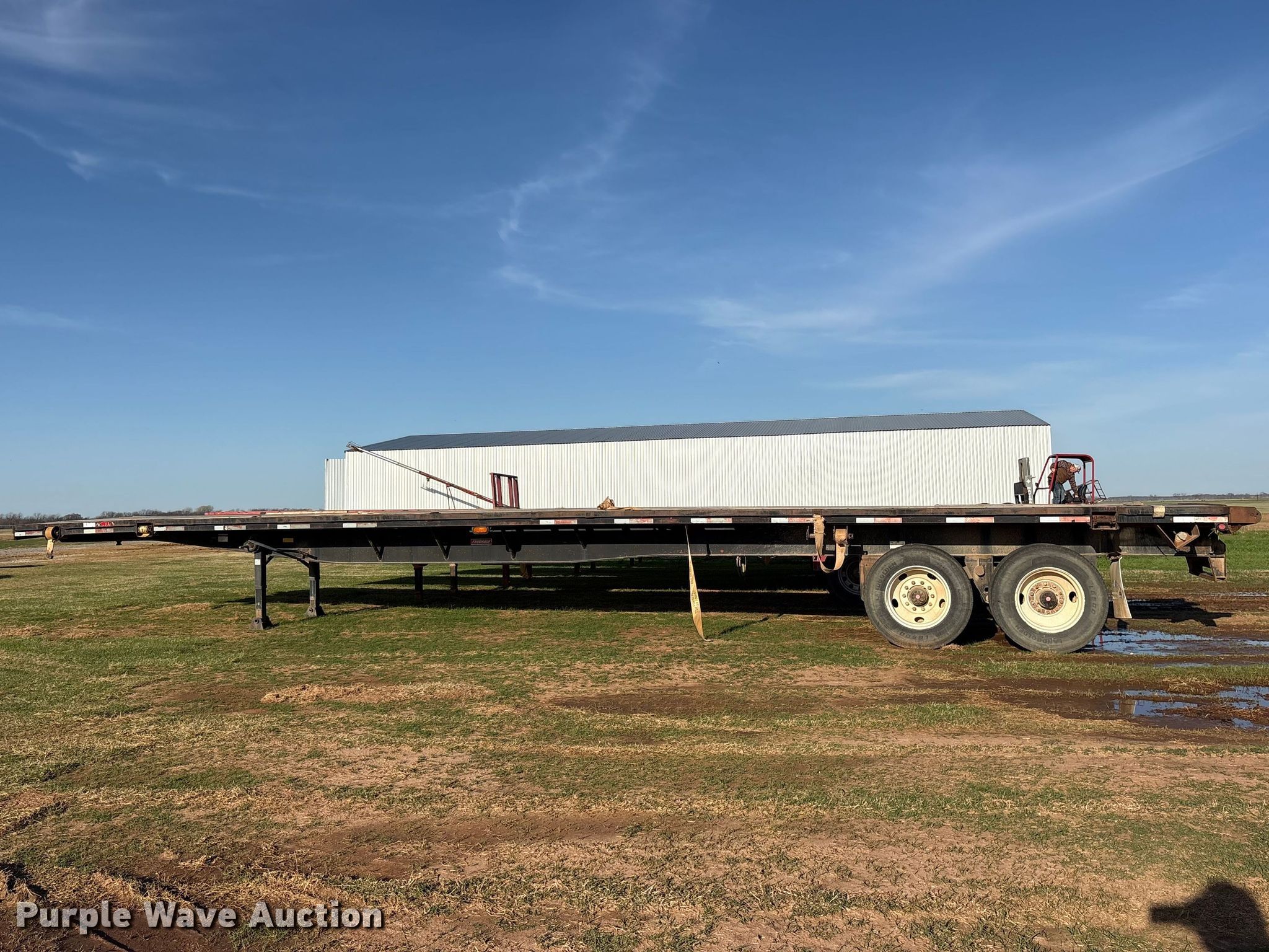 Purple Wave is selling a used Flat or Drop Deck Trailer in Oklahoma. This item is a 1992 Fruehauf PBA-12W-45N flatbed trailer with the following: VIN: 1H2P04520NW037609, Unit #: 9