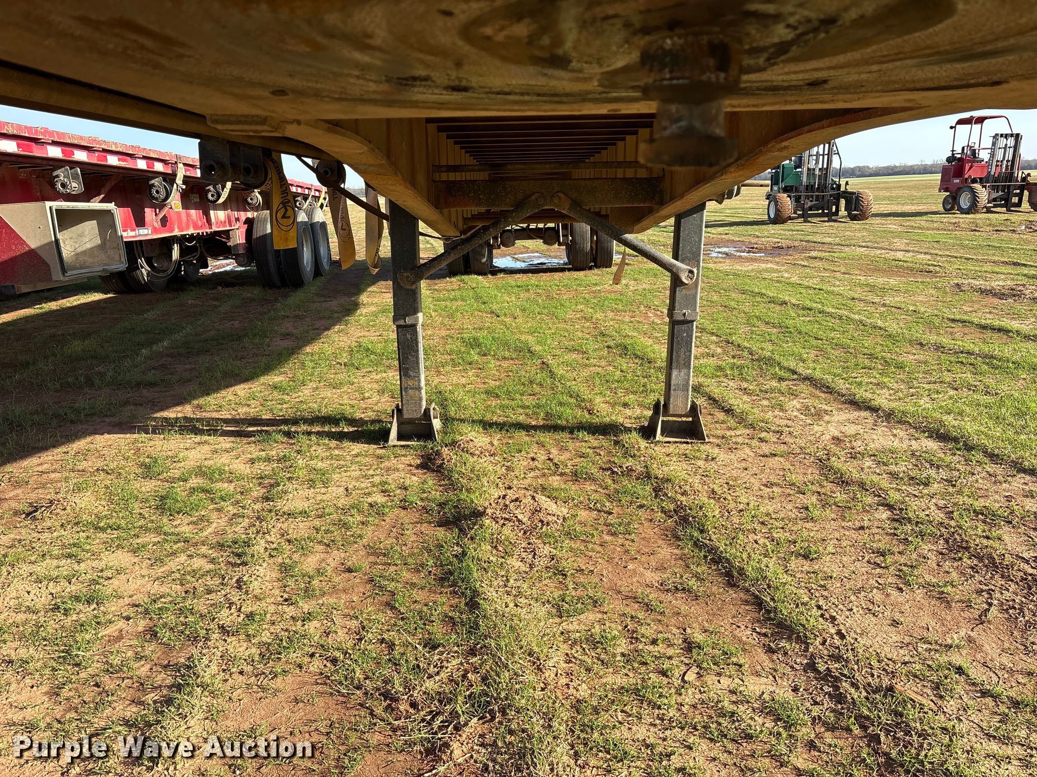 1992 Fruehauf PBA-12W-45N flatbed trailer. VIN: 1H2P04520NW037609, Unit #: 9. Dimensions Overall Length: 49', Width: 8' 4", Deck Length: 47' 8", Width: 8', Deck height: 58". Features Deck type: Aluminum, Steel, Wood, Forklift carrier. Chassis Landing gear: Dual, Suspension: Spring, Brakes: Air, Axles: Tandem, GVWR: 91,000 lbs, GAWR: 20,000 lbs. Tires Steel wheels, Size: 11R24.5. Oklahoma title. Title distribution may be delayed up to 14 days from verification of funds. JKT Farms. Bennington, OK 74723